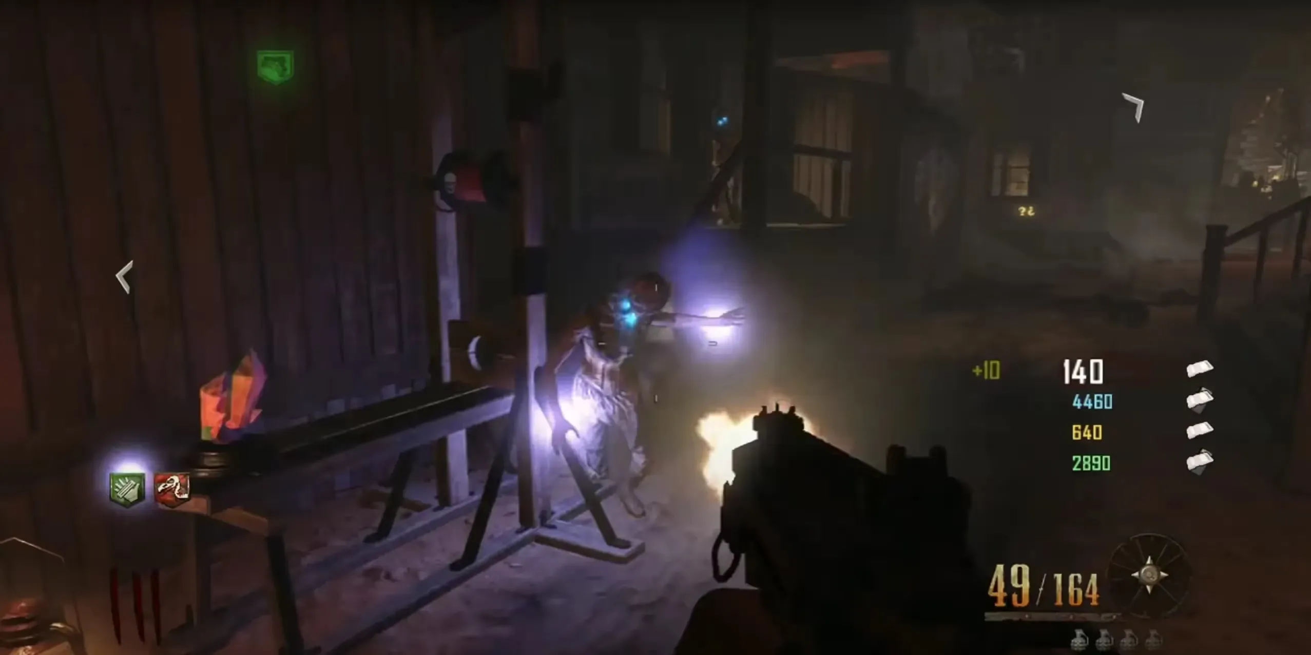 If Consumption Cross is one of your 3 signs always melee that sign last as this produces the most optimal path for the wisp only requiring to have a minimum of 2 zombies in the upper part of the Barn and a minimum of 3 zombies in front of the Saloon. Otherwise, you can force this path by meleeing Consumption Cross first and then meleeing your correct 3 signs and then meleeing Consumption Cross again to spawn the wisp.
