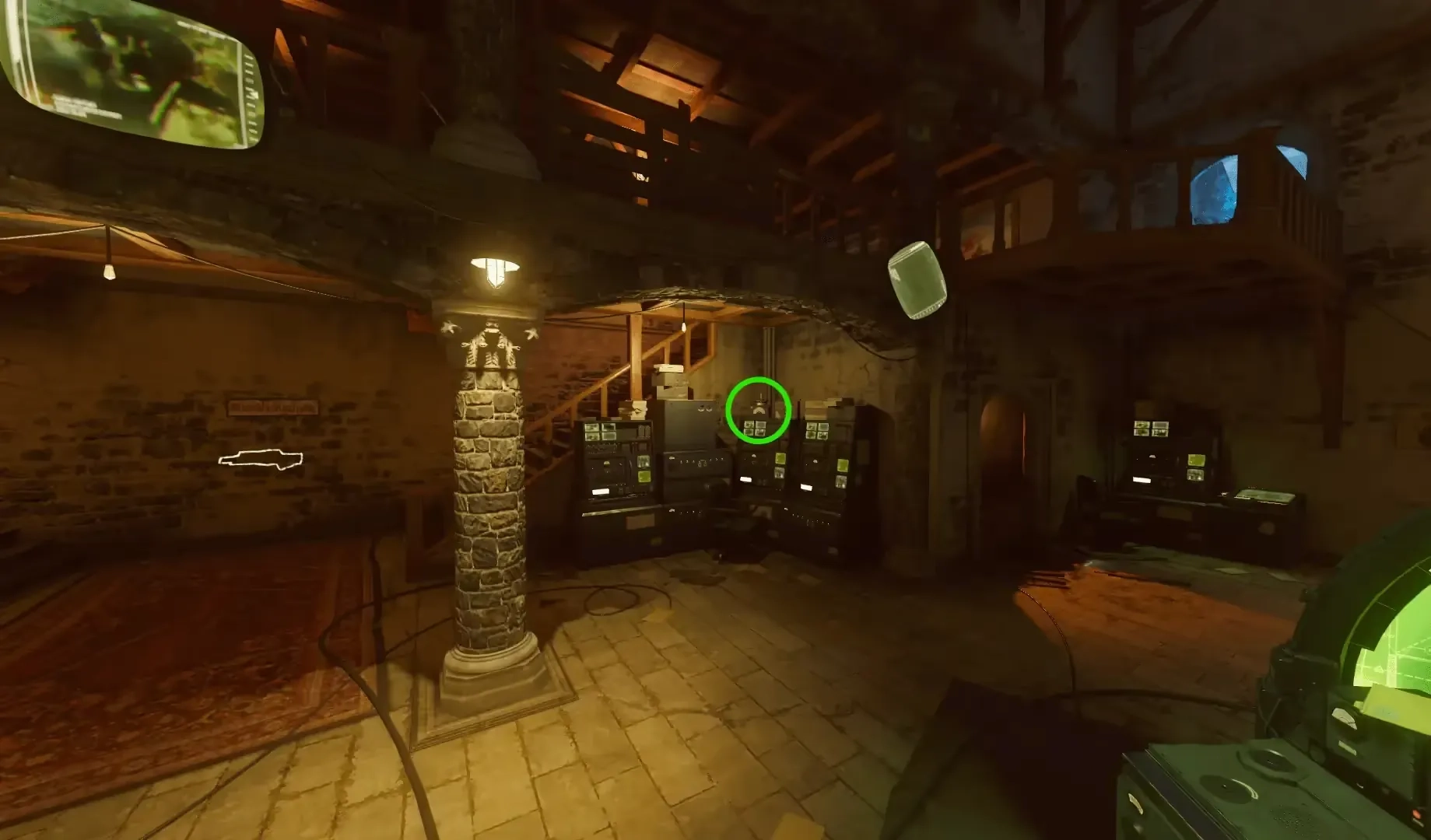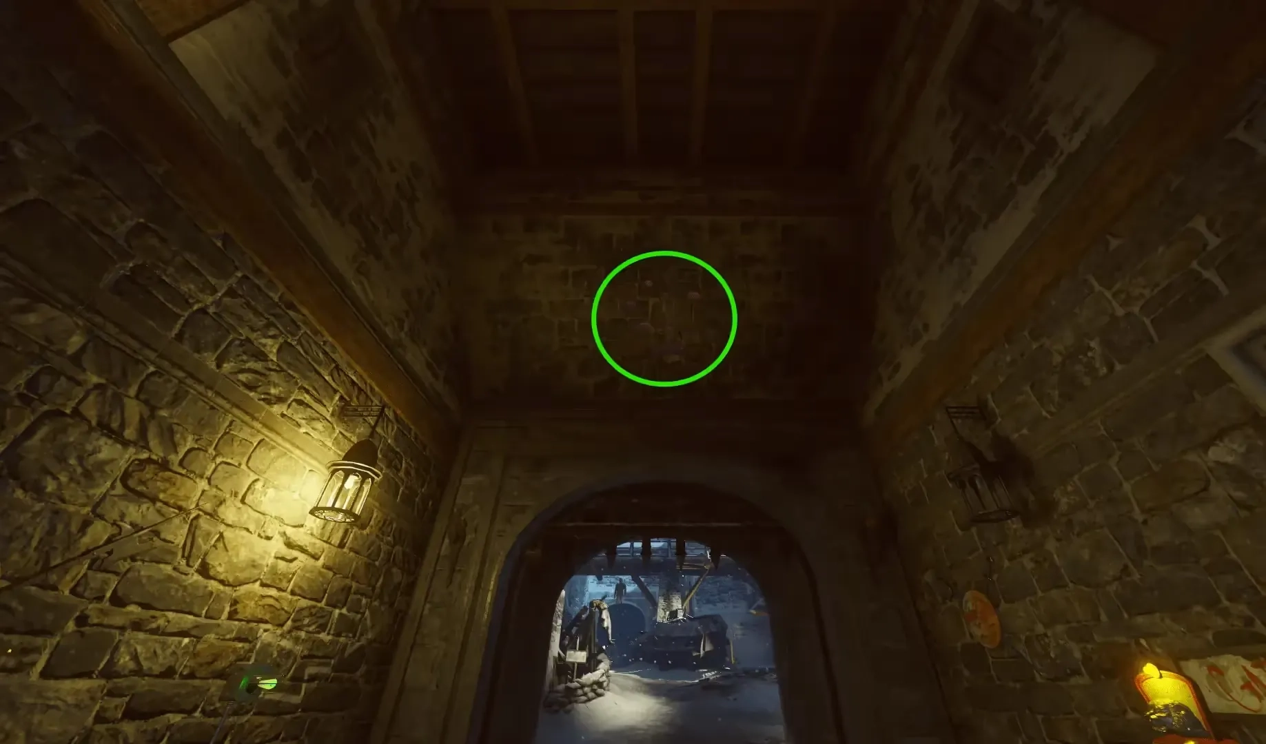 - The circle at the top of the castle links to the fireplace in the Mission Control room/Church