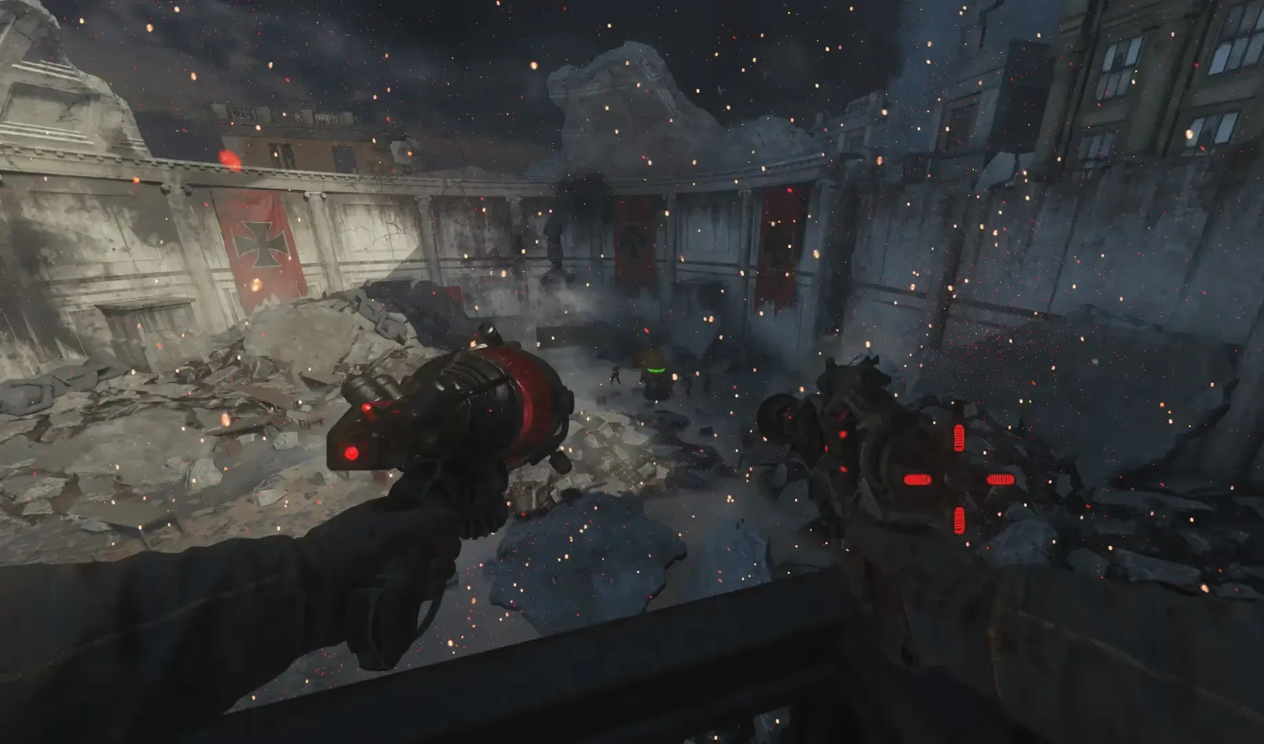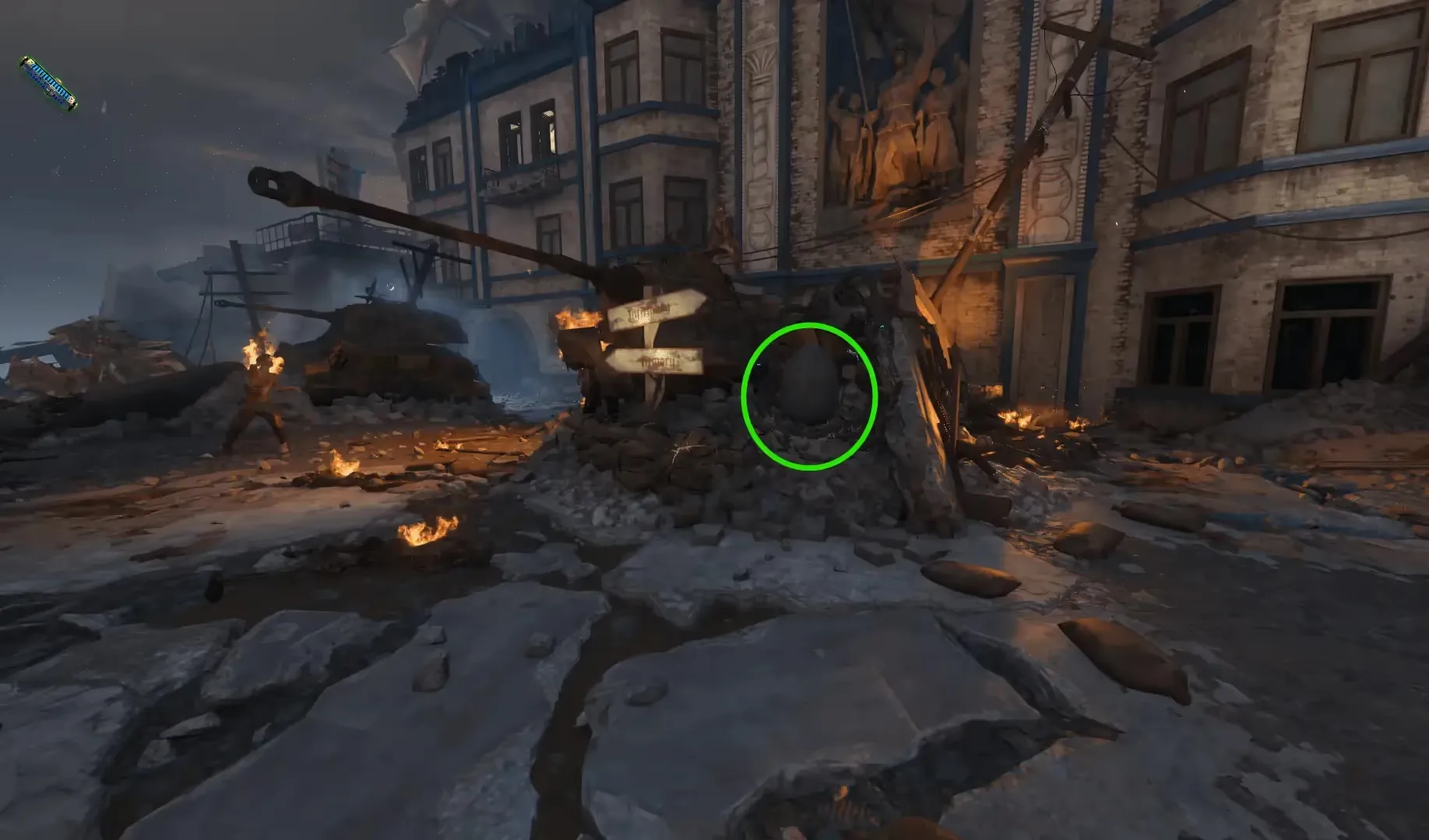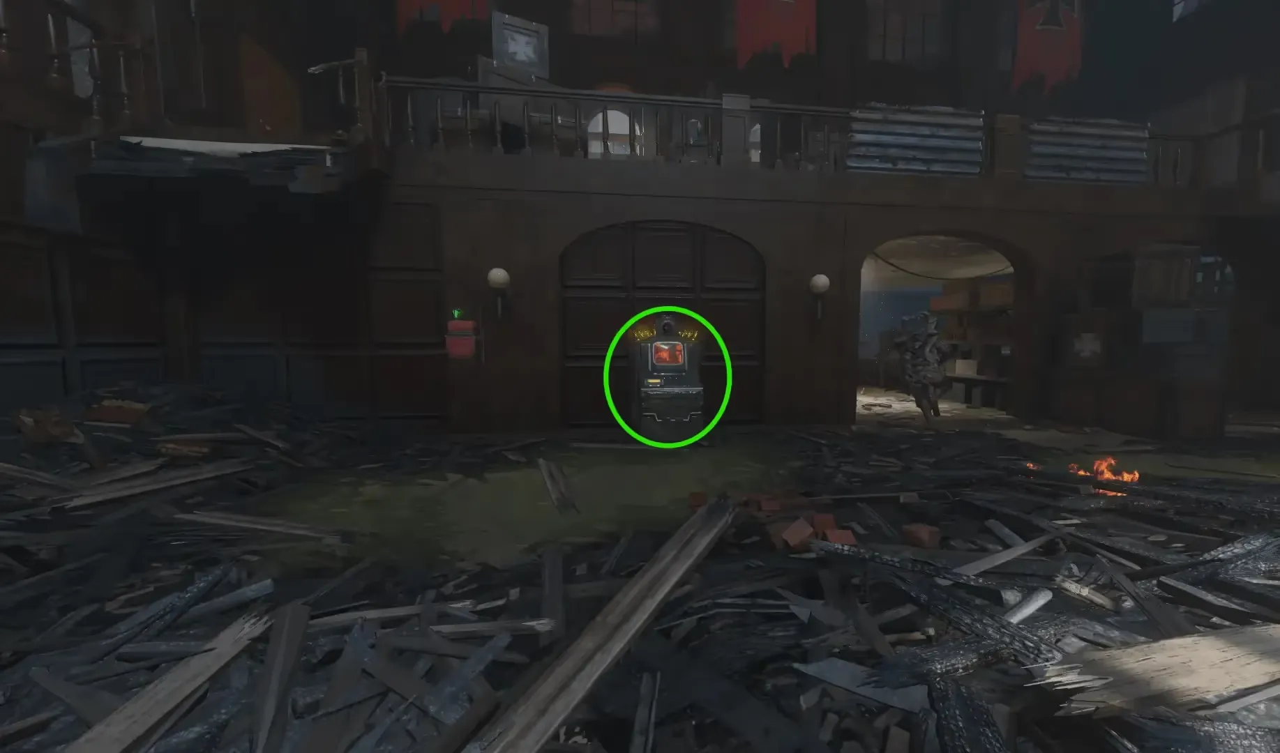 Once in the arena, head to the circular area surrounded by pillars. You must press the button in this area to have a Giant fire a laser at a pile of debris, freeing Ultimis Nikolai.