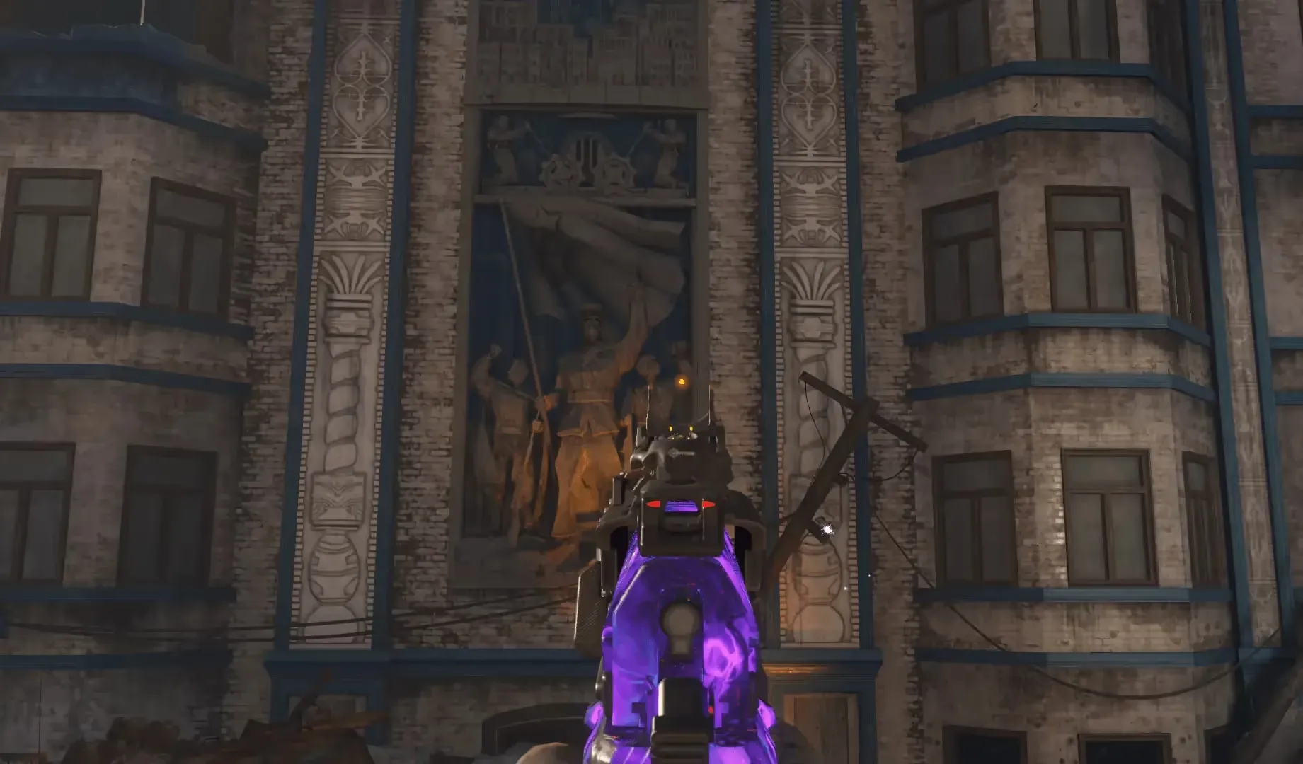 Head to the Dragon Command stairs, and when at the bottom of the stairs, turn around so you are facing away from Dragon Command. On the wall of the building are some statues, the right statue has its left hand raised, and you must shoot this hand to drop the trophy, which you can pick up just below the statue.
