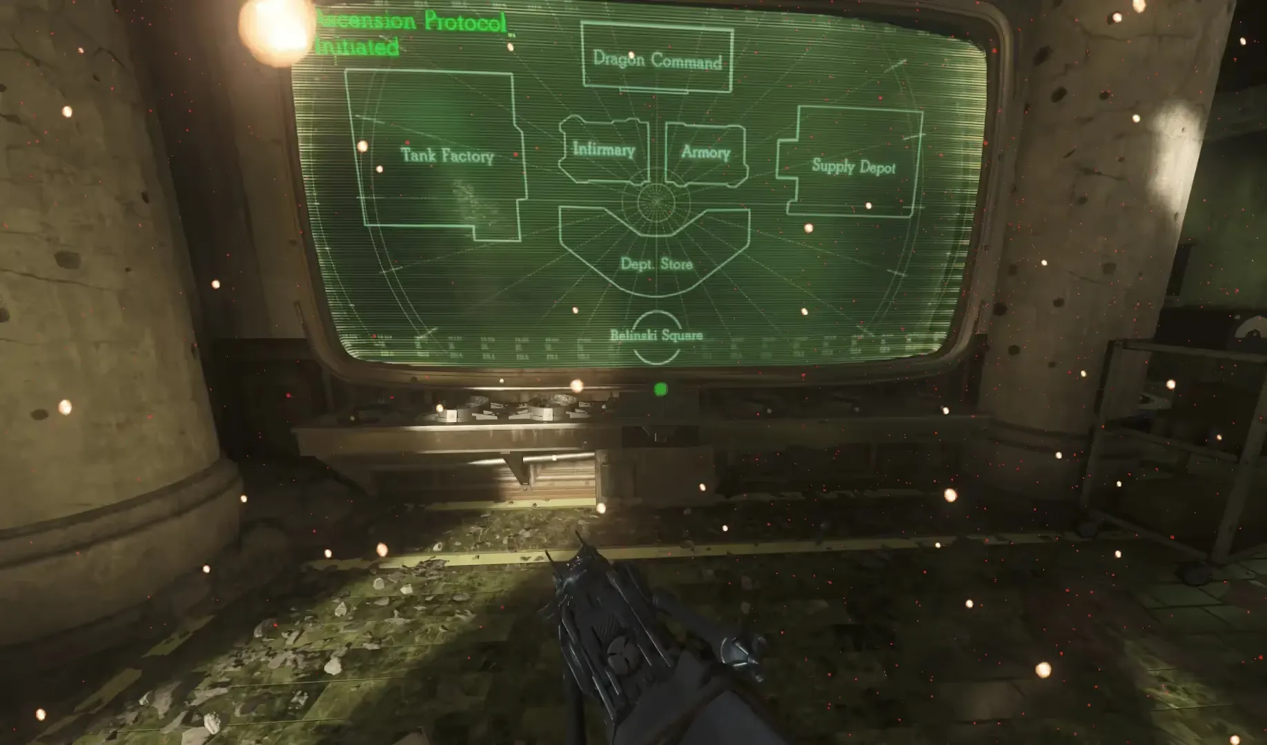 After pushing the button underneath the main monitor, a drawer under the button will open, revealing a keycard that you must pick up and bring to the Hatchery and insert into the terminal on the same floor as the Pack-a-Punch, which will begin a lockdown event similar to obtaining the Dragon Strike.