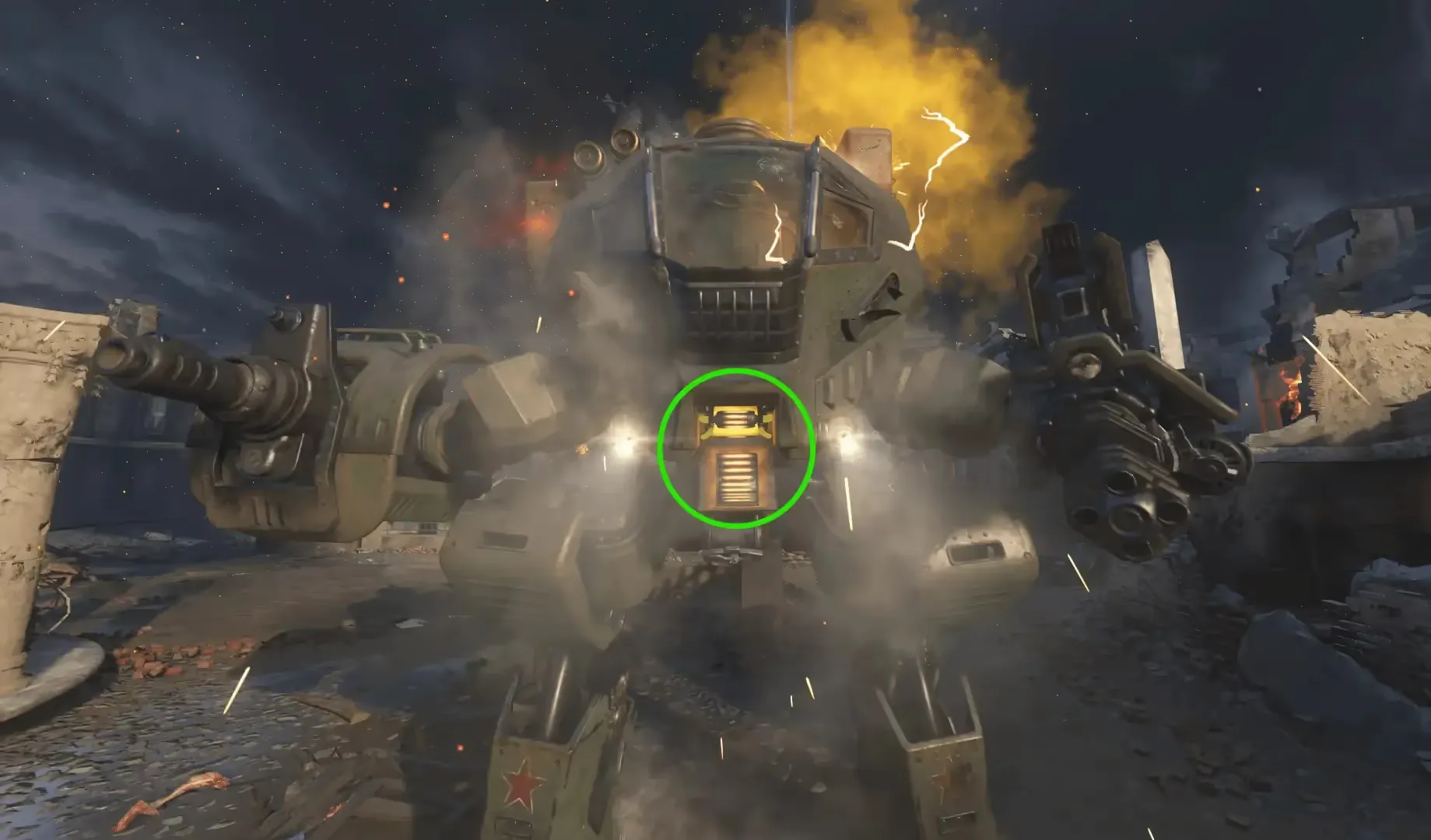After destroying all four weak points, you must shoot a final weak point visible in the center of the mech, which will destroy the mech, defeating Nikolai Mech and triggering the final ending cutscene.
