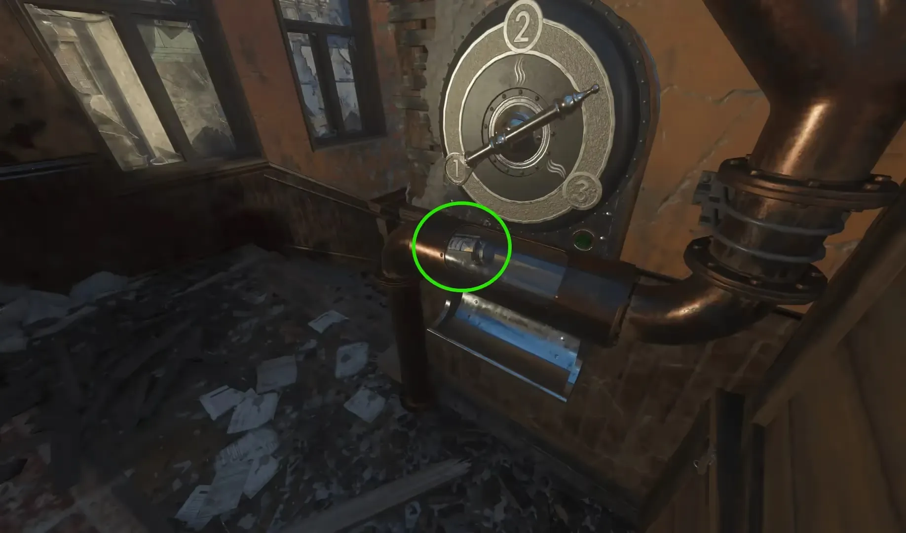 There are six valves located around the map. You must find two valves: one with a green light and one emitting a whistling-like sound, containing a pink code cylinder trapped within it. These Valves are located in the following locations: