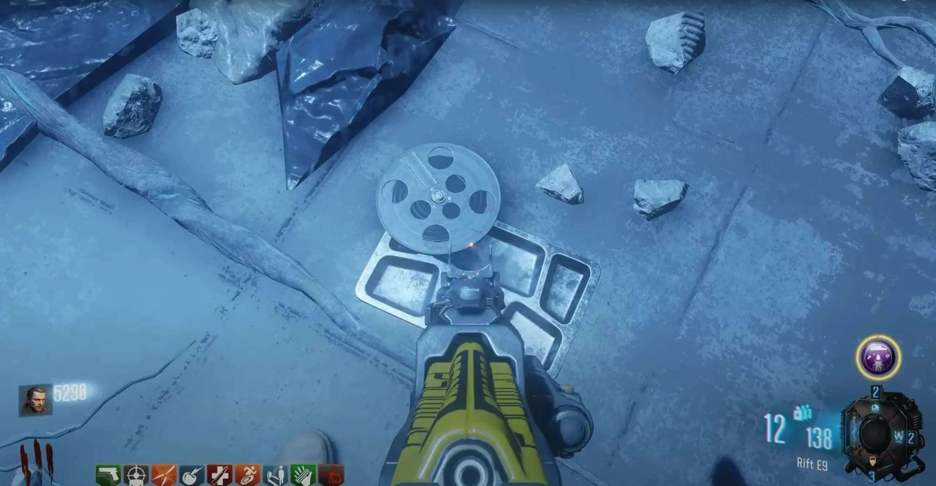 Once all nine Margwa have been defeated, an Audio Reel will spawn in the middle of the top bridge within the Apothicon. You must place this Audio Reel in the audio player in Kino Der Toten on the right side of the stage.