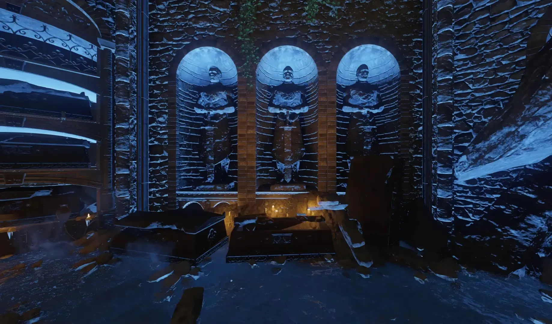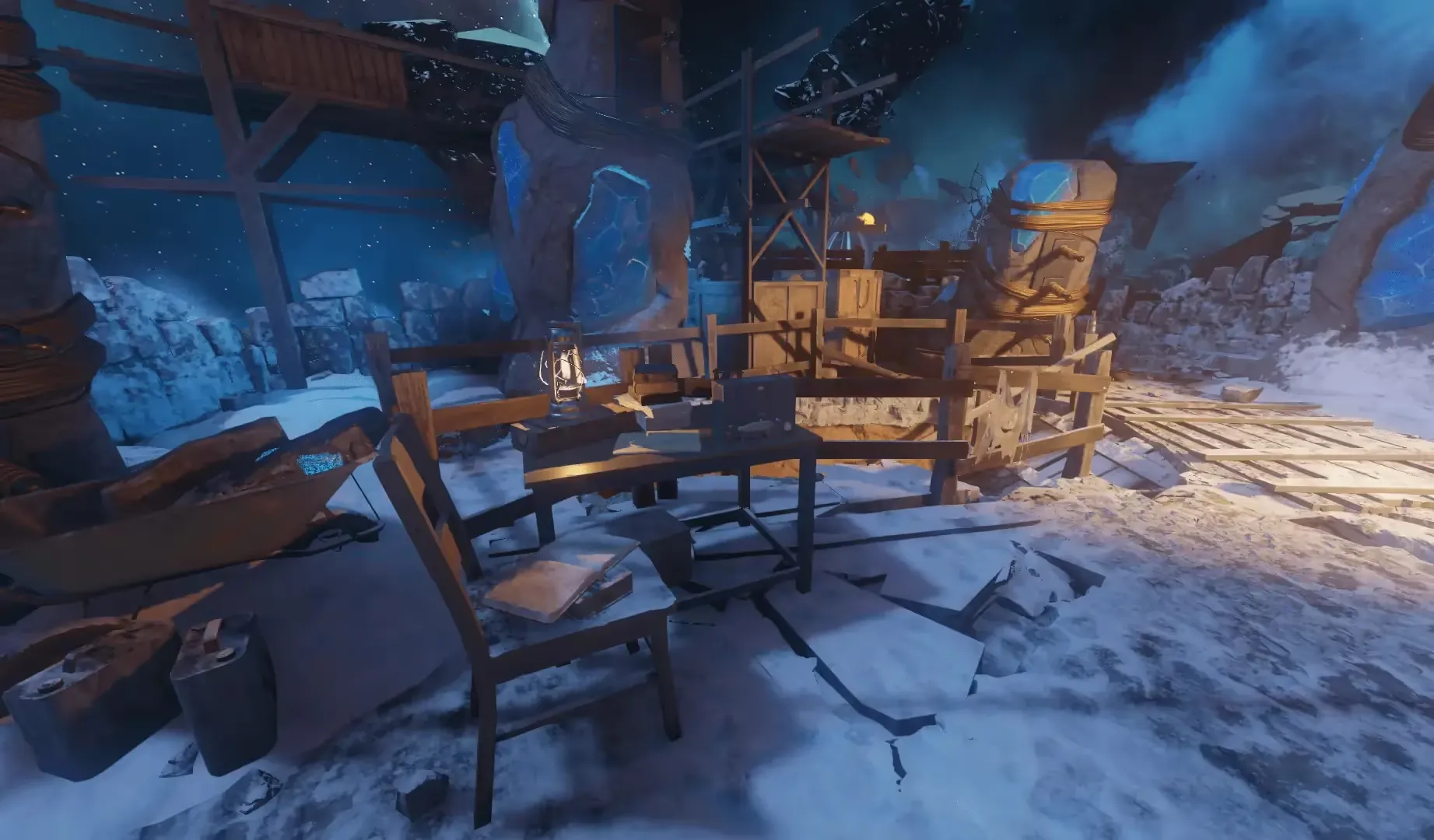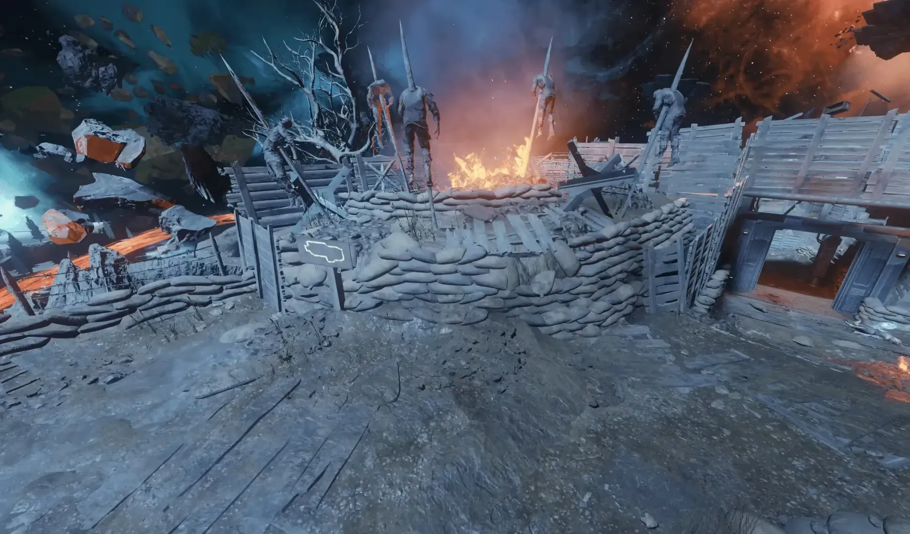 In the Spawn room outside the map, there are two floating islands containing two tombstones each. Etched on these tombstones are the names of our crew, and you must shoot these tombstones in the order that the Ultimis versions of our crew were killed: