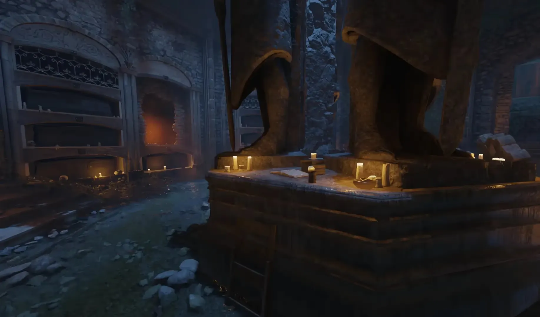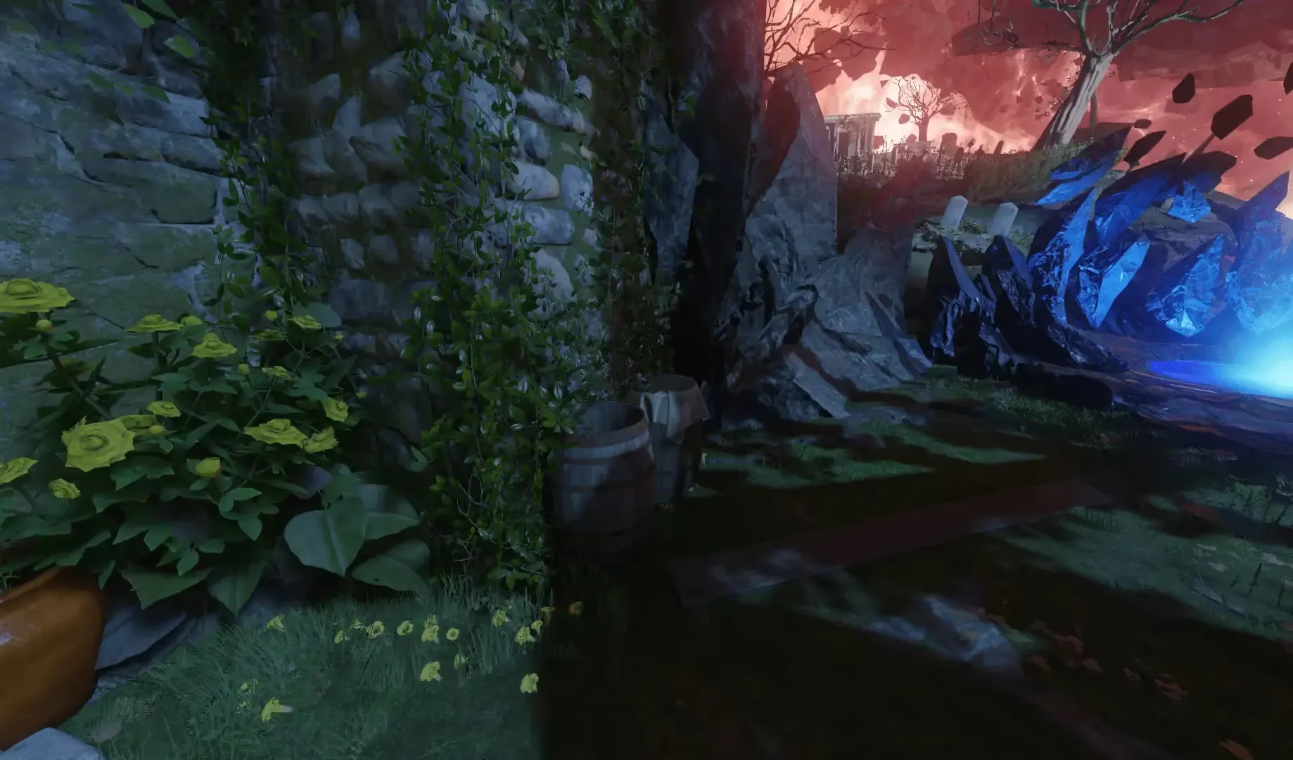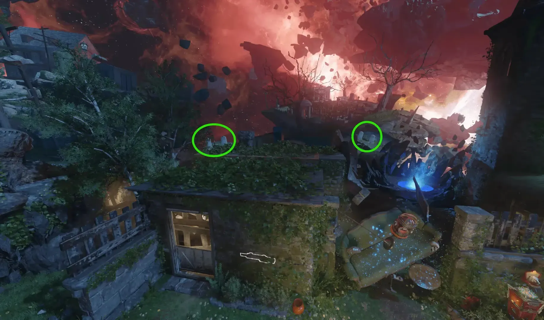 Once the tombstones have been shot in the correct order, thunder can be heard and each of the tombstones will have a small red flame emitting from them for a short time.