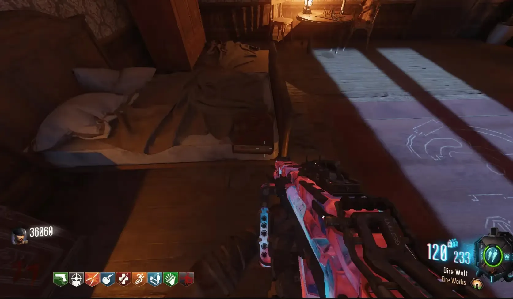 Once all bones have been collected, head to the top floor of Nacht Der Untoten to find the bones piled on the floor in front of the audio player. Shoot the pile of bones with the Pack-a-Punched Apothicon Servant to transform the bones into the zombie body of Sophia. Shoot her body with the Pack-a-Punched Apothicon Servant to absorb her body and spawn the final Audio Reel where her body was lying that you must place in the audio player atop of the Excavation Site in Origins.