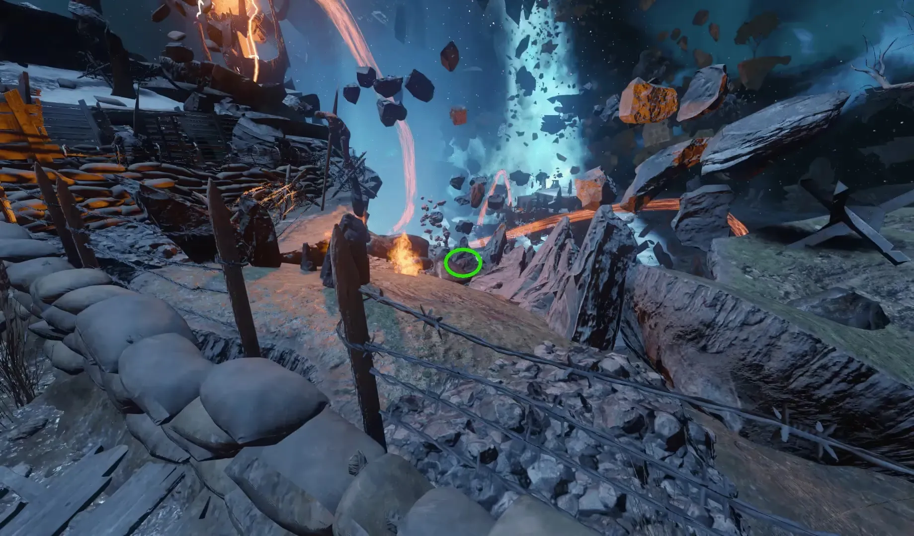 The angle at which you have to shoot these rocks is a bit weird, so be sure to just aim the turret around the center of the rock and move it around slowly until the turret locks in place and automatically kicks you off it, indicating successful alignment.