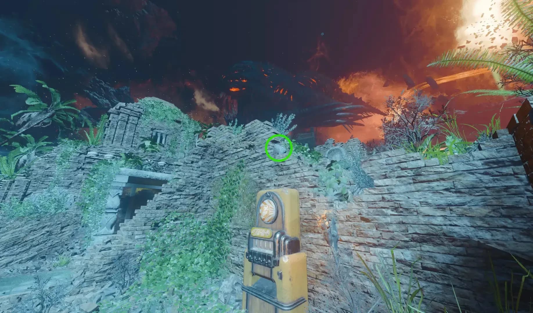 Once you have found the rock, build the Keeper Protector and lead it to the Jump Pad where the point rock is located. You will have to stand on the pointy rock for a couple of seconds while the Jump Pad is inactive for the Keeper Protector to begin a ritual and start chanting lasting 3 minutes. During this ritual, All zombies will prioritize the Keeper Protector and you must protect it until the ritual is complete.