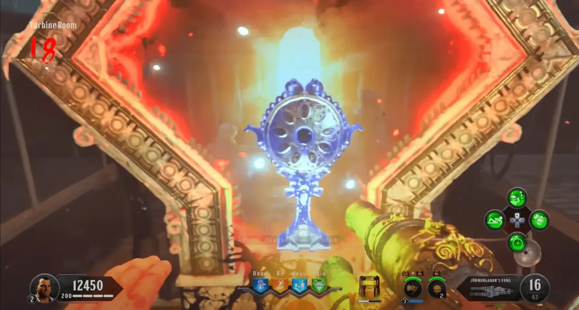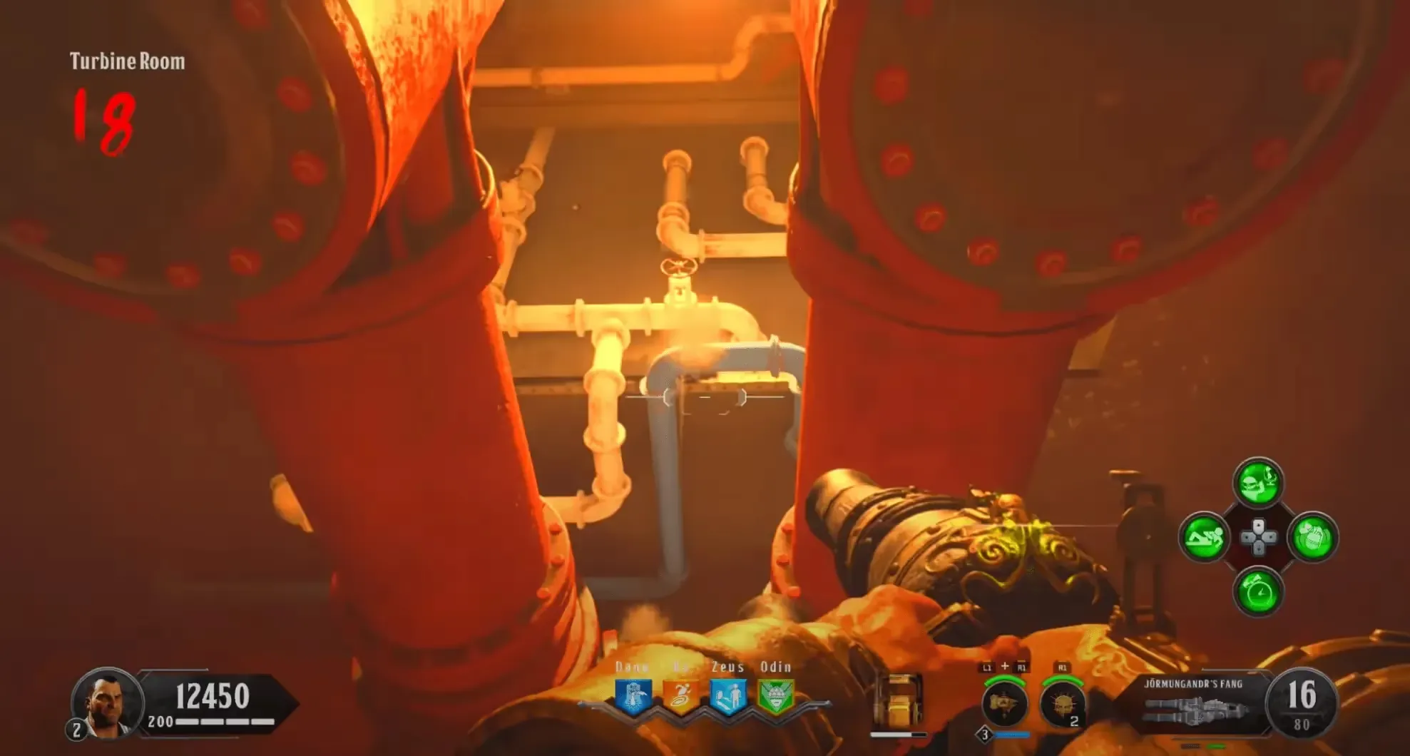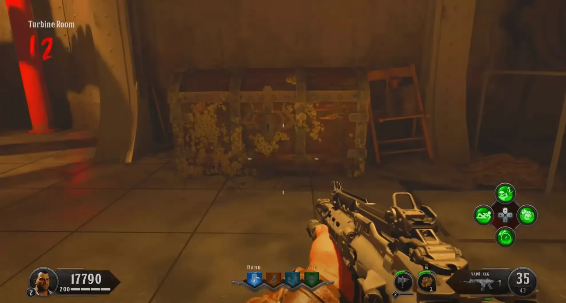 Head to the Turbine Room, using the Decayed Kraken you must shoot nine blue pipes with steam leaking out of them. If you successfully hit one of these pipes, you'll get a hit marker along with a metallic audio cue and it should turn into a water leak instead of a steam leak. The pipes can be found in the corners of the room and on the ceiling.