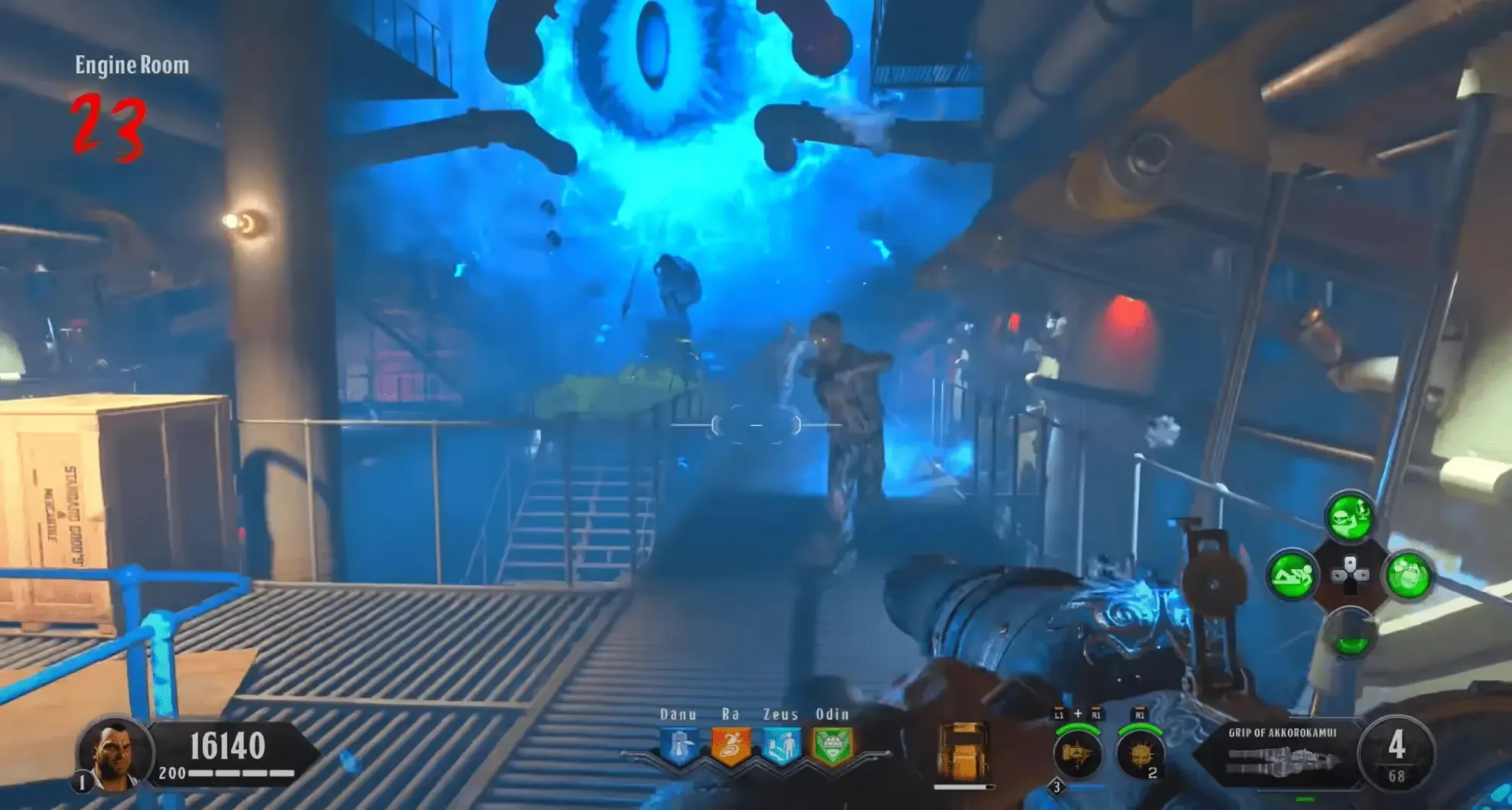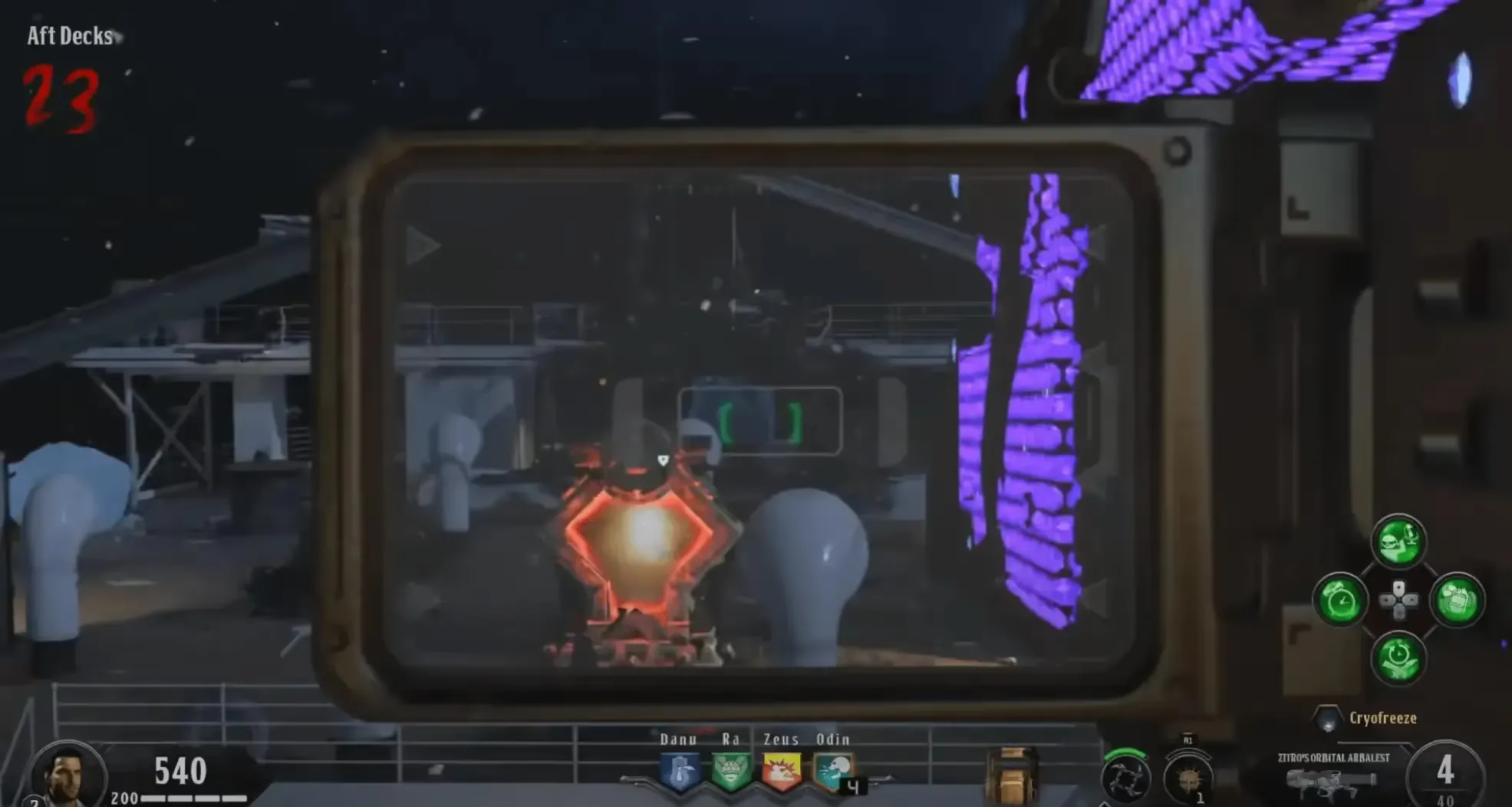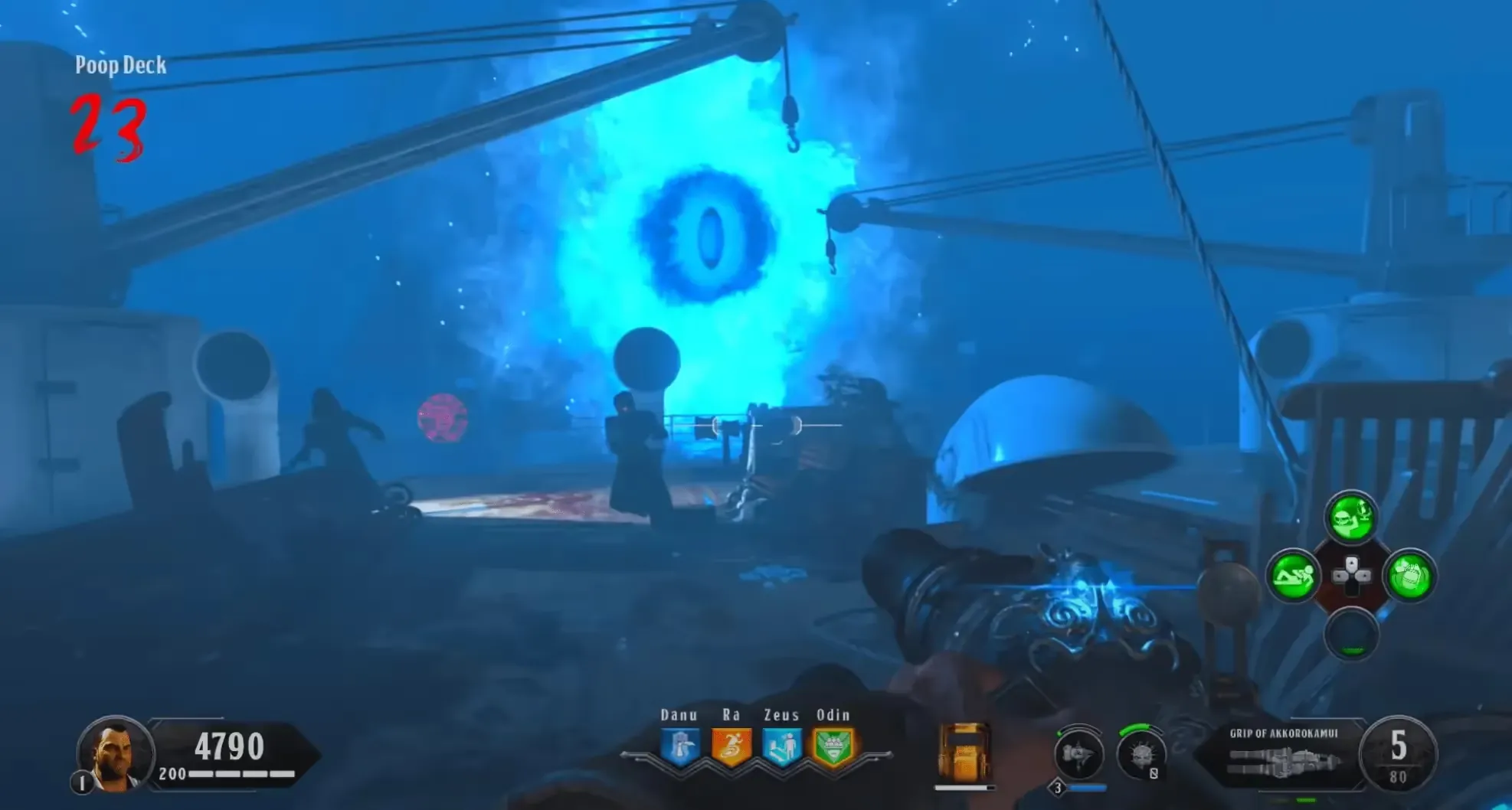 You must be quick for this step, move along the right side of the ship destroying any ice blocks in your way, use the Kraken, and angle yourself so that you are hitting both the zombies and the ice block, or throw Homunculus while you are destroying the ice blocks. You can also use the special weapon to destroy any ice blocks in your way once you reach the second ice block.