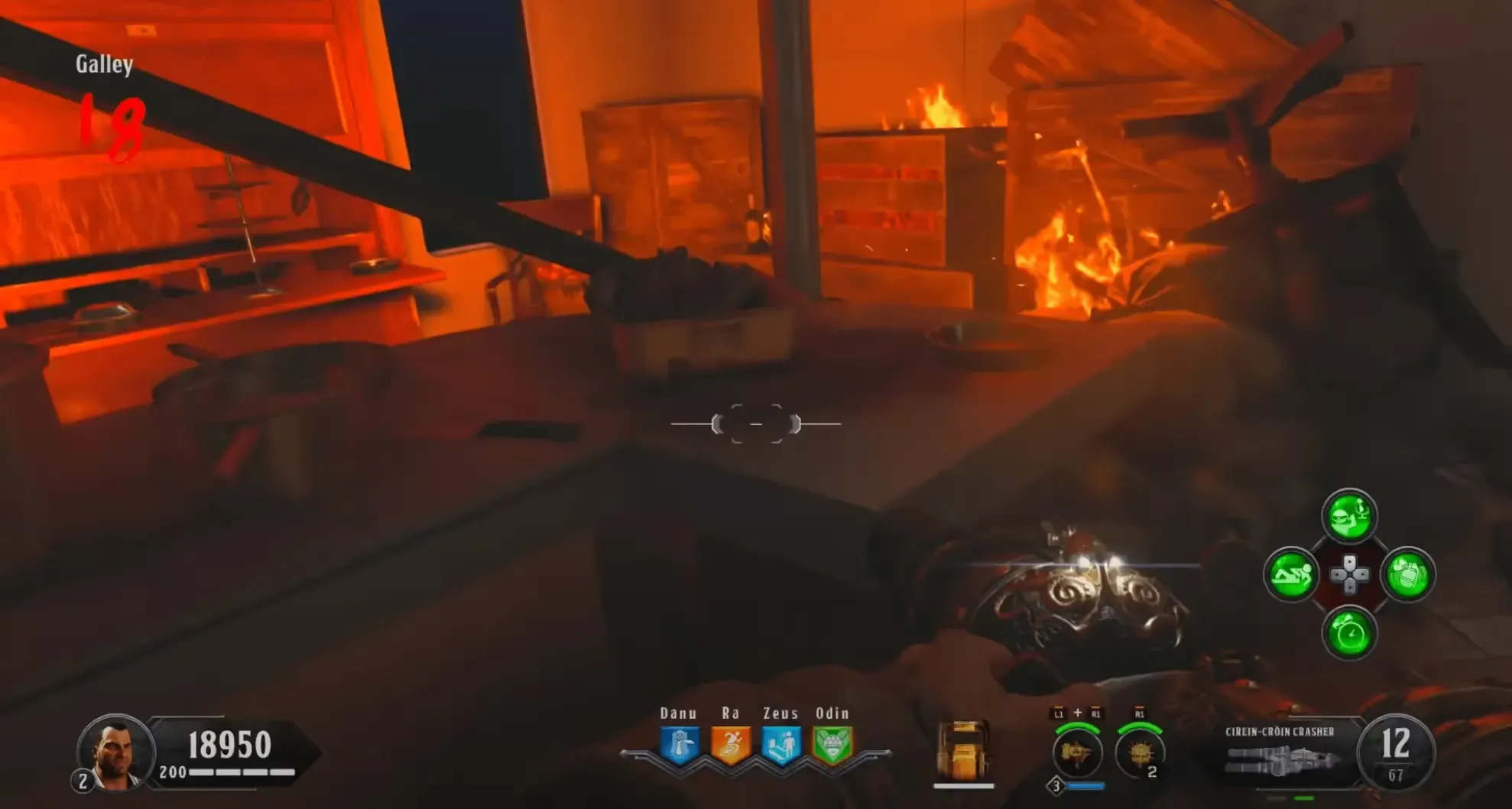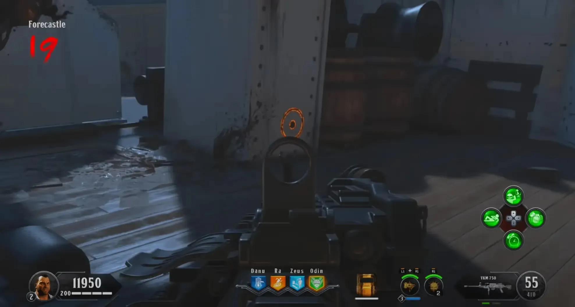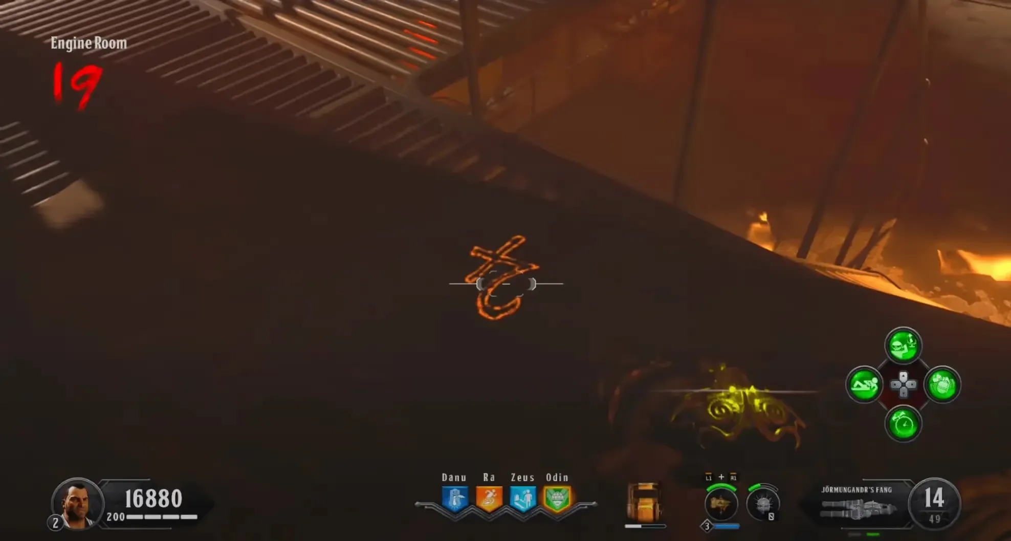 When the phase starts, the Eye of Malice will do a series of teleports and then end up either on the right side, left side, or front of the ship, and will start shooting the eye beam attack. Before this attack throw down a Homunculus, during this attack, you must damage him enough to get him to teleport again, you must do this a total of three times, and after the third time, damage him when he does the eye beam attack, he will teleport back to the front of the ship emitting a loud audio cue and beginning his wipe mechanic. Be sure to throw another Homunculus before the wipeout mechanic near the Pack-a-Punch so the zombies are not in your line of fire.