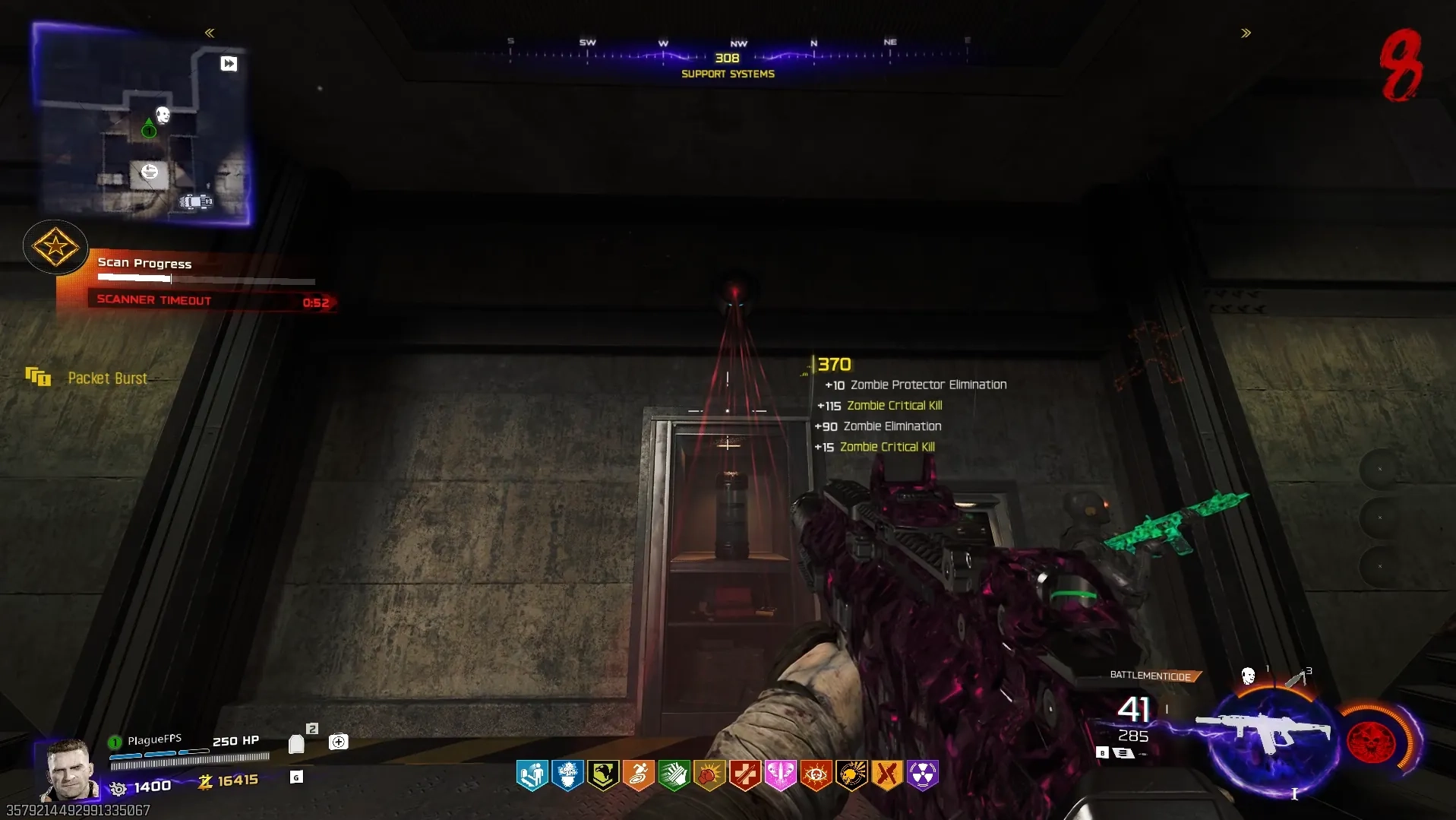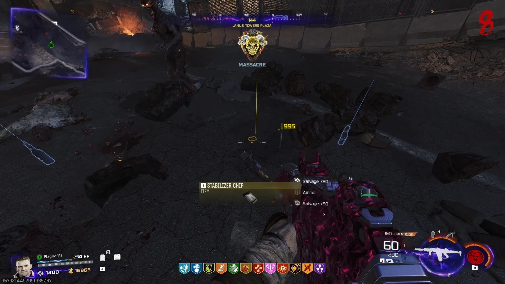 Wait until Round 8 and head to the right side wall near the gate leading to Blackwater Lake in the Janus Towers Plaza, where a Uber Klaus will spawn out of the car, which you must kill to obtain the Stabilizer Chip.