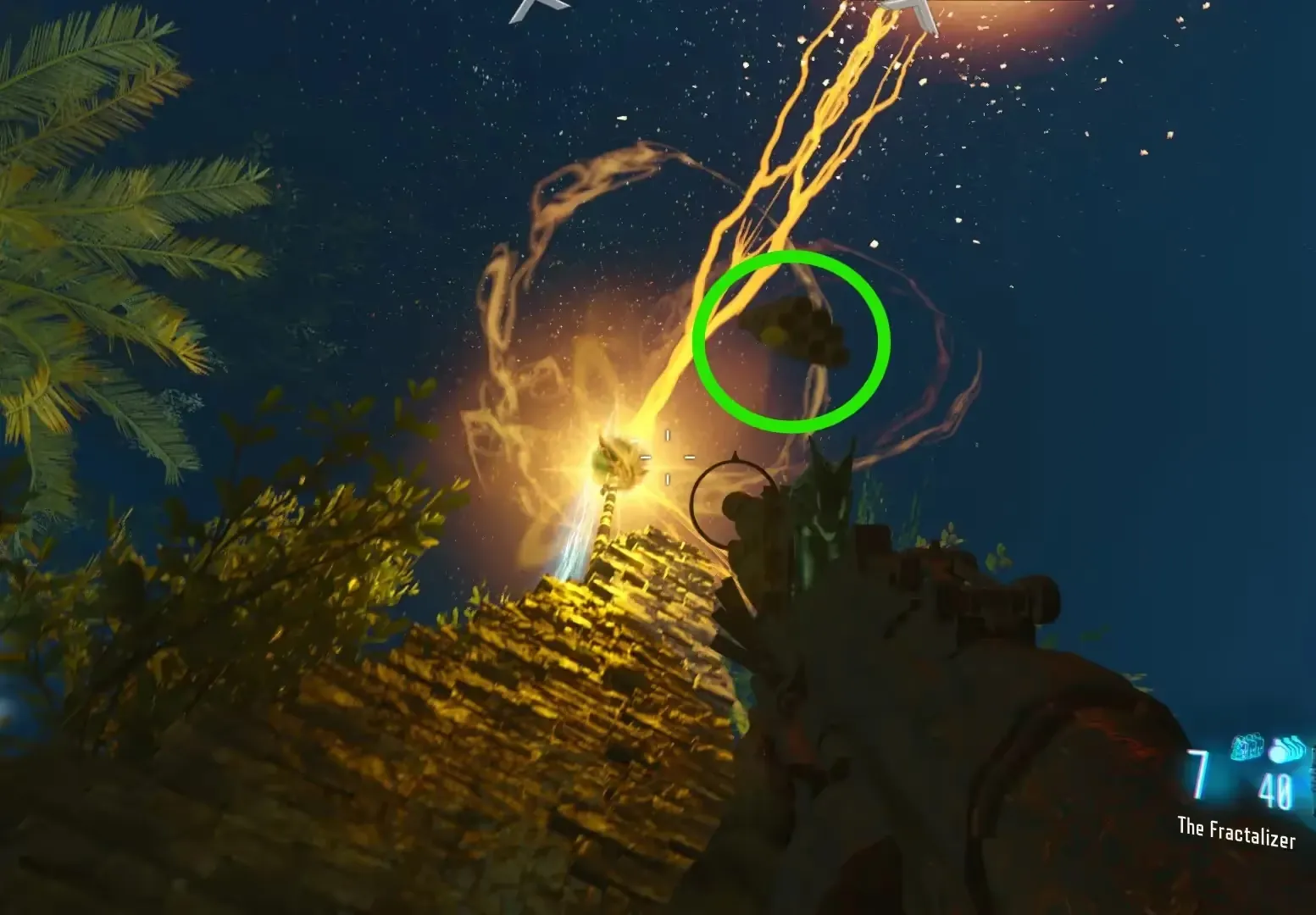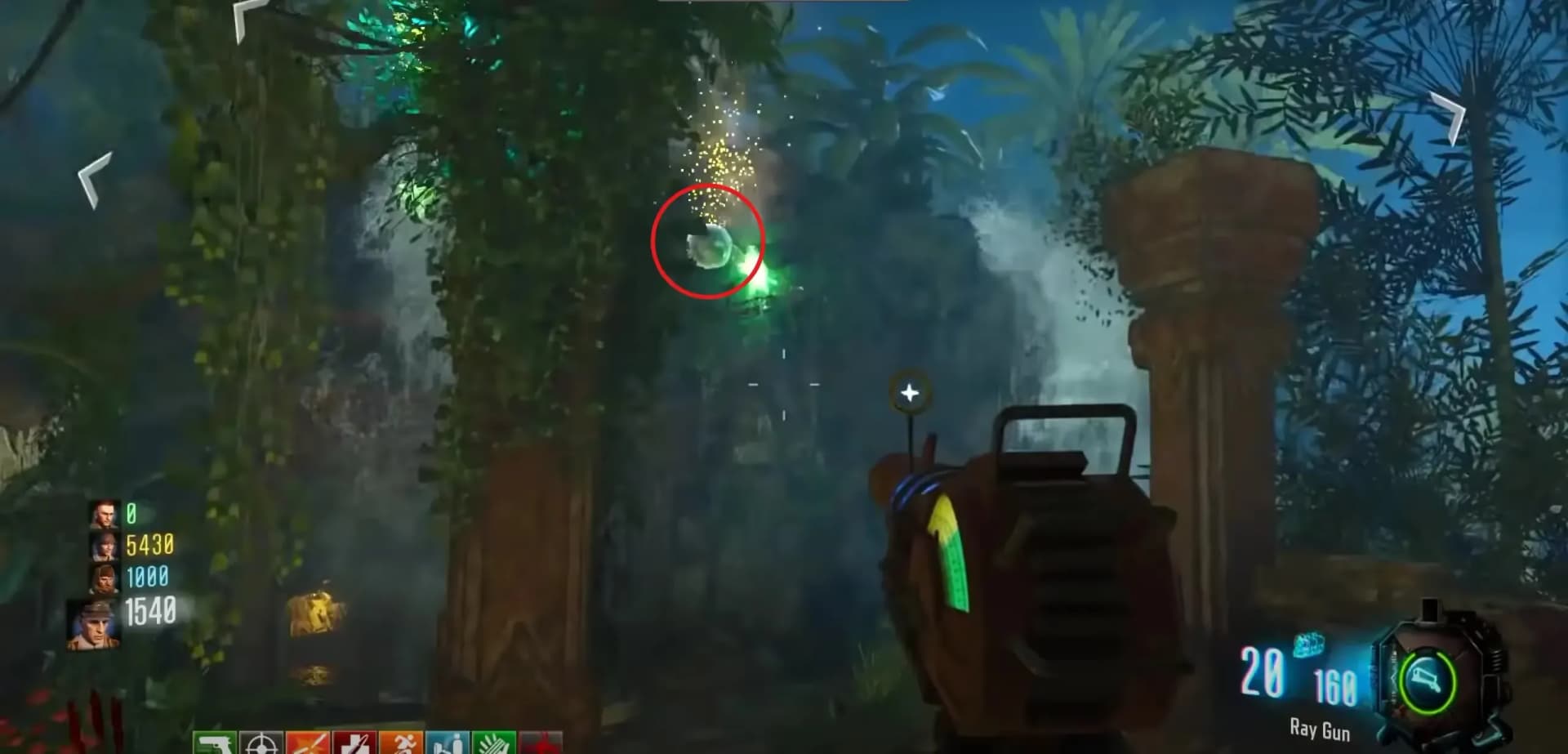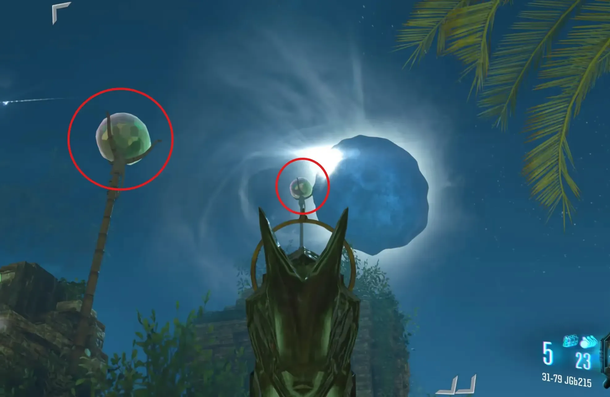 After triggering an eclipse, head over to the water slide entrance, and on top of the entrance should be a crystal sphere that you need to take down using an explosive (Grenades, Ray Gun, etc...).