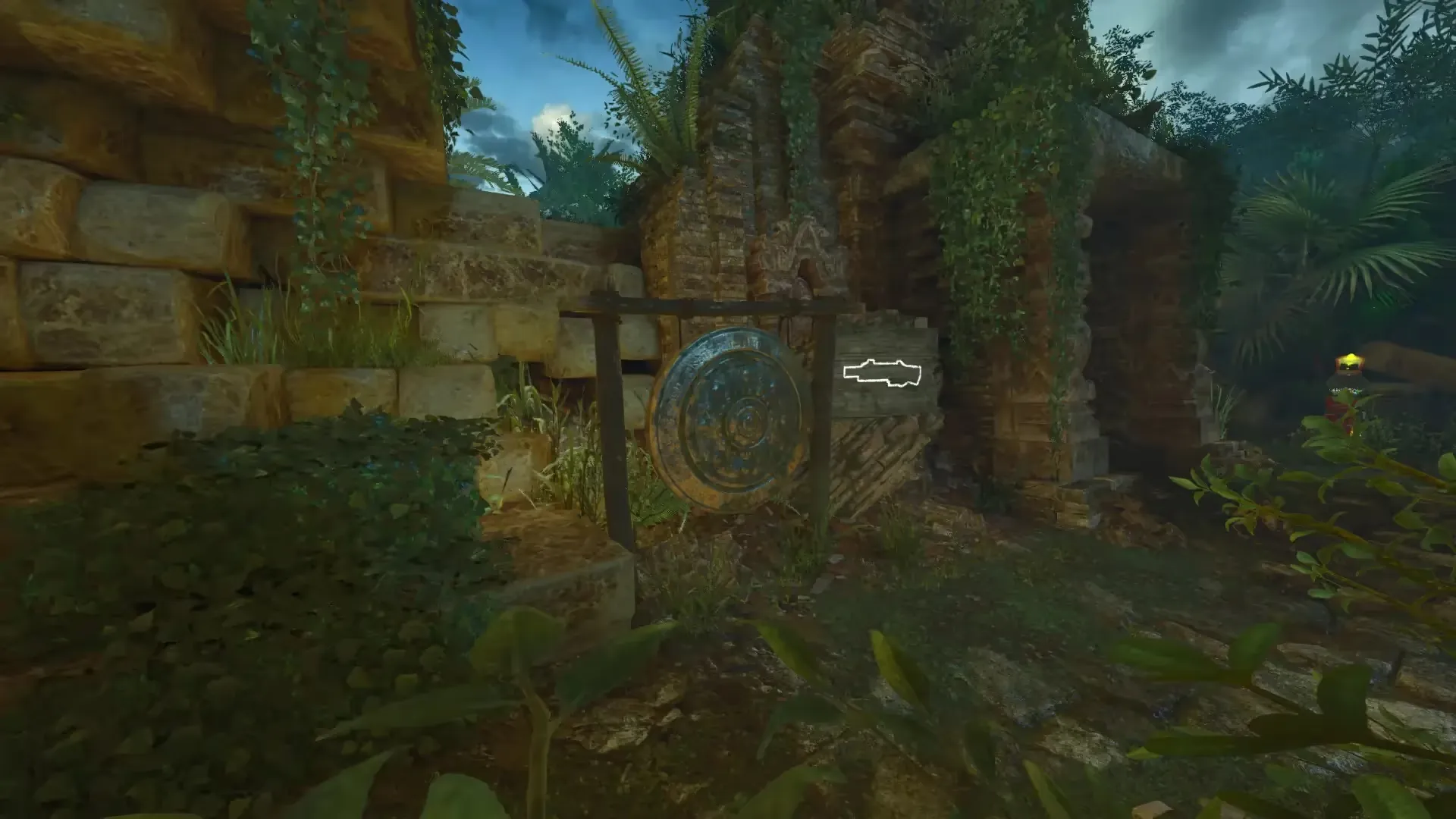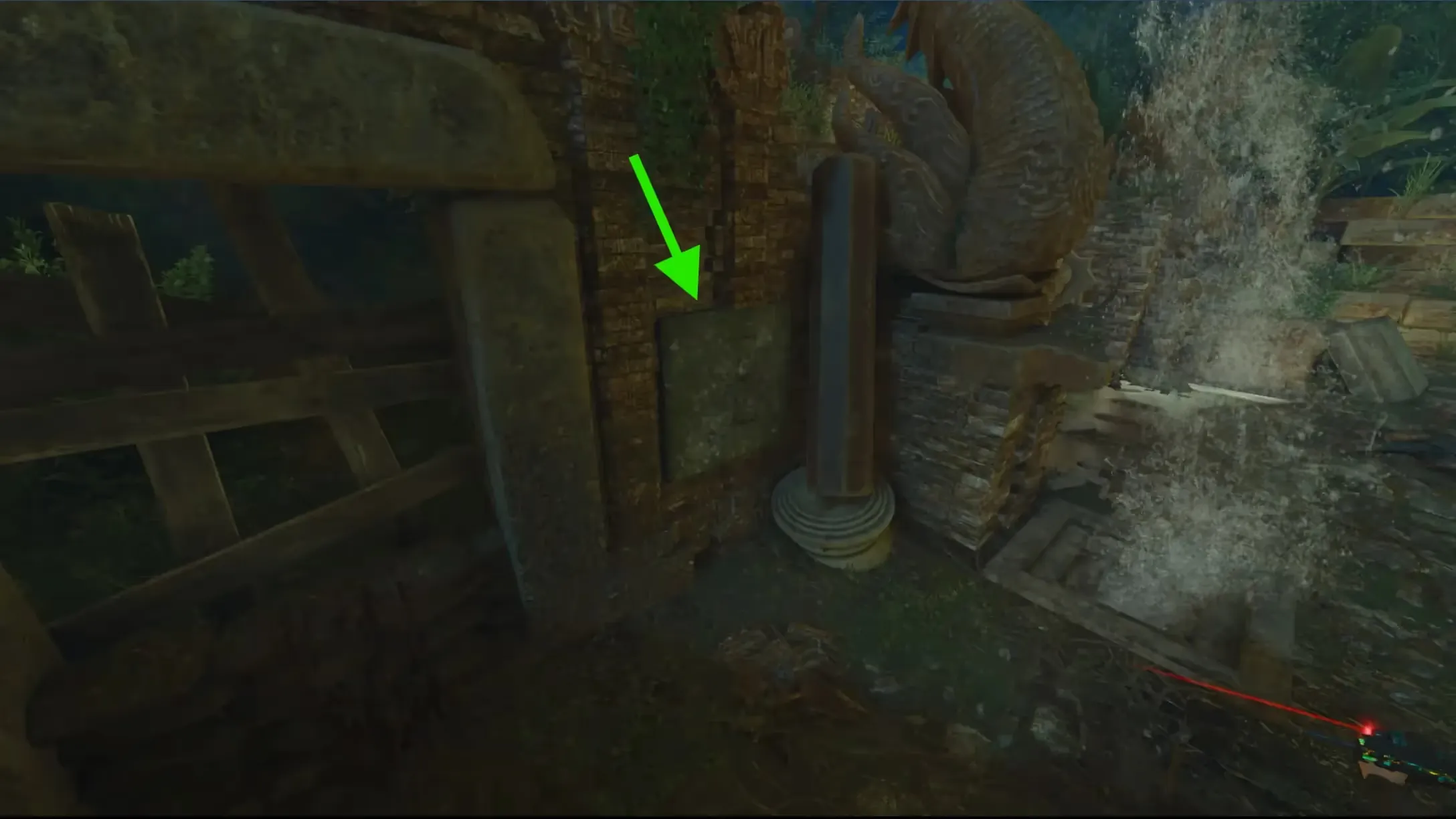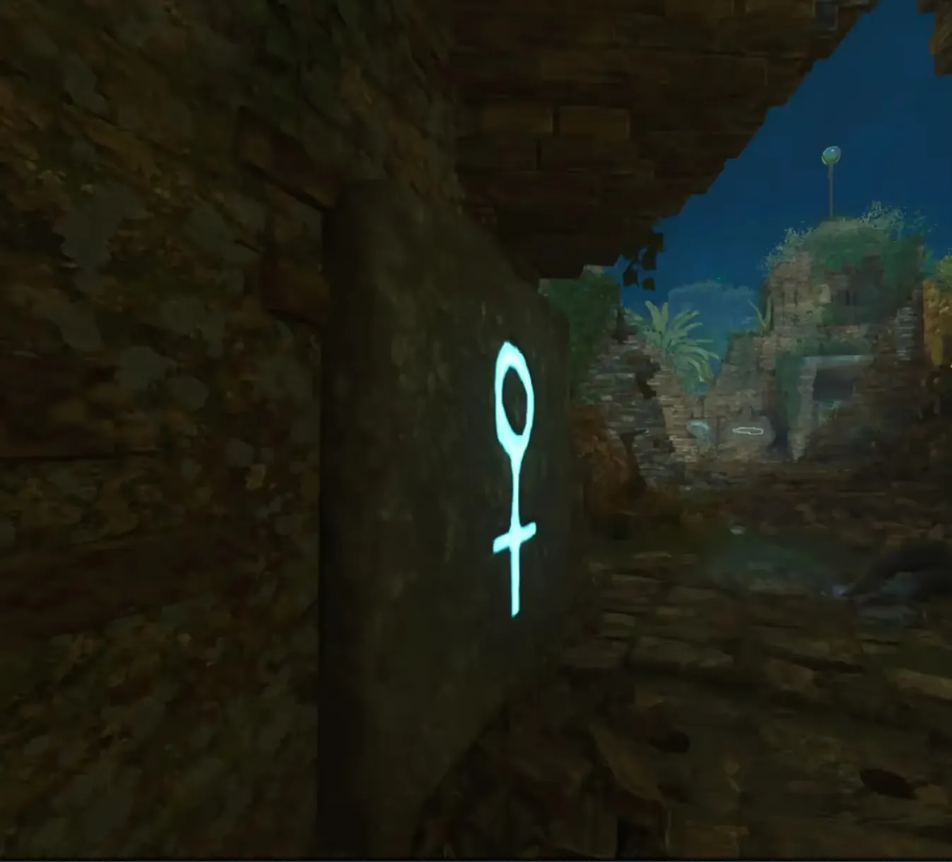 After triggering an eclipse, head to the tunnel near the wooden bridge that leads to the waterfall. In this tunnel, there will be 4 holes on the side of the wall three of which are marked by a blue light while the fourth is not.