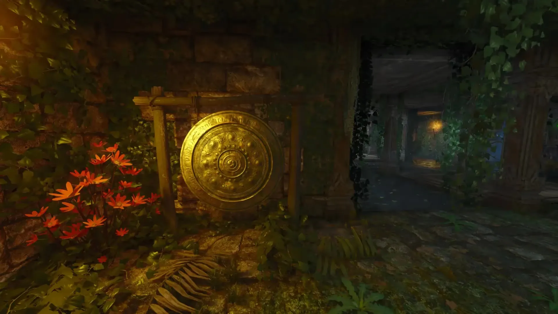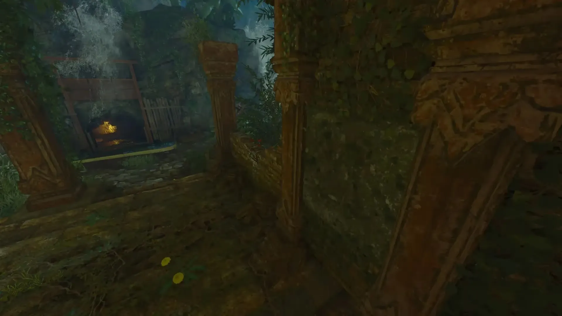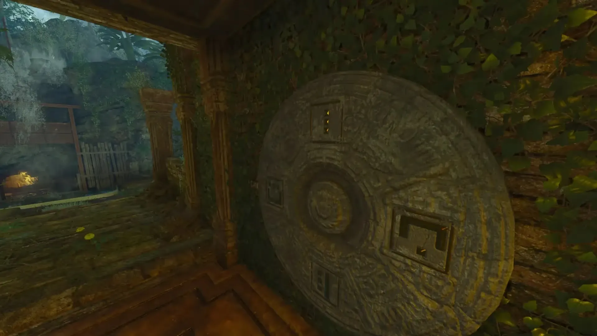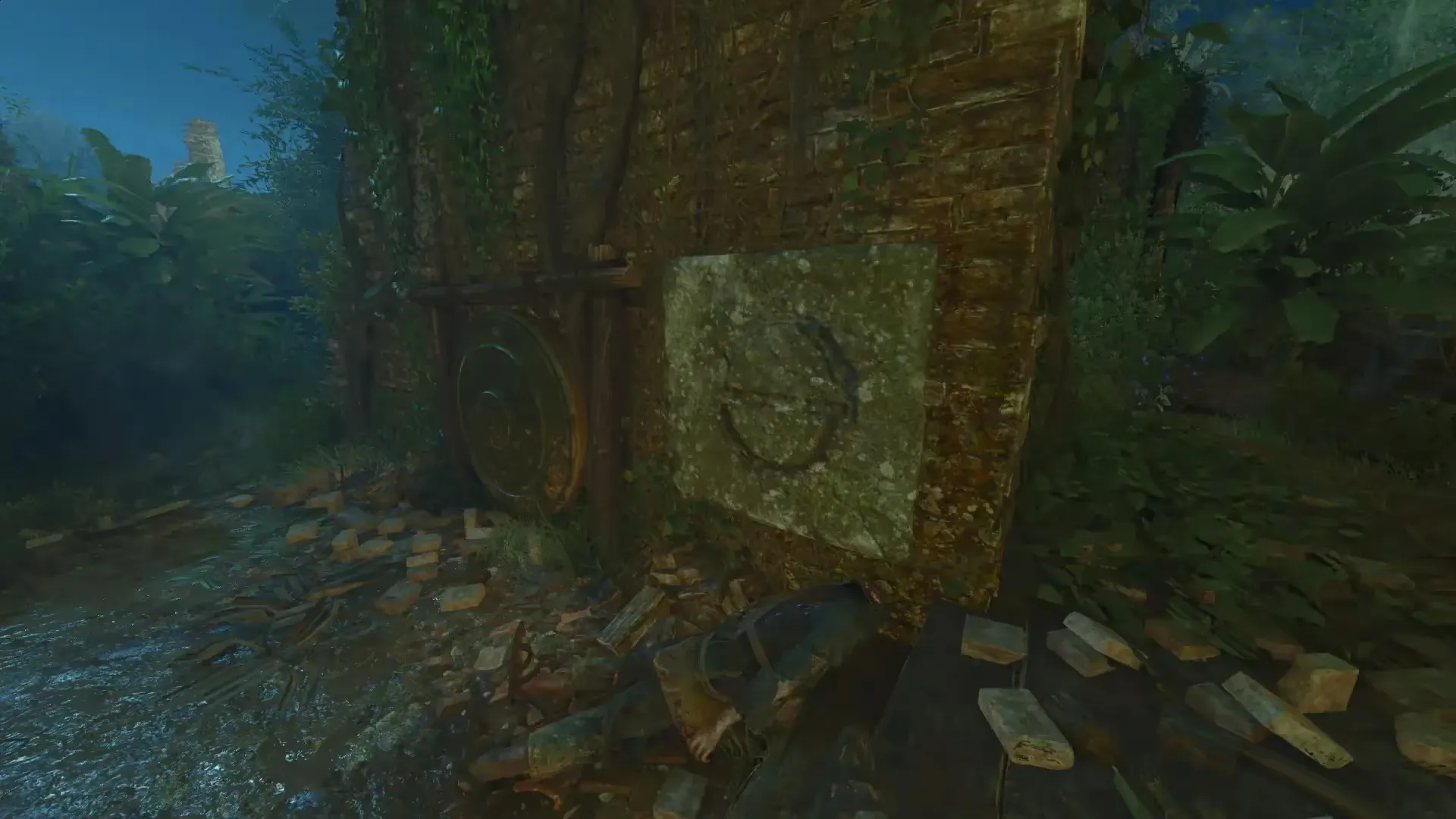 After triggering an eclipse, head to the tunnel near the wooden bridge that leads to the waterfall. In this tunnel, there will be 4 holes on the side of the wall three of which are marked by a blue light while the fourth is not.