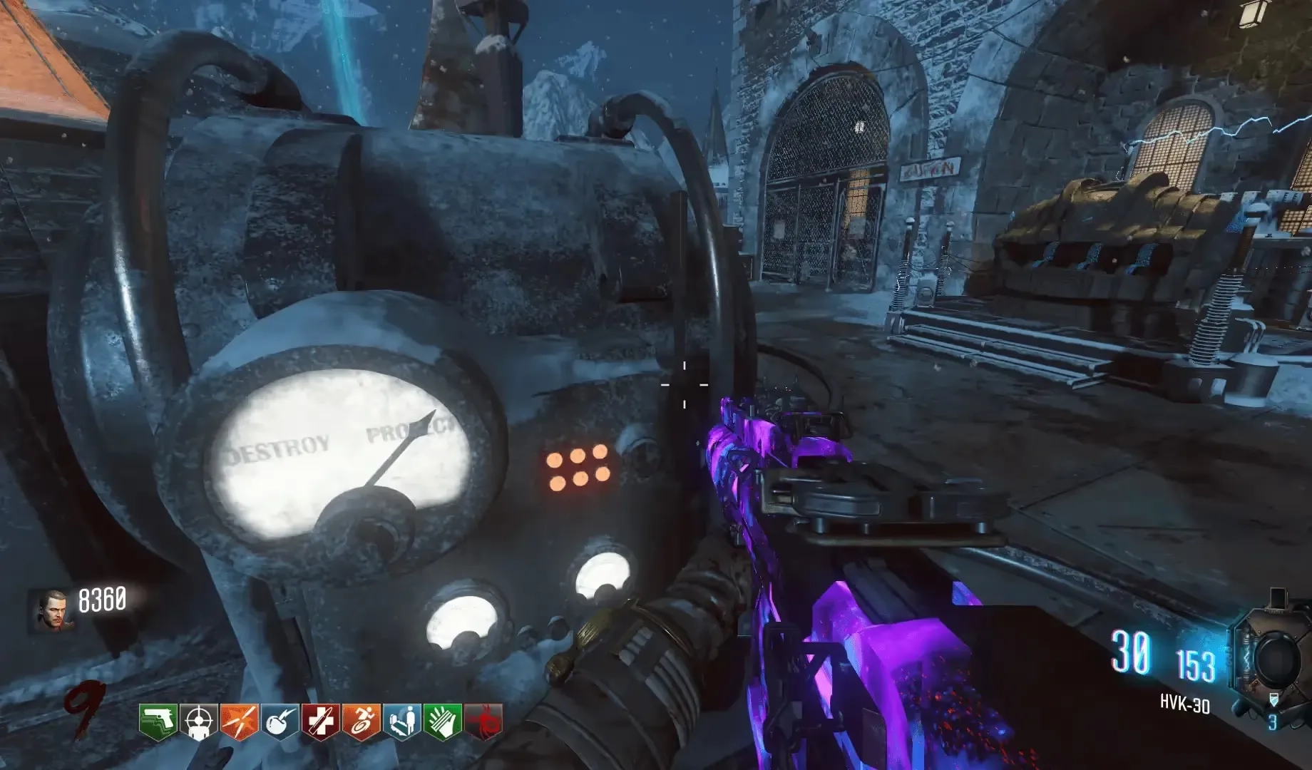Head back to the Death Ray. The front of the Death Ray will now have a bright green button that you can interact with, bringing a rocket containing Ultimis Dempsey crashing into the Clock Tower and landing in the courtyard. Head to the crash site, and in the snow next to the rocket will be the Vril Device on the floor for you to pick up.