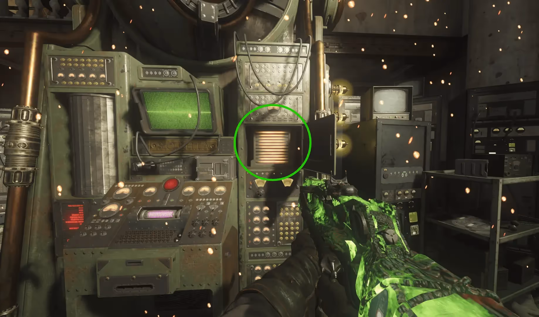 After pushing the button underneath the main monitor, a drawer under the button will open, revealing a keycard that you must pick up and bring to the Hatchery and insert into the terminal on the same floor as the Pack-a-Punch, which will begin a lockdown event similar to obtaining the Dragon Strike.