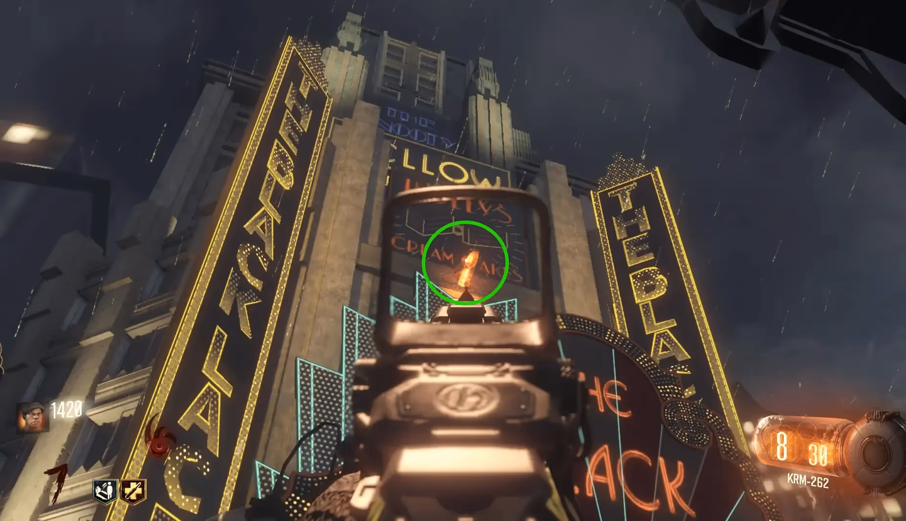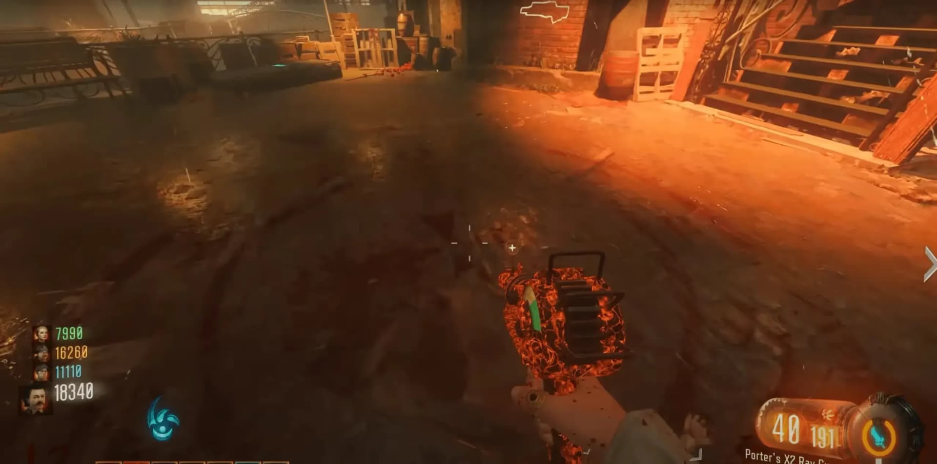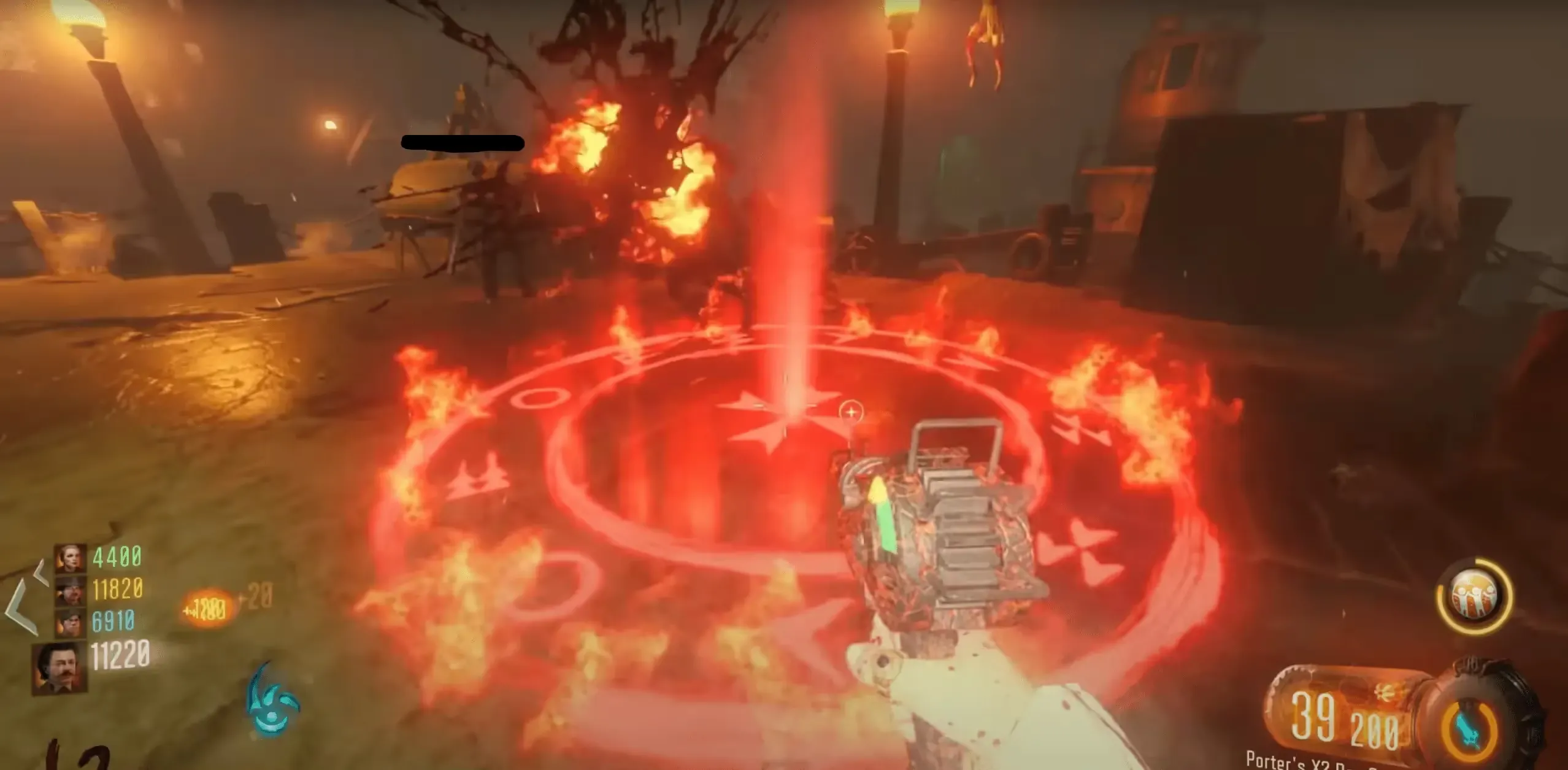 A player must pick up the flag de-spawning all zombies and rapidly spawning Insanity Elementals (aka Meatballs). The player must now carry the flag to spots marked with purple electricity on the ground.