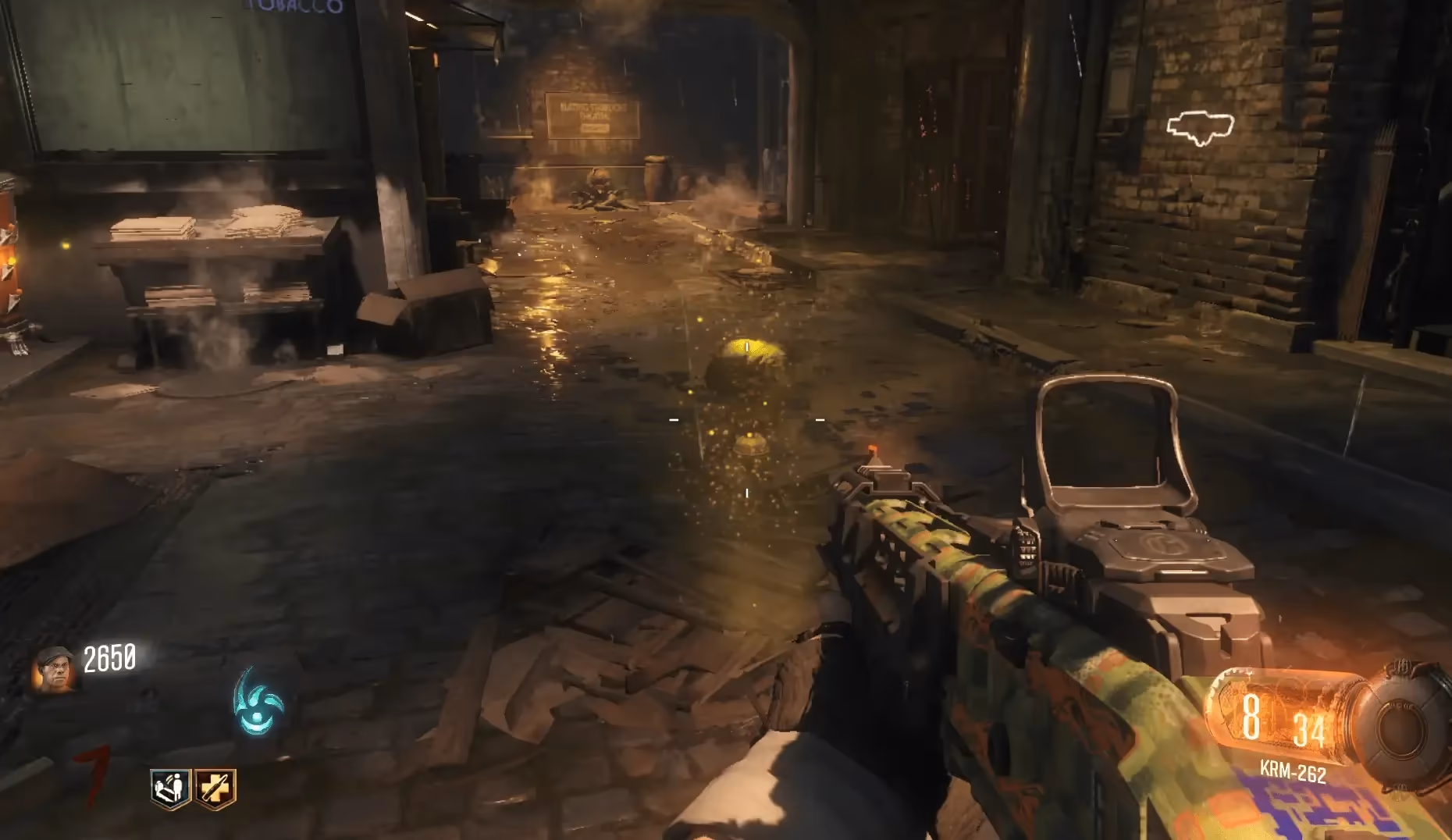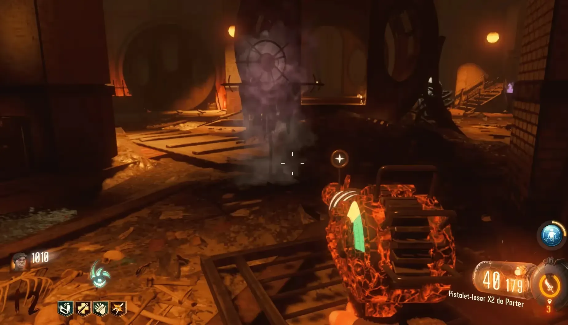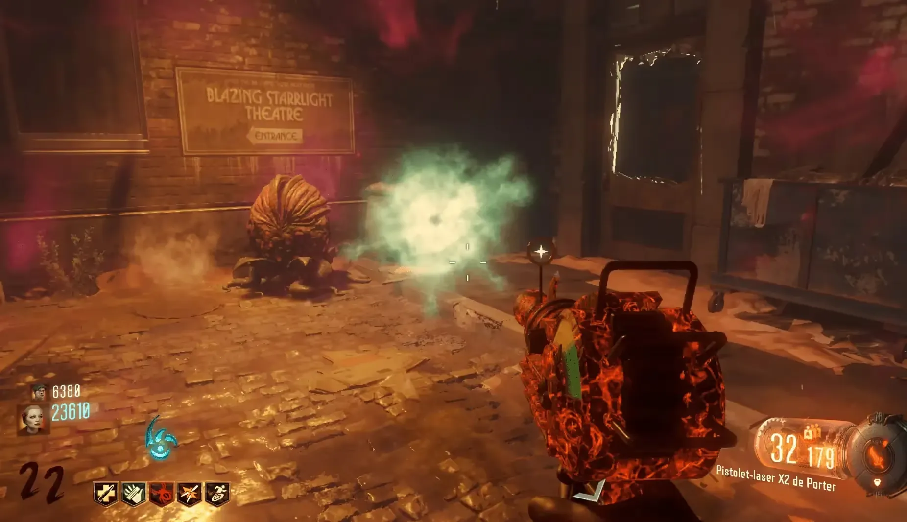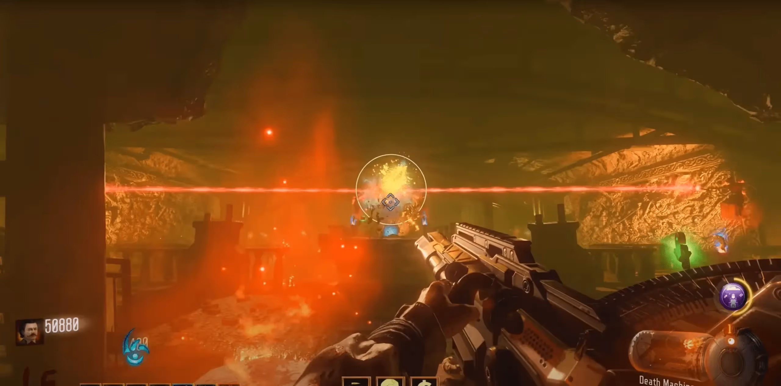 A player must pick up the flag de-spawning all zombies and rapidly spawning Insanity Elementals (aka Meatballs). The player must now carry the flag to spots marked with purple electricity on the ground.