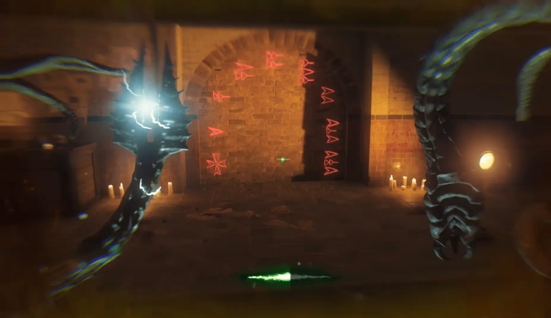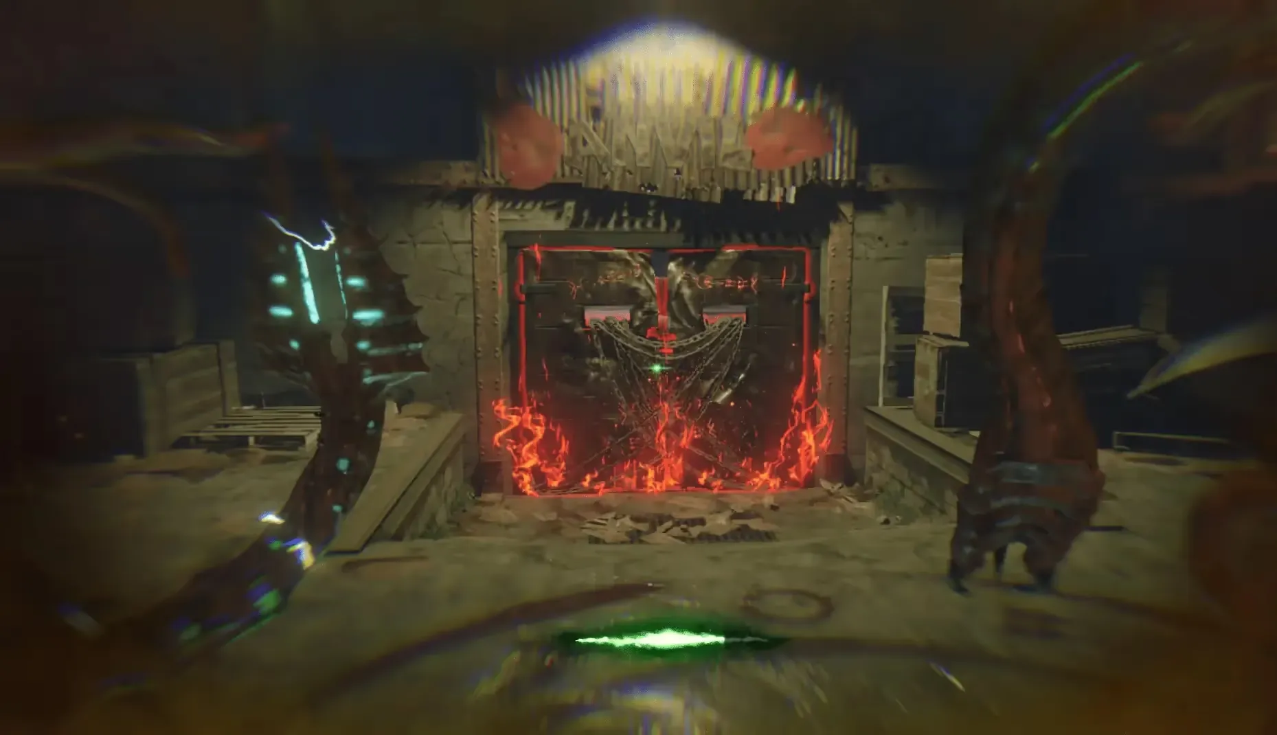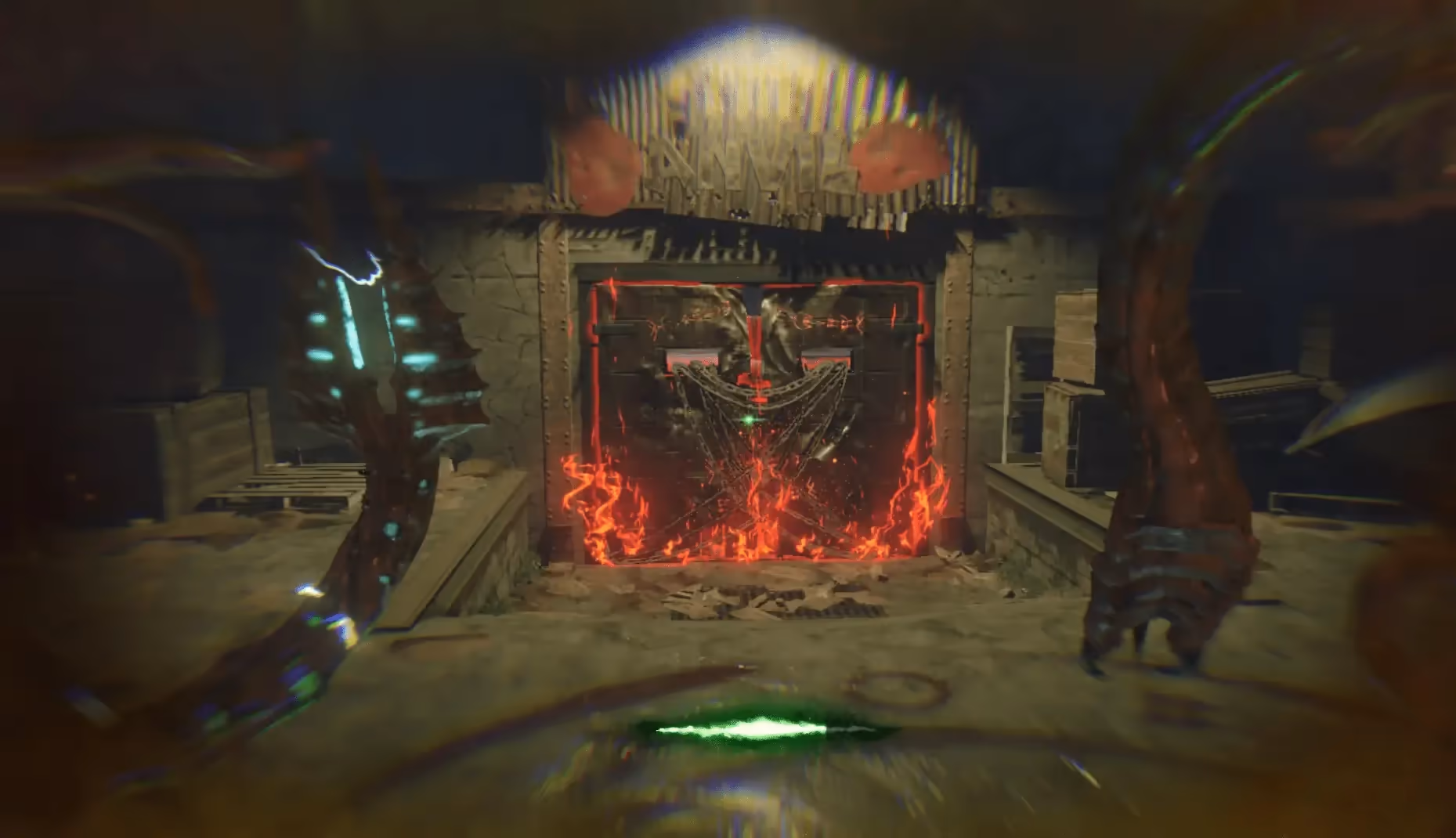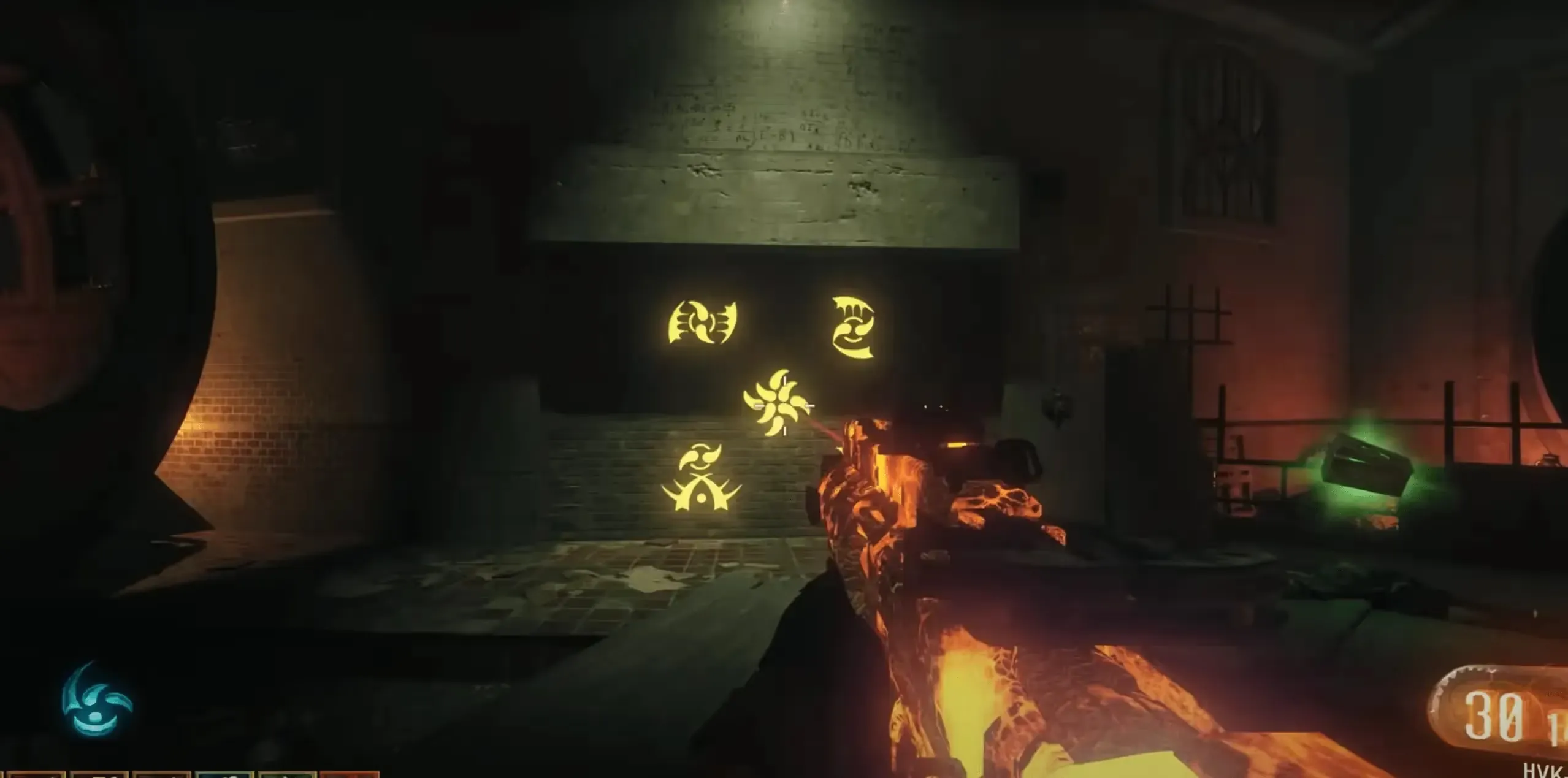 Once you have the three symbols, head to the underground area outside the Pack-a-Punch room and enter beast mode. You'll then have to shock the three symbols on the wall you see in the above image, revealing four Apothican Eggs and Apothican Swords.