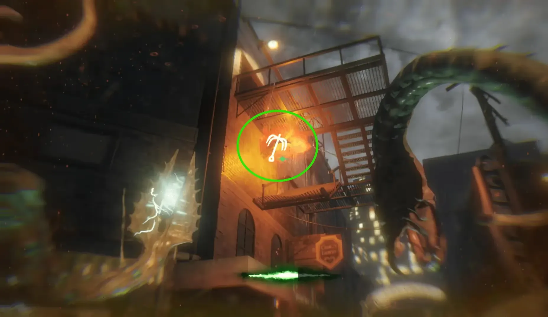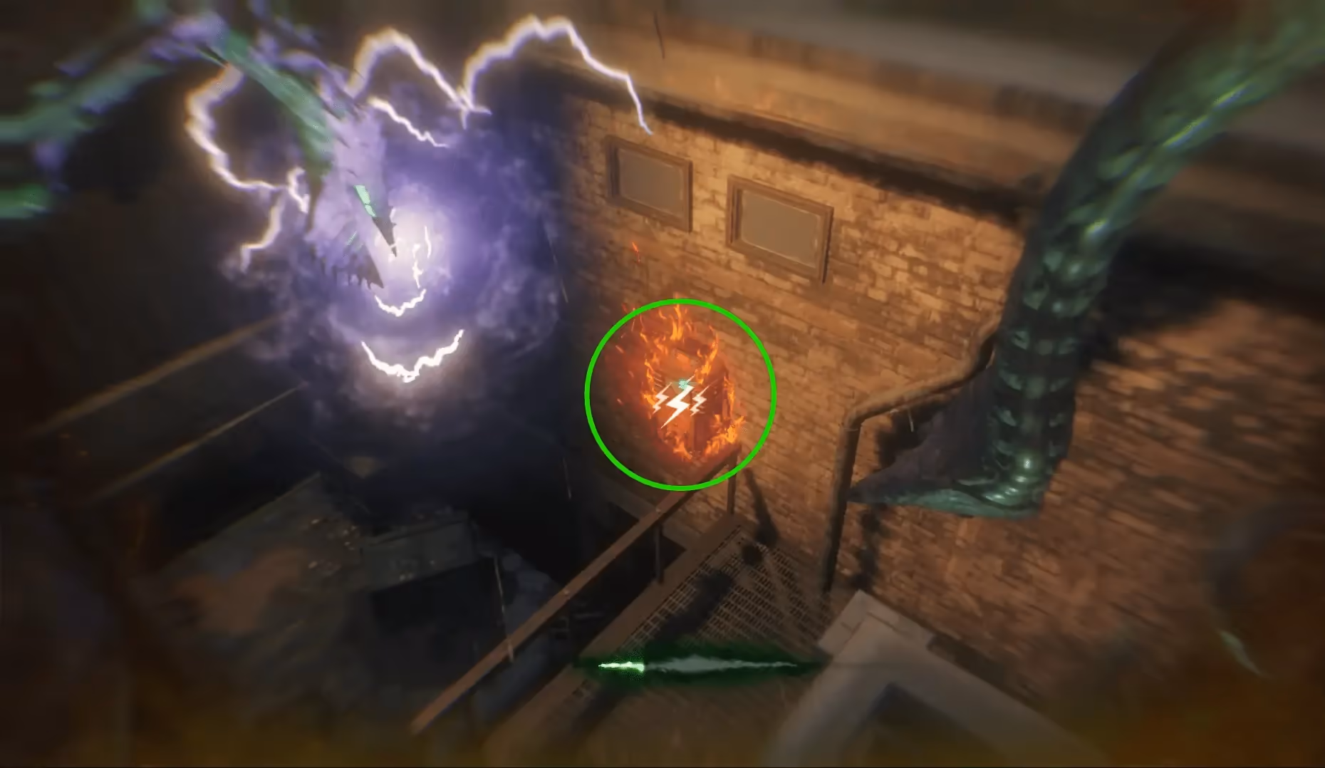 Next, open the door that leads to the Train Station. Enter beast mode and look towards the balcony of the building just right of the Train Station to find a hook you can grapple toward. Afterward, run down the stairs of the building until you reach the stairs leading to the ground level and shock the powerbox to open the ritual site.