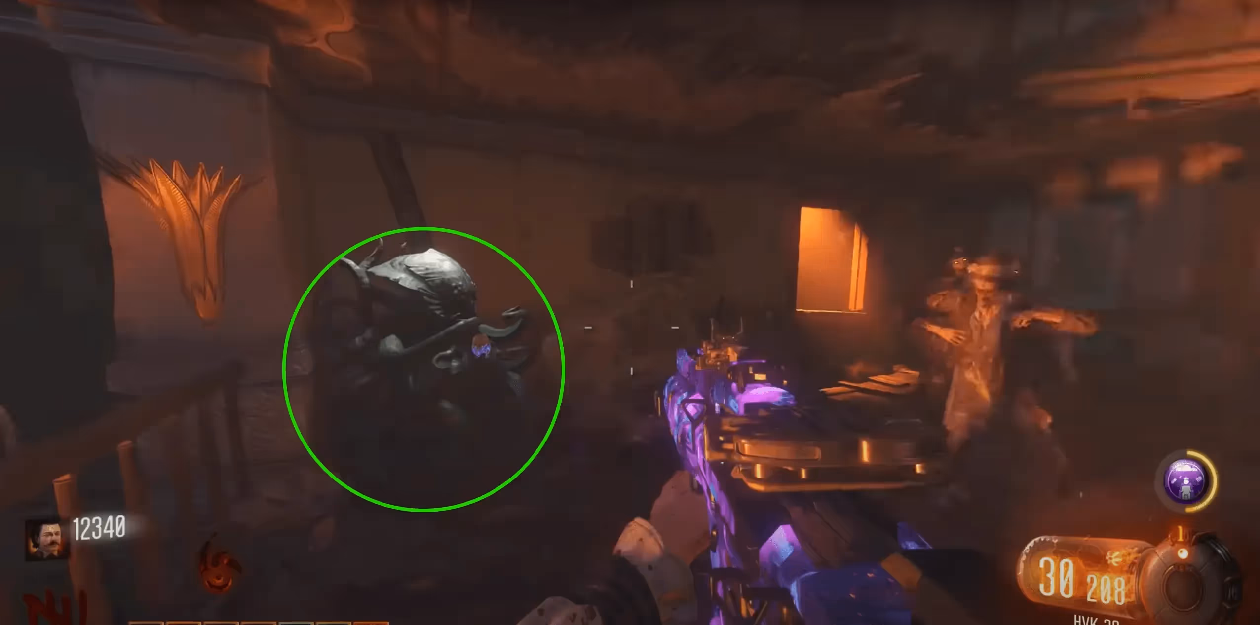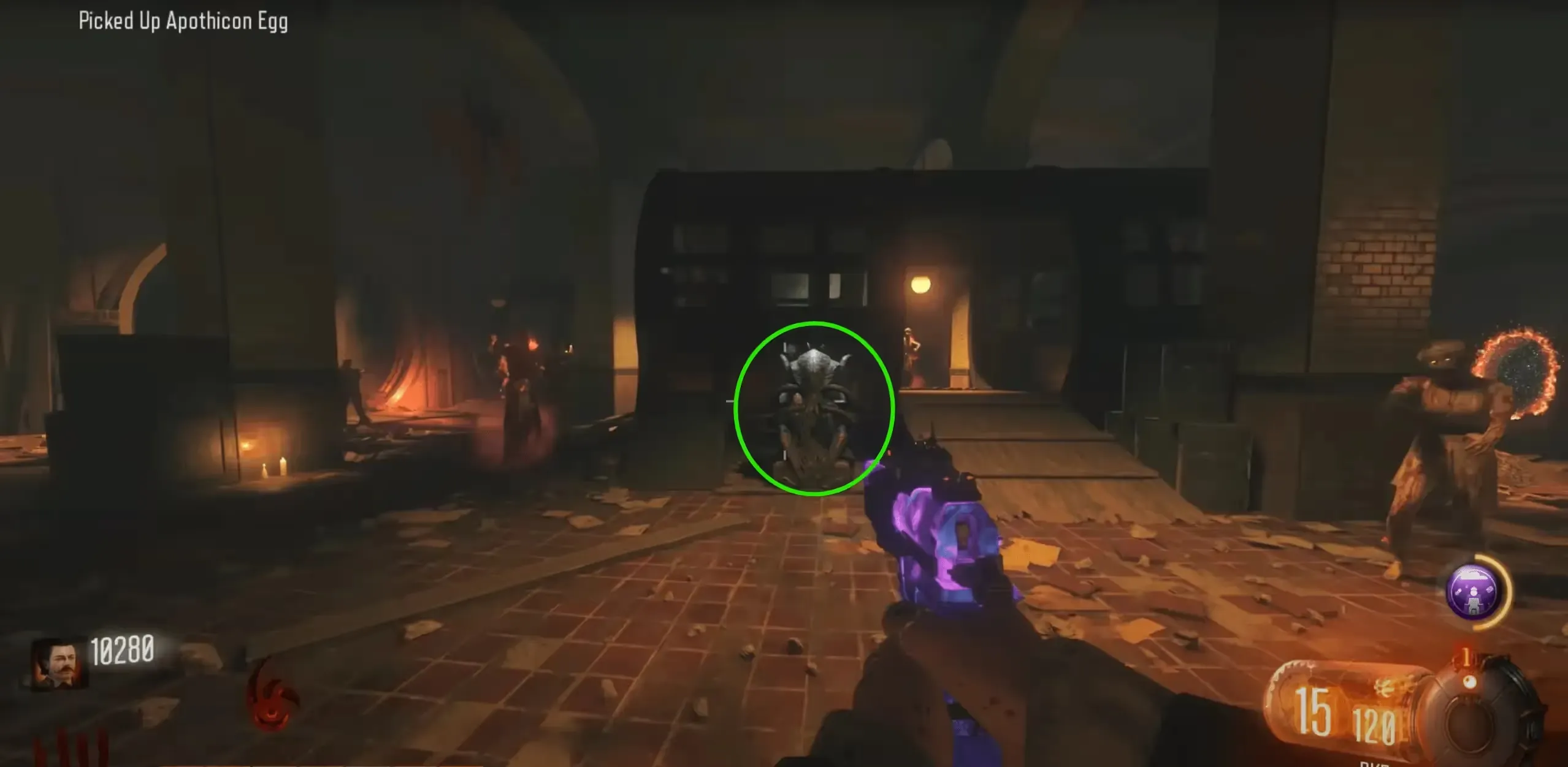Each player must pick up an egg and begin filling it with zombie souls by placing the eggs on four Cthulu statues around the map and killing 10 zombies near the egg once placed. The locations of the four Cthulu statues are: