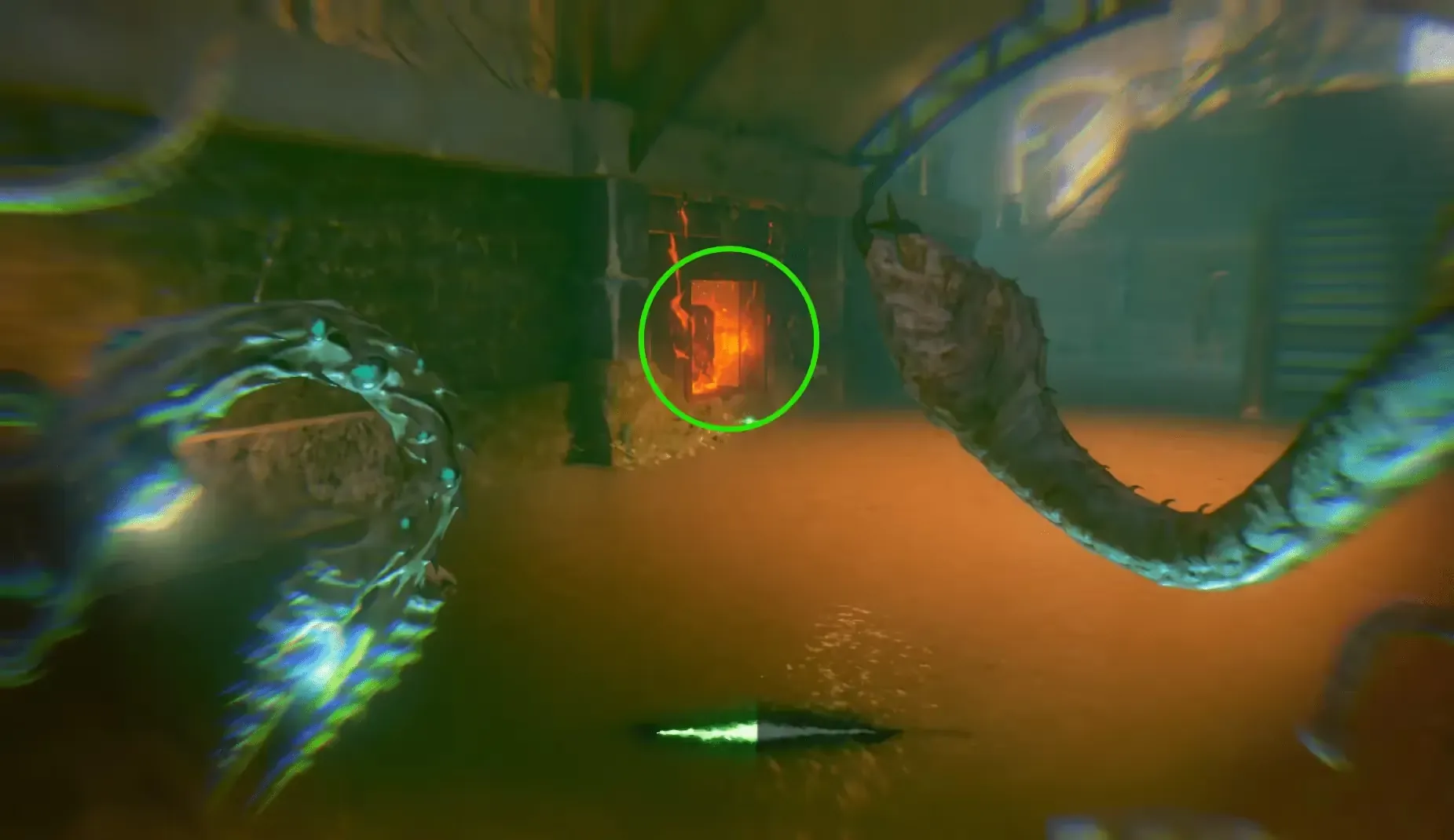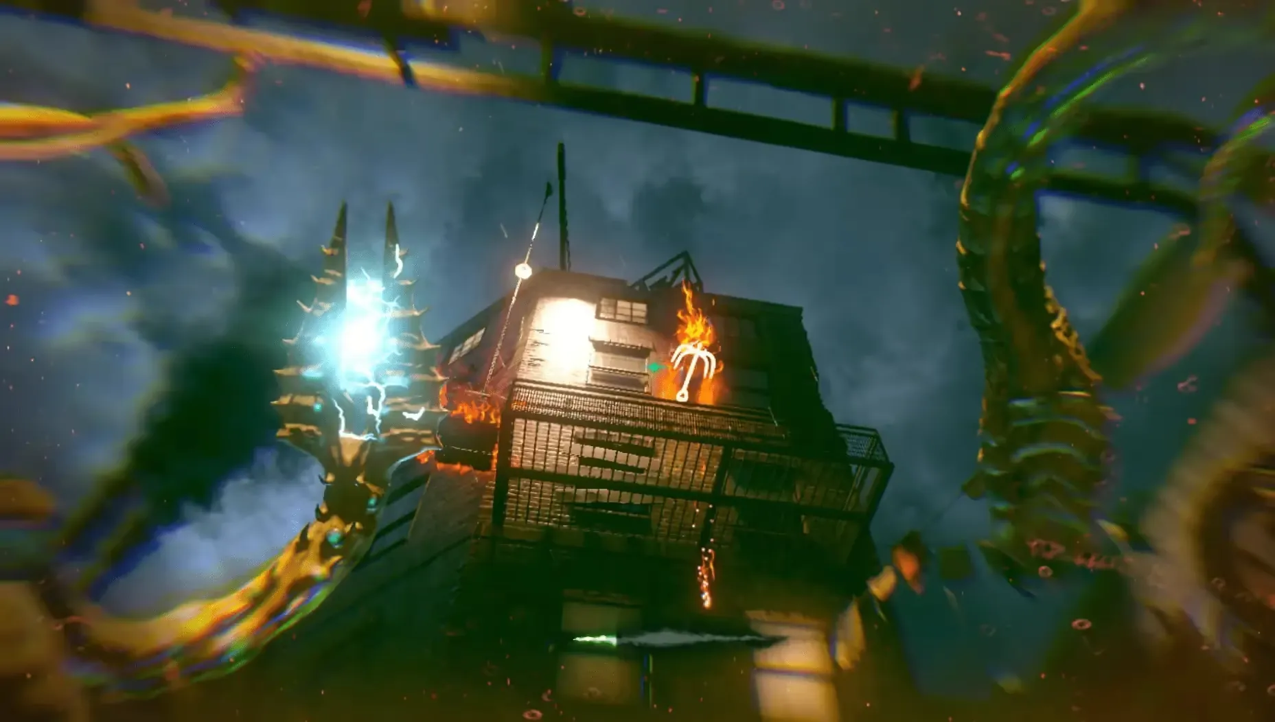 Next, open the door leading to The Black Lace and enter beast mode. Look towards the top of The Black Lace to find a hook you can grapple toward, once up turn around to find a powerbox on the wall that you can shock opening the ritual site.