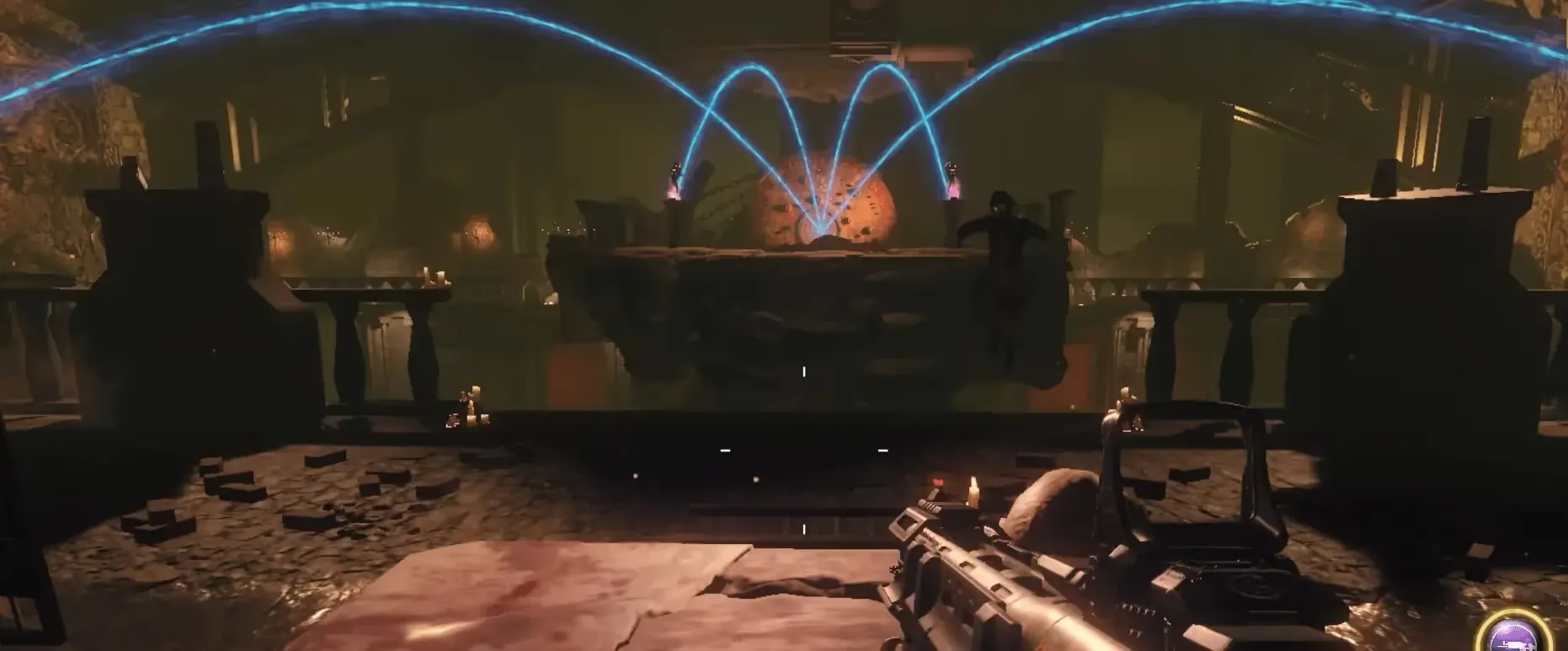 All players must head to the Pack-a-Punch room and interact with one of the Keepers which will hand over your Reborn Keeper Sword for use in capturing the Shadowman. Once all Keepers have been interacted with, they will lower the Shadowman's shield by shooting four red beams at the Shadowman.