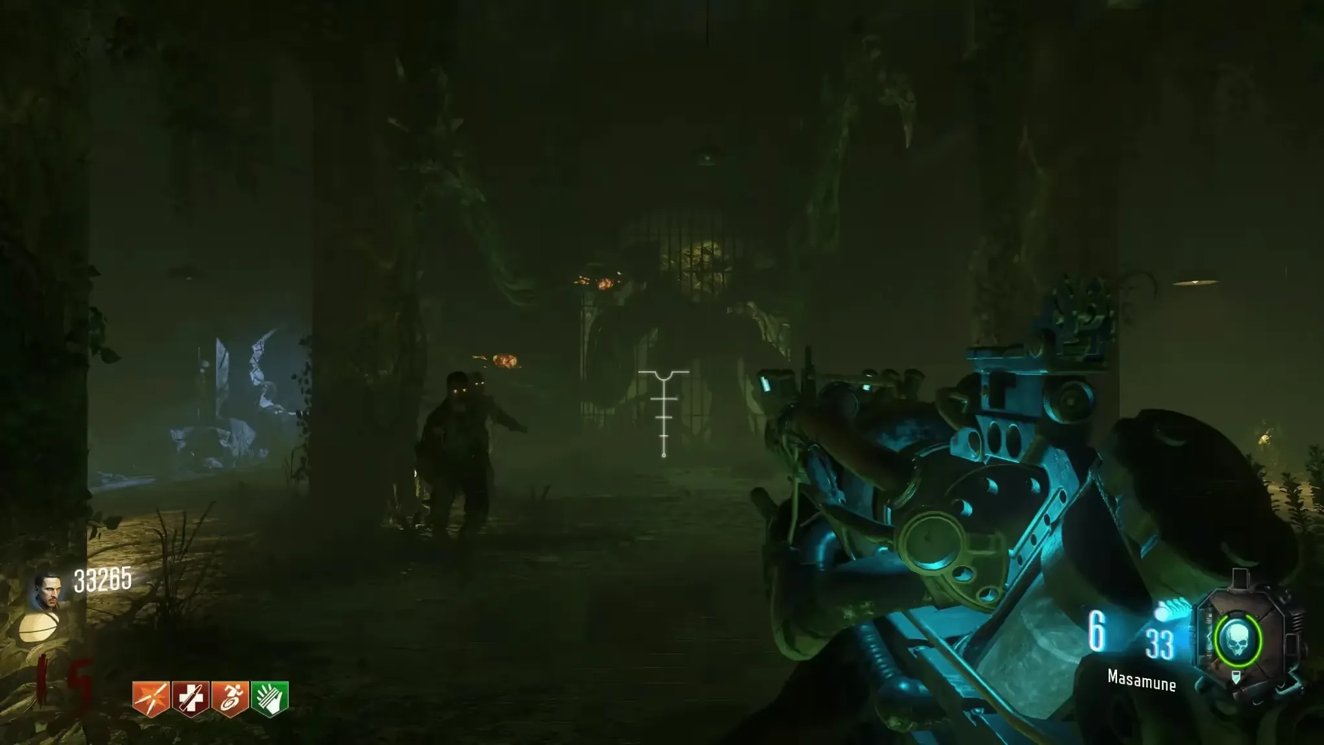 All players must enter the elevator when ready to enter the boss fight. Interact with the elevator, lowering you below the Bunker where the player with the Masamune must shoot the weak points in the vines in the path to the boss room.