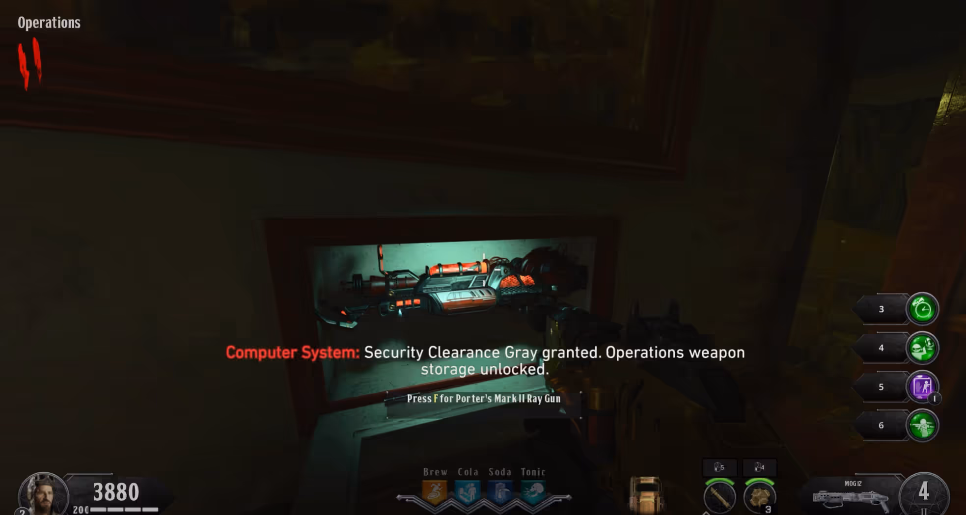 Once all five codes have been entered, head to the Prisoner Holding and Operations houses to claim your free Pack-a-Punched weapons as a reward for entering the codes, the Operations one being a Porter's MKII Ray Gun.