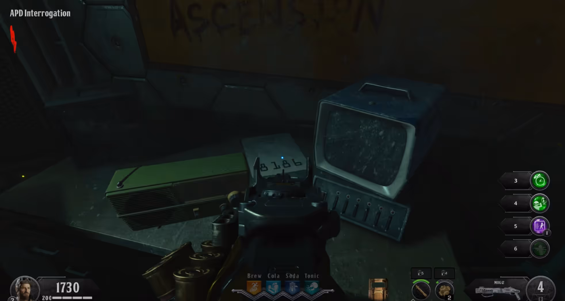 Once you have completed all three lockdowns and have obtained all three robot parts, head to the A.P.D. Interrogation room and interact with the broken A.D.A.M. Unit to repair it. Afterward, if you don't have Undead Man Walking, head to the Operations room and input the code 6662 into Rushmore, but wait until zombies start spawning to enter the code, giving you a free Undead Man Walking for five minutes.