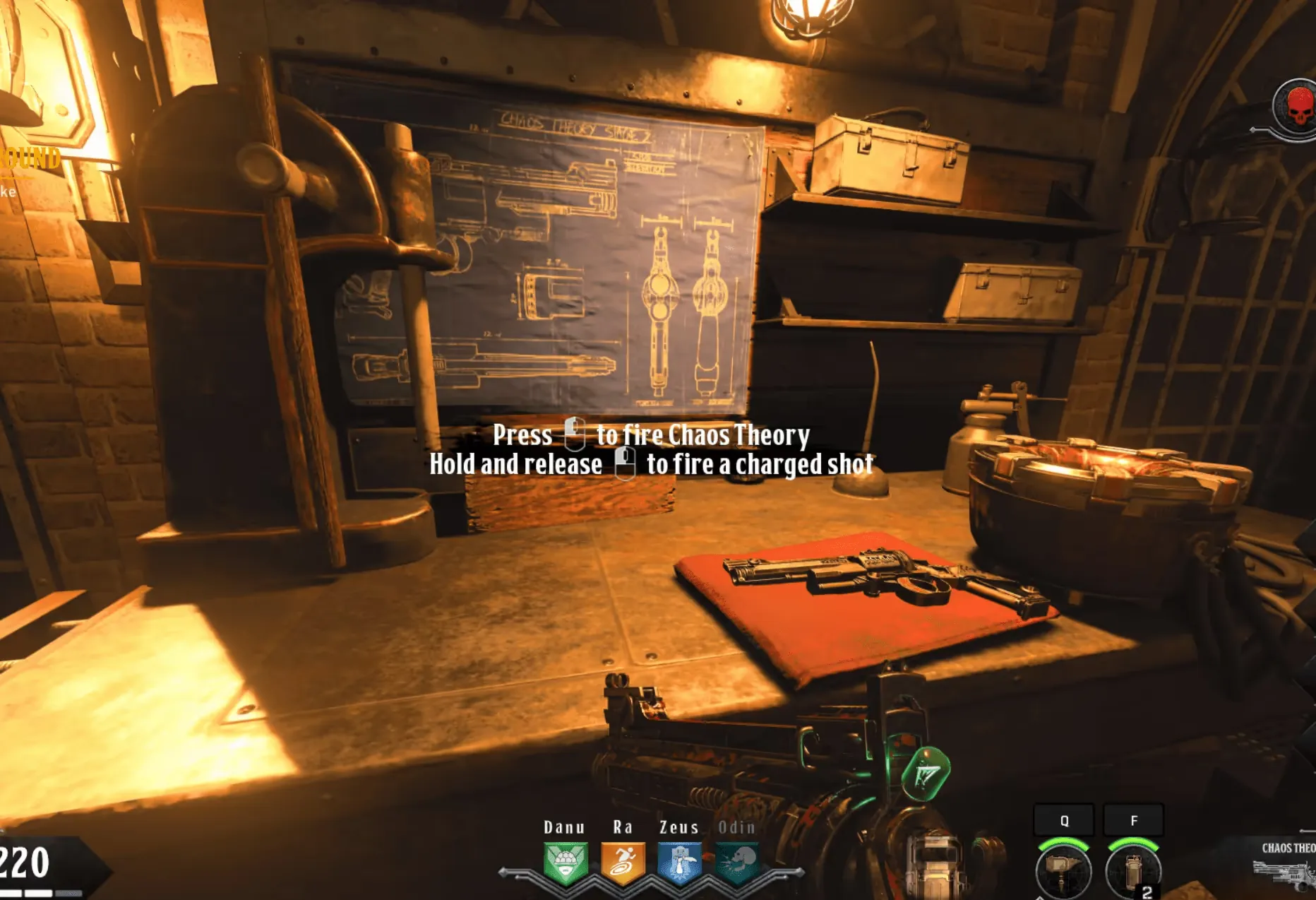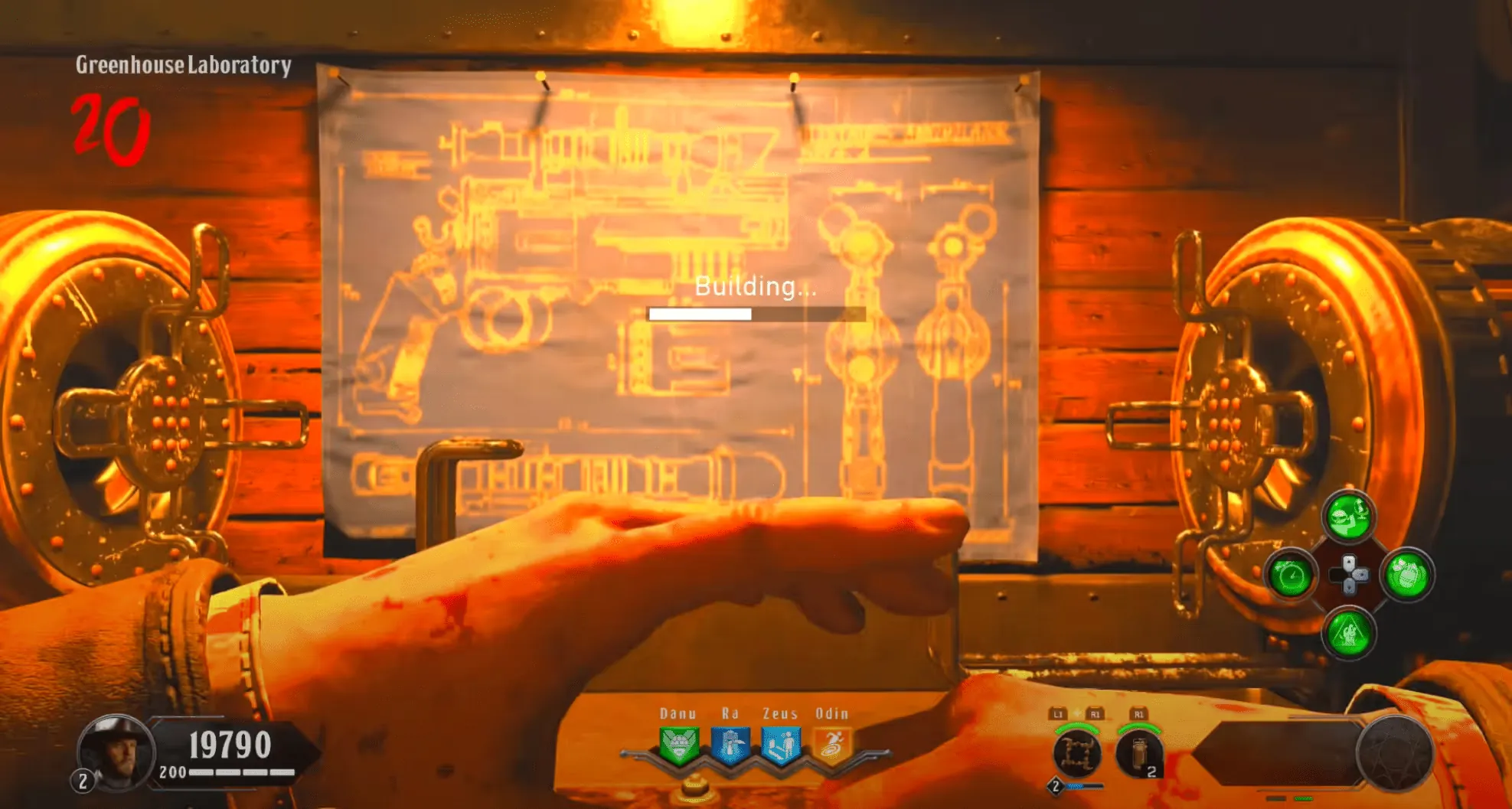 Once you have the two parts needed, head to the Workbench at the back right of the Greenhouse Laboratory to craft the Chaos Theory wonder weapon.