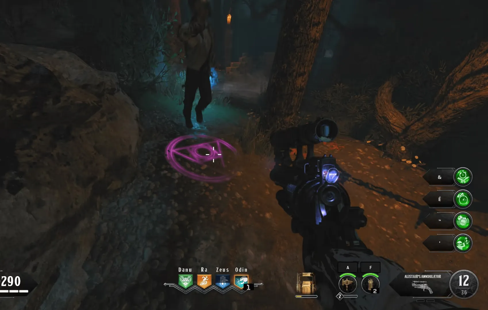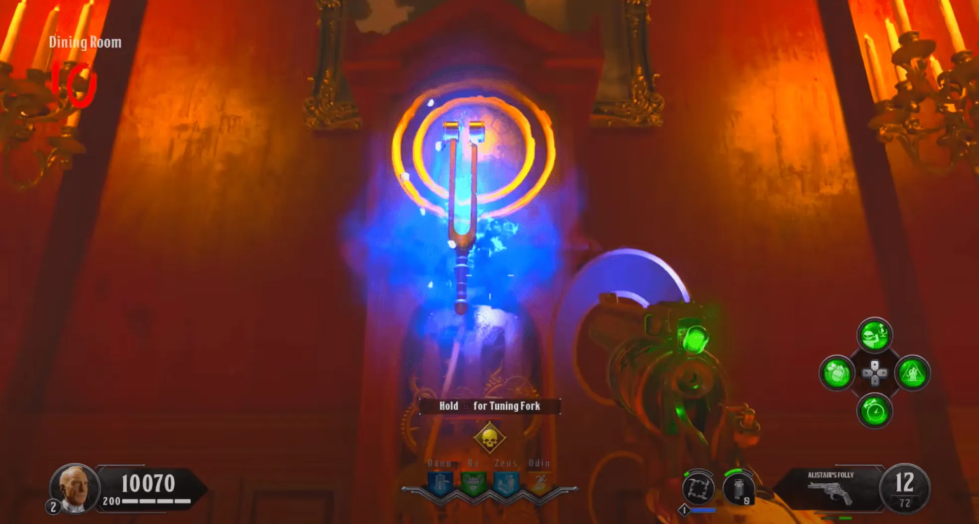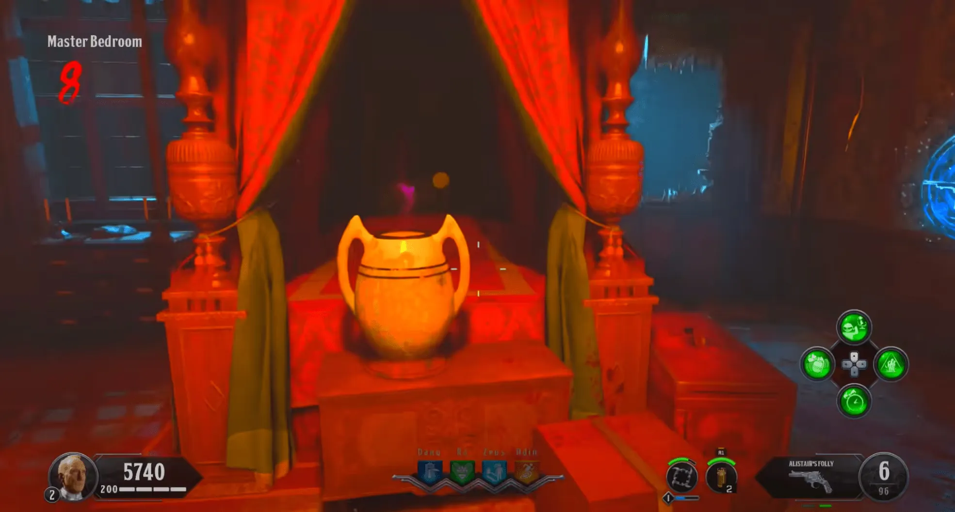 You must first obtain and upgrade the Alistair's Folley wonder weapon, which can be obtained by locating four colored symbols (red, green, yellow, blue) around the map each with four spawn locations.