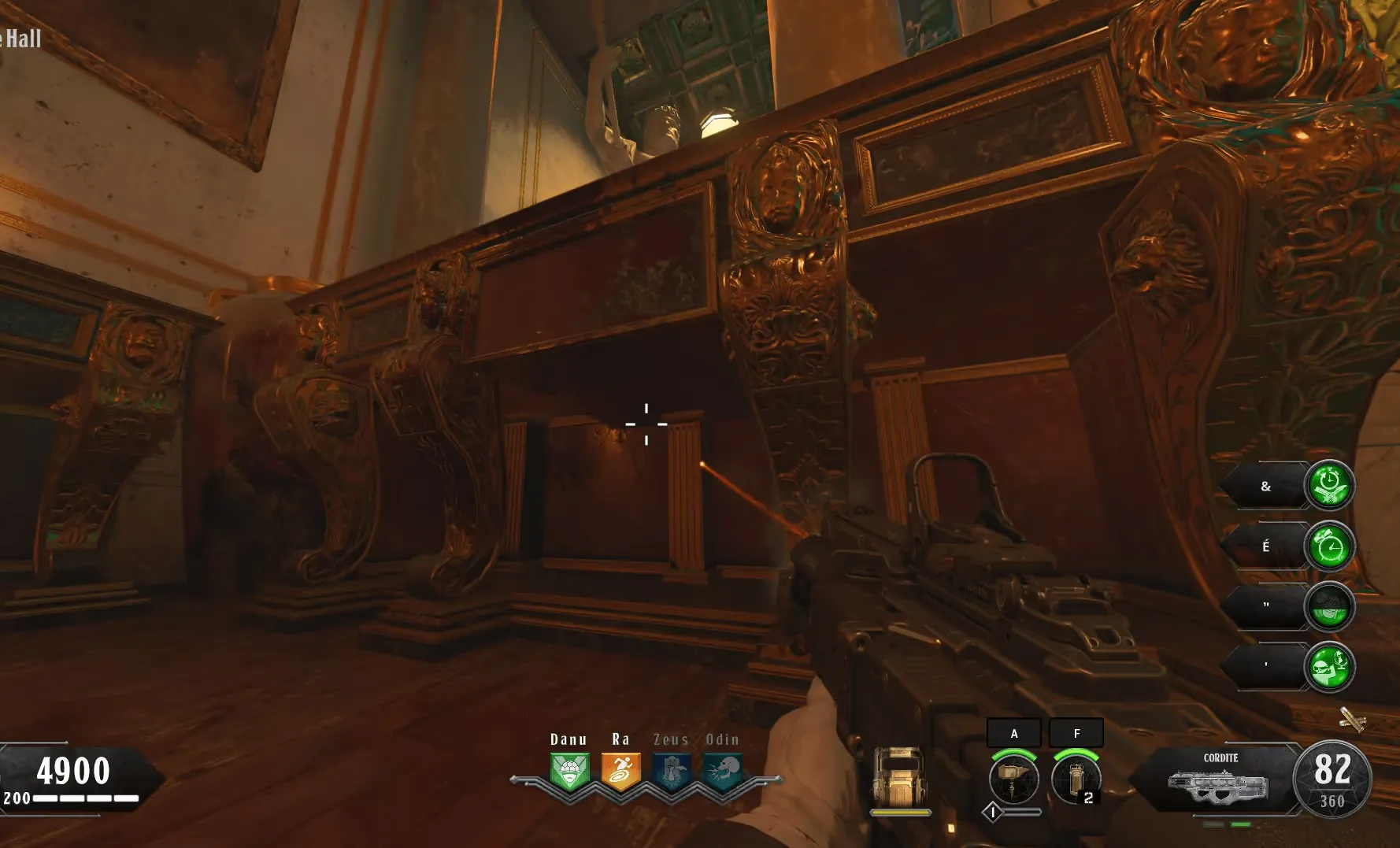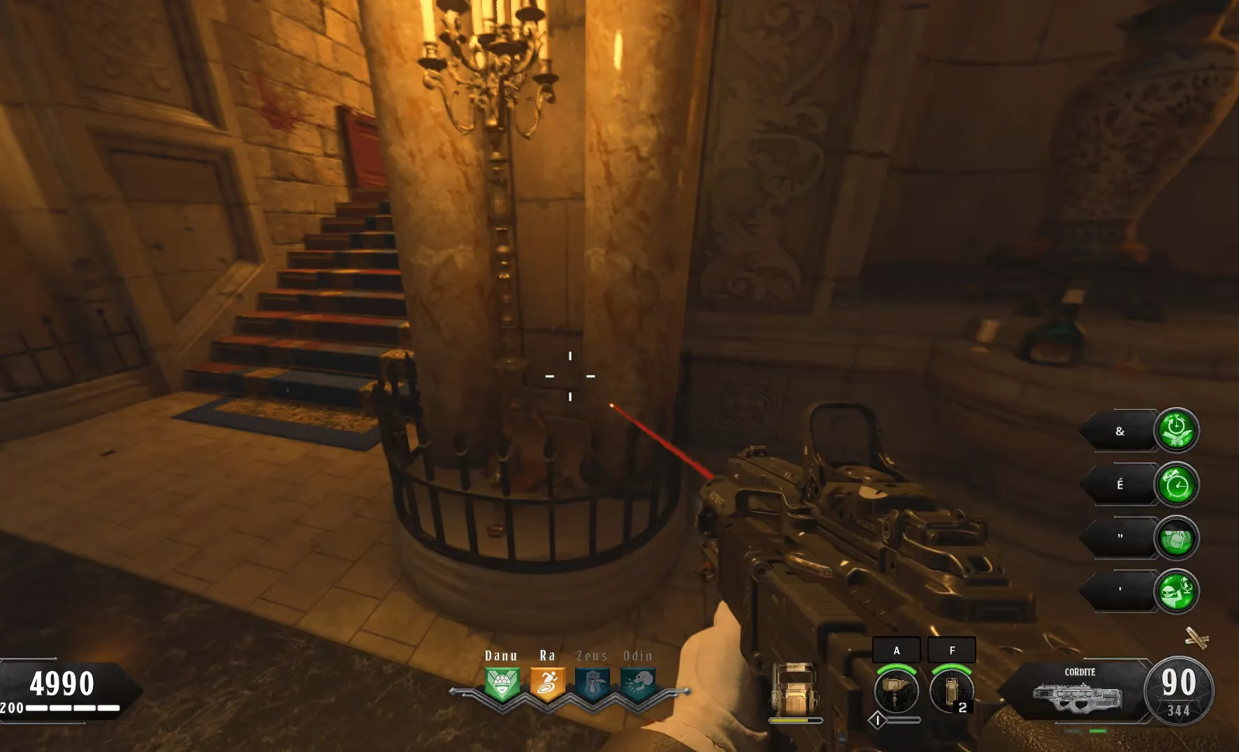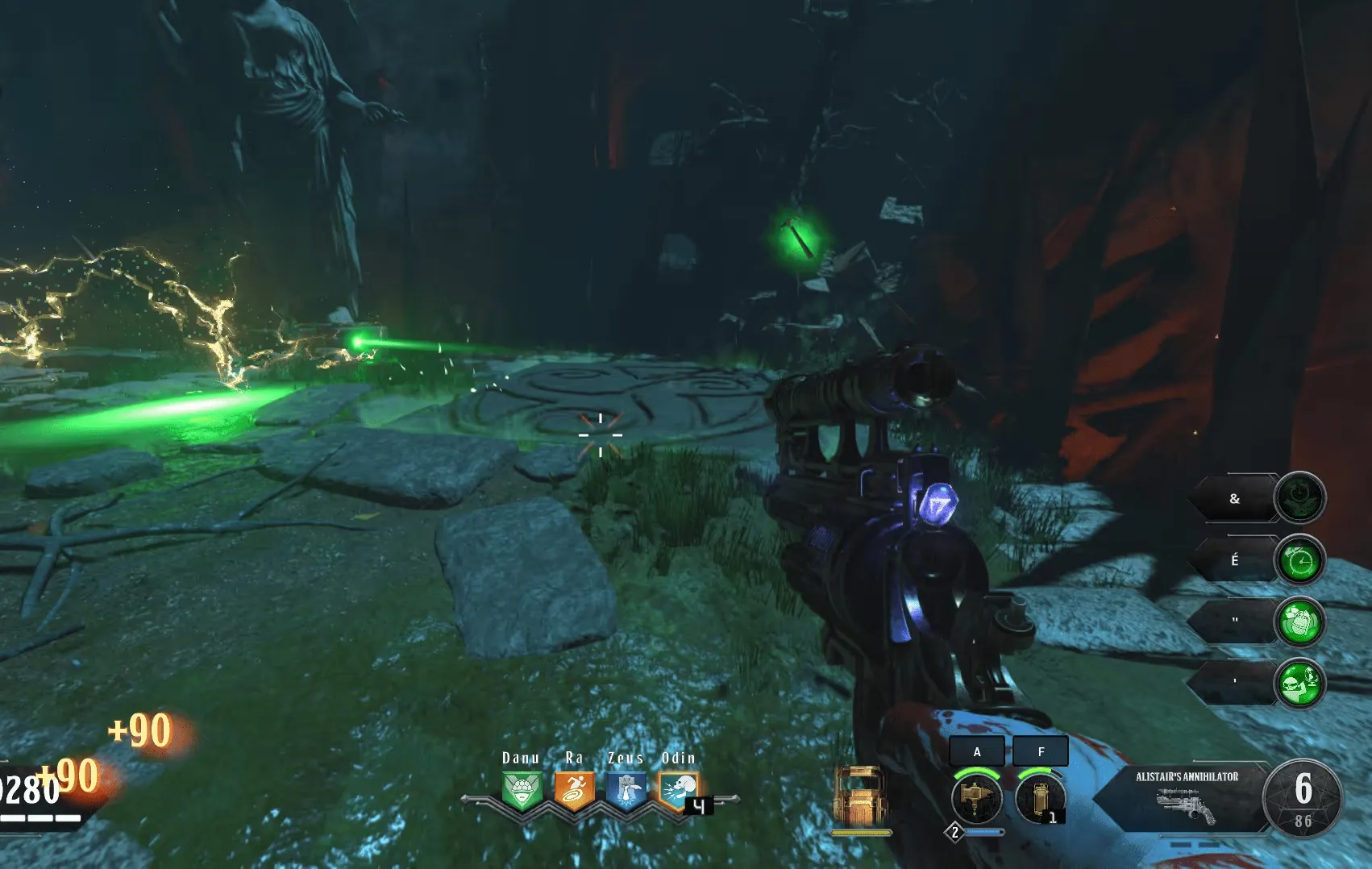 You must first obtain and upgrade the Alistair's Folley wonder weapon, which can be obtained by locating four colored symbols (red, green, yellow, blue) around the map each with four spawn locations.