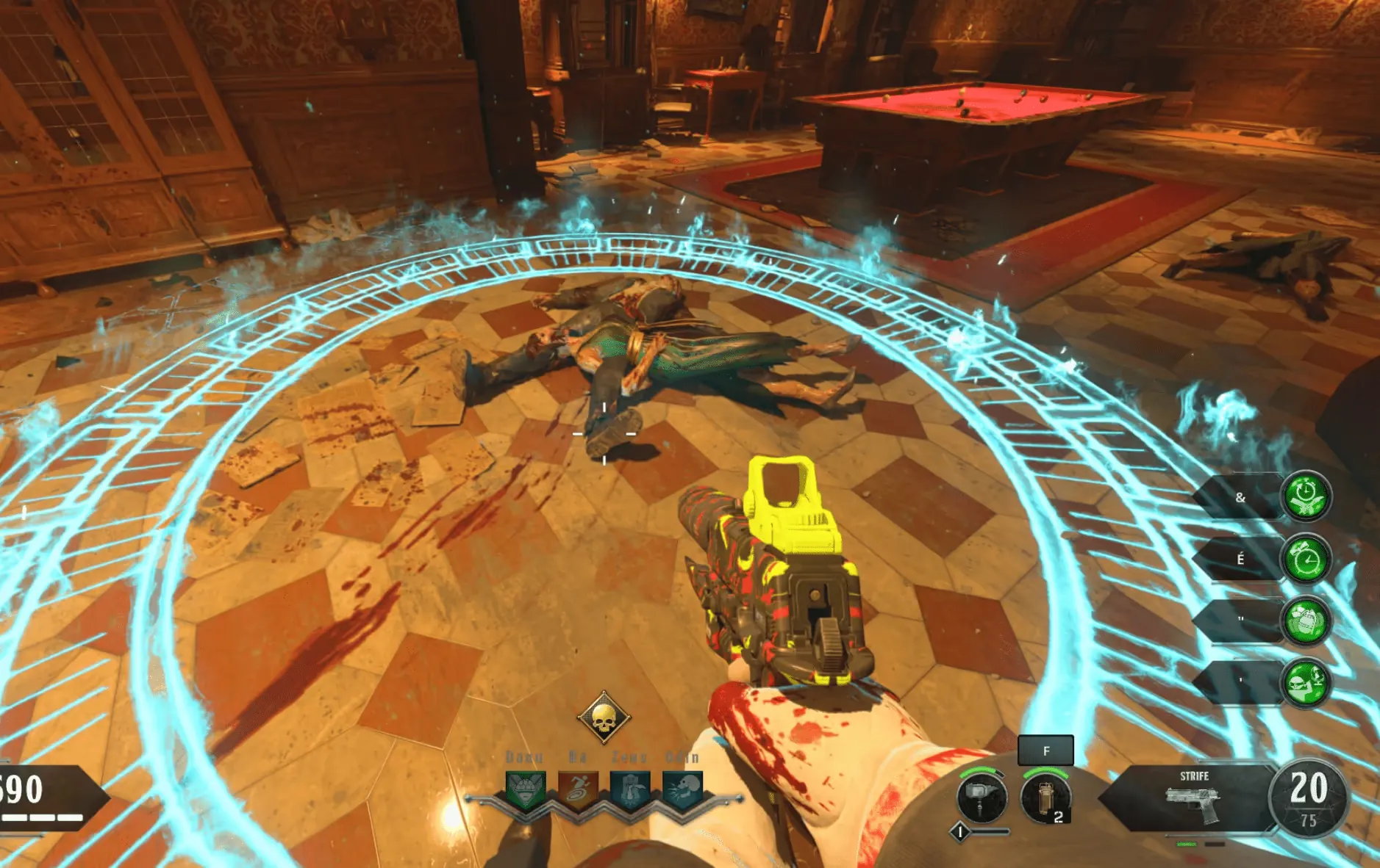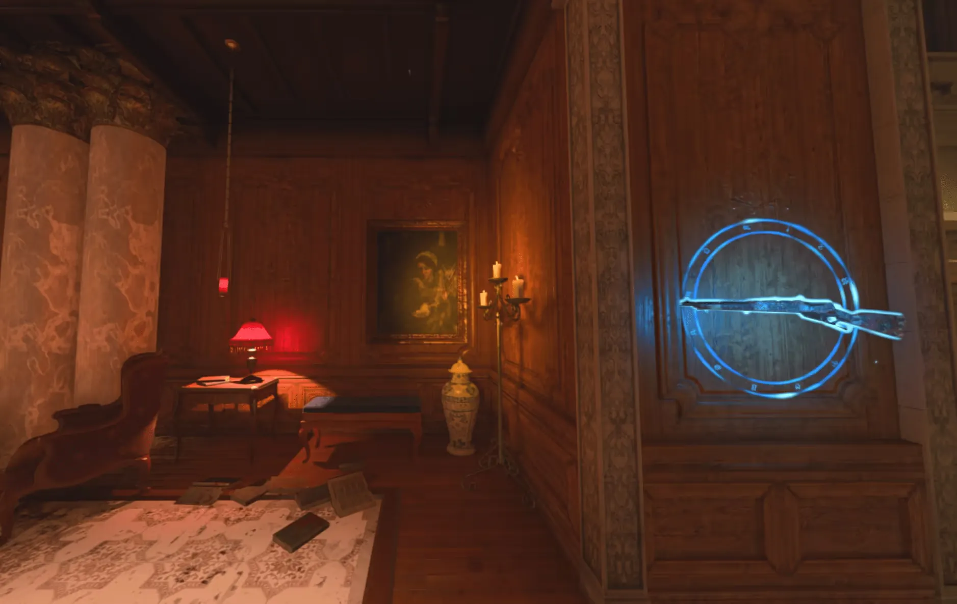 Once you know all four symbols, head to the Library where you must enter the correct symbols in the safe on the wall containing the Alistair's Folley. Once entered, you can interact with the top of the safe to enter the code and claim your wonder weapon.