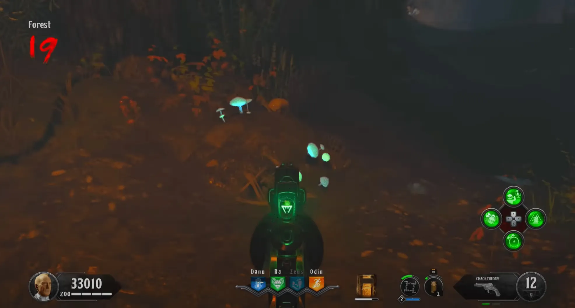 Finally, head to the Forest where you will need to shoot zombies with the charged shot of the Chaos Theory while they are over one of the three mushroom dig sites. If the charged shot was the yellow/brain rot variant then the zombie will begin to dig on the dig site and you have a chance to receive the final part.