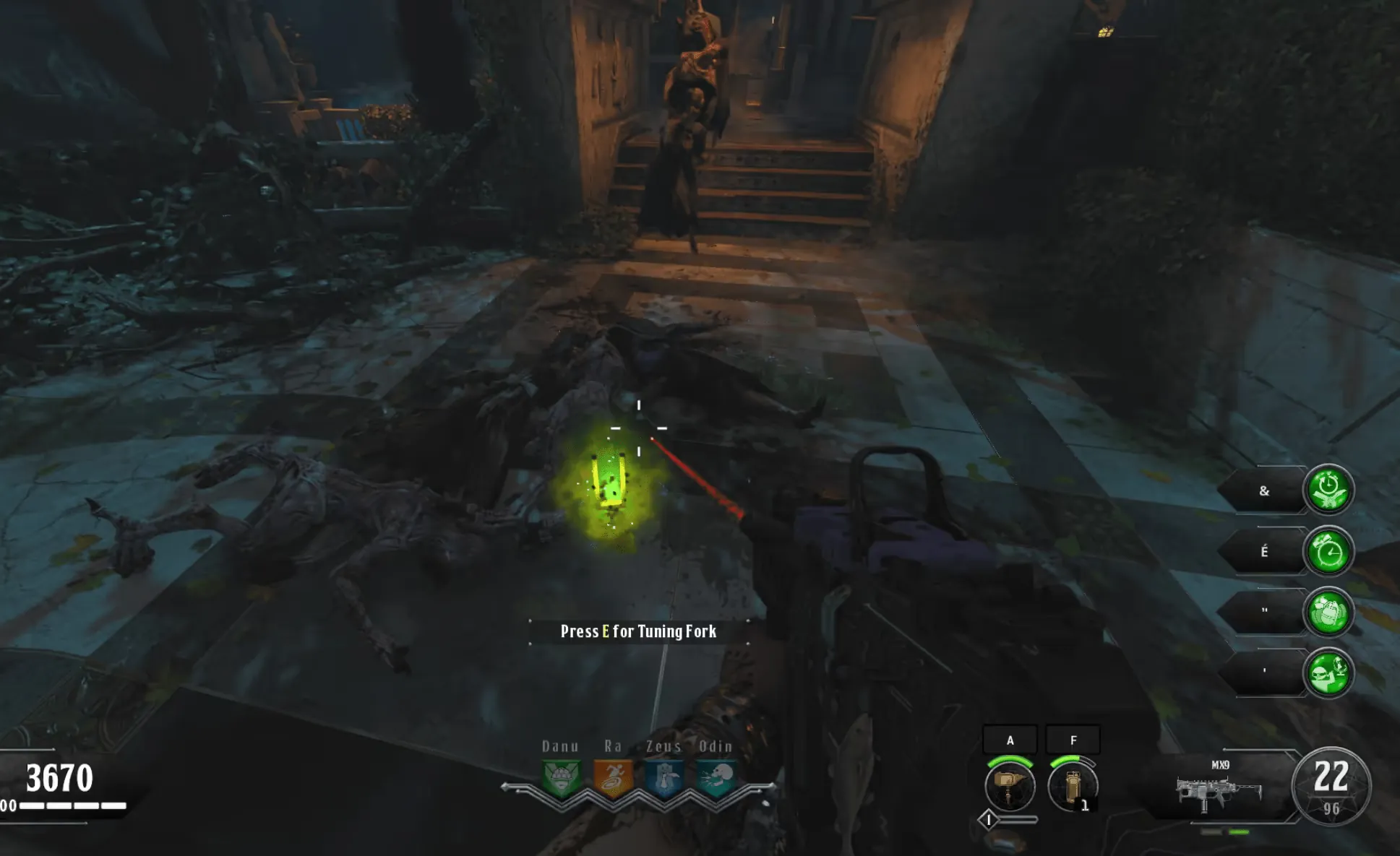 You must obtain three Tuning Forks by completing three challenges, each of which rewards you with a Tuning Fork to dispel the Prima Materia blocking the entrance into the forest where Pack-a-Punch is located. To begin these challenges, you must find three glowing crystals, each hidden inside a vase in a location on the map. The three locations for these crystals are: