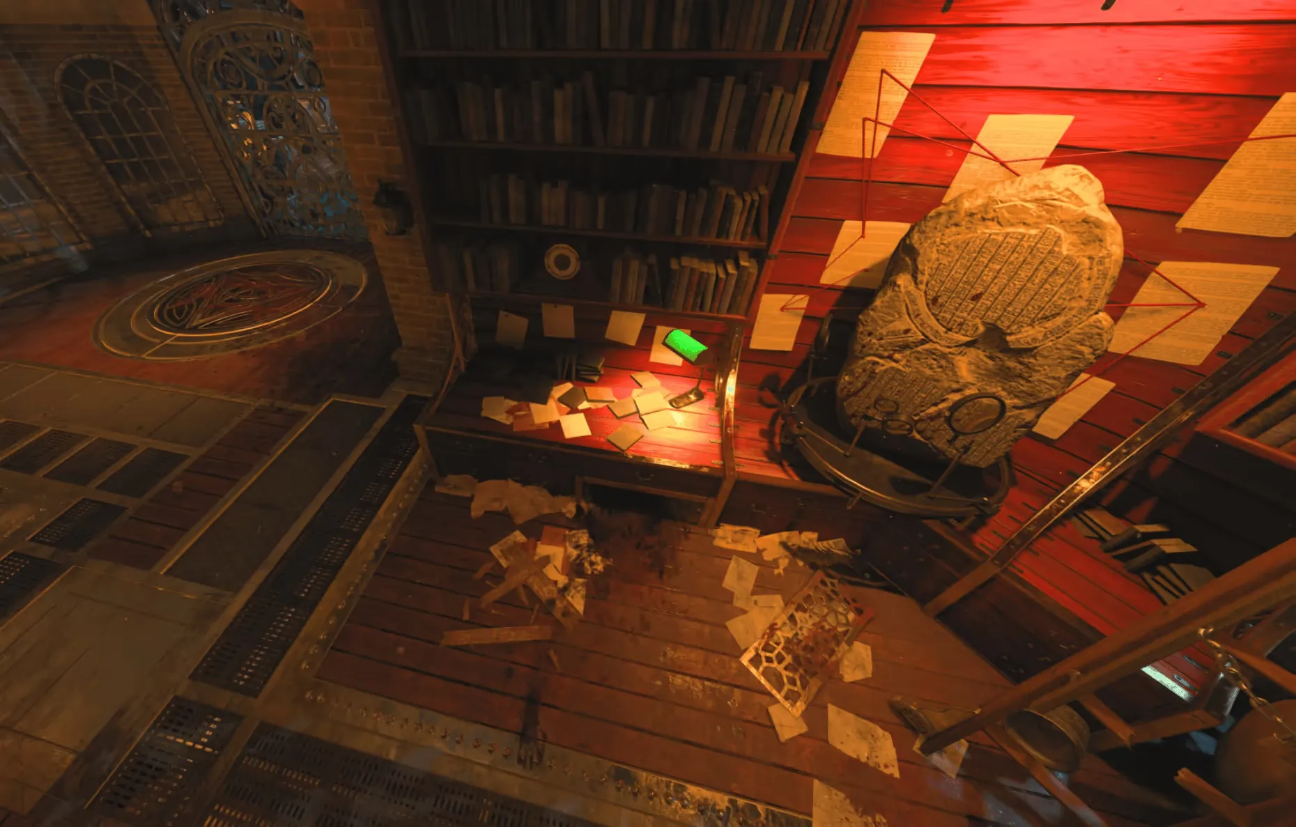 Head to the Library and use your Ballistic Shield to shield bash the bookshelf to the right of the Workbench to reveal the part needed for the upgrade.