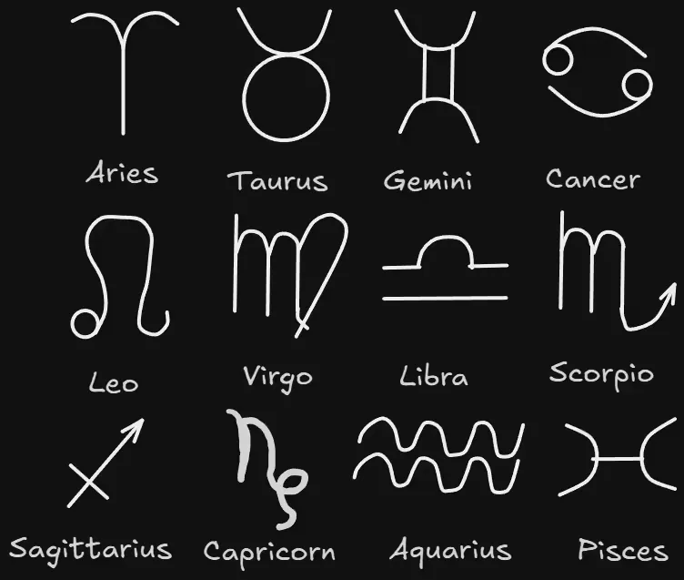 Once completed, you must find three Zodiac Symbols around the map and find scratch mark patterns within the same room. There can be up to three scratch mark patterns and you must count the lines on each pattern and assign the sum of all marks to the Zodiac Symbol within the same room. Below is an image of all Zodiac Symbols for easy reference: