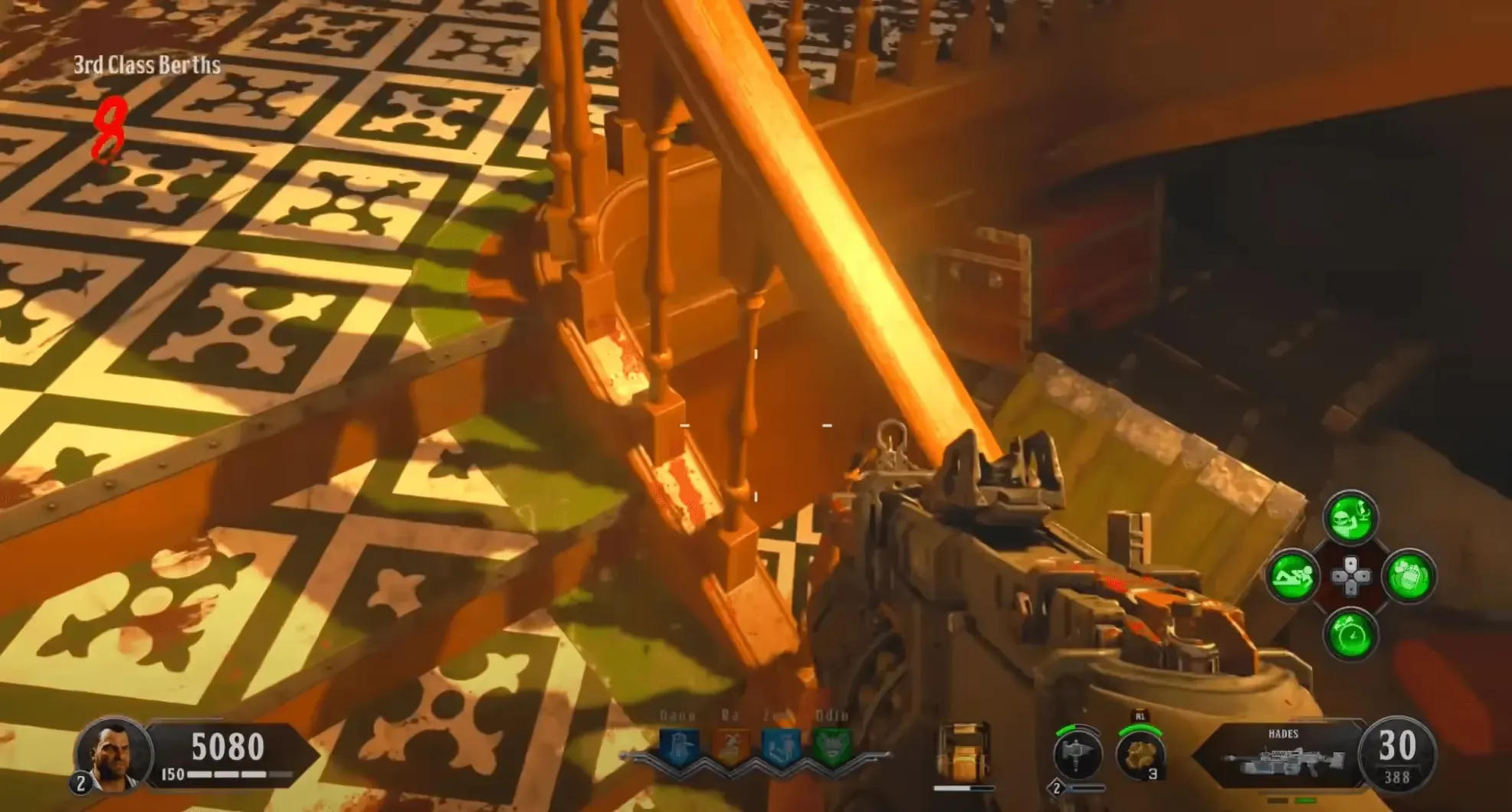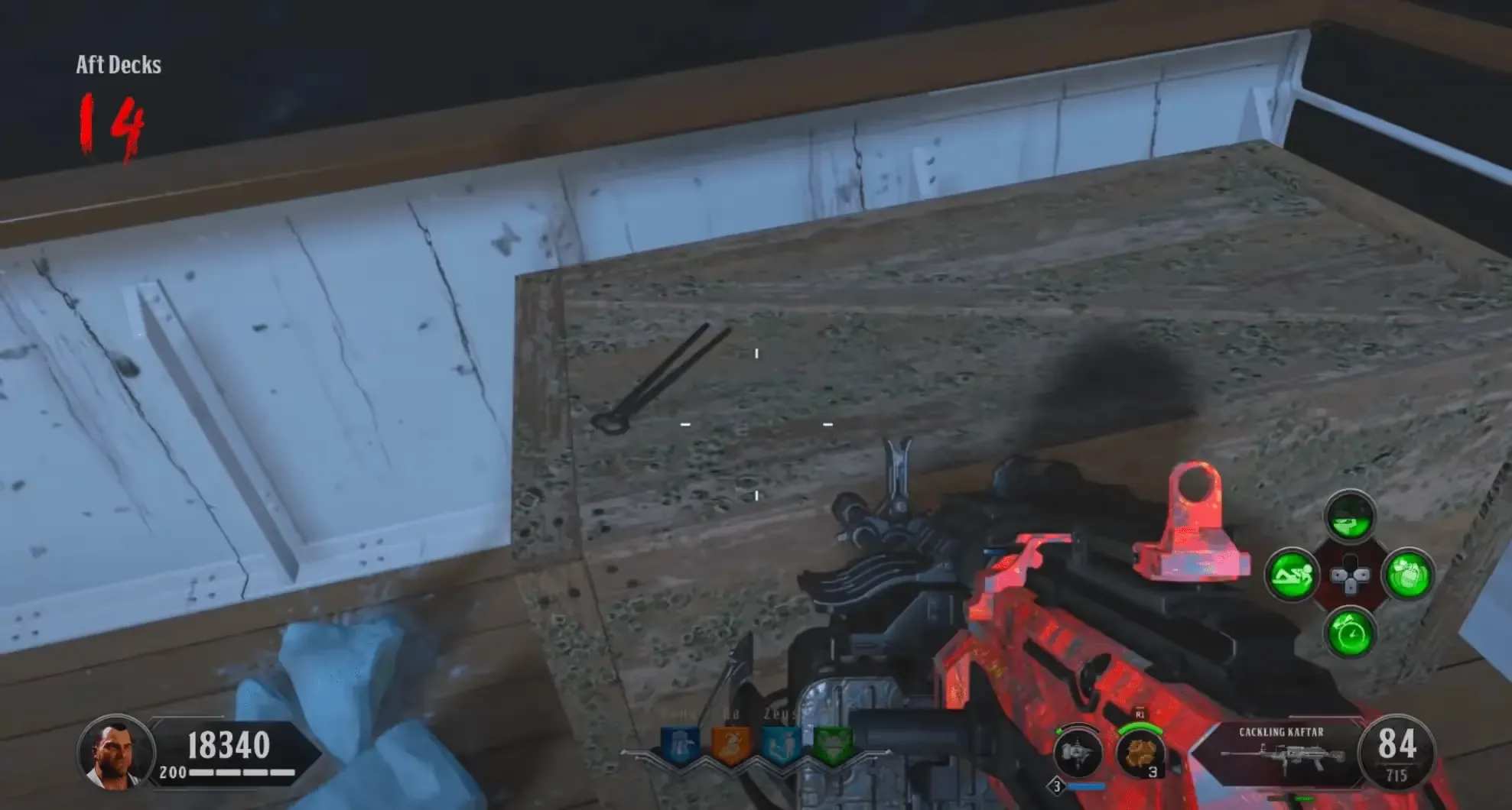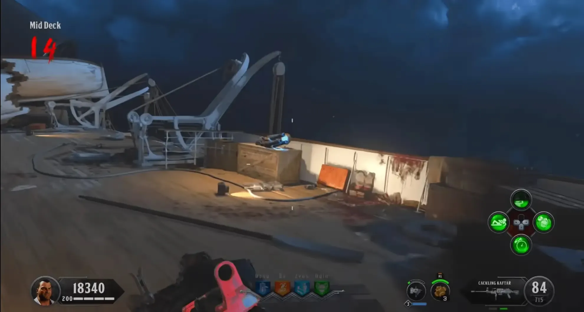 After the ice block in the Promenade Port Deck, you will receive a Max Ammo. There is a shortcut here that you can use to complete this step faster, head to the Aft Decks Mystery Box location, and instead of destroying the ice blocks leading down the stairs, aim your Hellion Salvo at the ice block at the very back of the Poop Deck. Destroying this ice block early will complete this step earlier, saving time, and ammo, and avoiding a Blightfather.