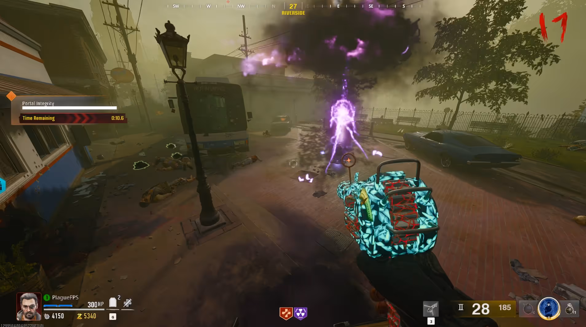Once dropped, head to Riverside and place the L.T.G. in the holder underneath the Aether Cloud. This will start initializing a stable portal which you must defend from continuously spawning zombies by killing them before they are able to run into the device.