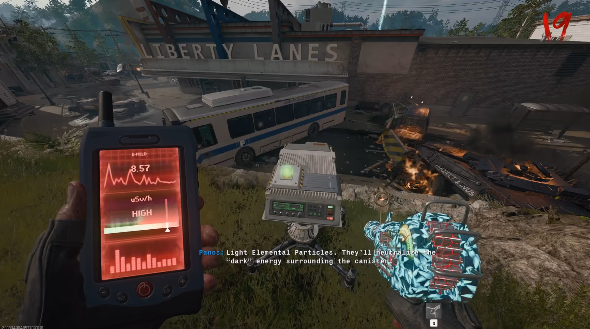 Head to the Dark Aether and interact with the Aether Canister sticking out of the S.D.G. You must drop this Aether Canister within one of the Dark Aether Field Generator trap areas of effect in between the Pump & Pay and Motor Lodge.