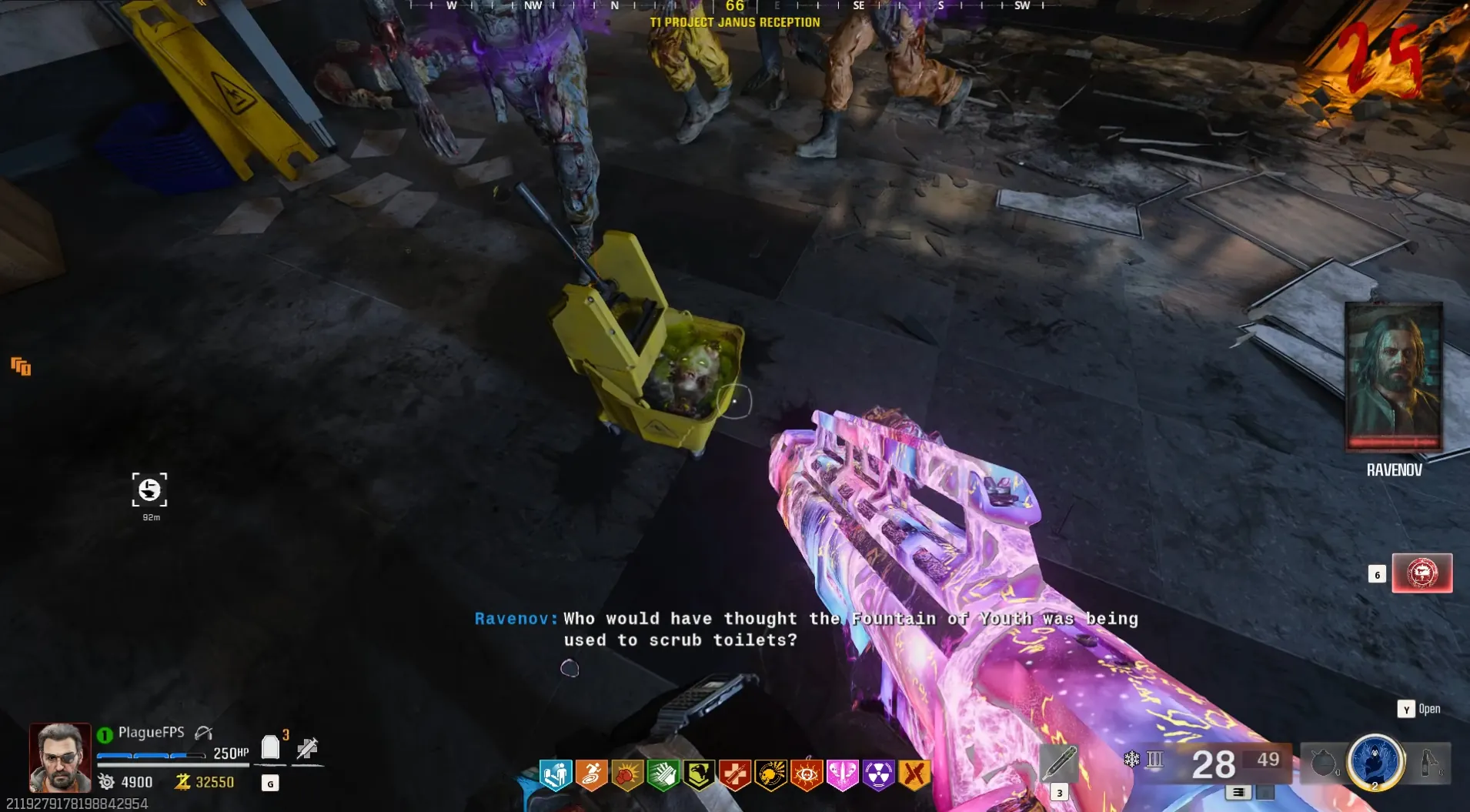 Once you have the Fungal Head, head to T1 Project Janus Reception or T2 Android Assembly, where you'll find a mop bucket that you can melee to move underneath the sprinkler system on the ceiling. You'll then need to throw an explosive (e.g., Molotovs) at a nearby smoke detector to trigger the sprinklers to fill the bucket.