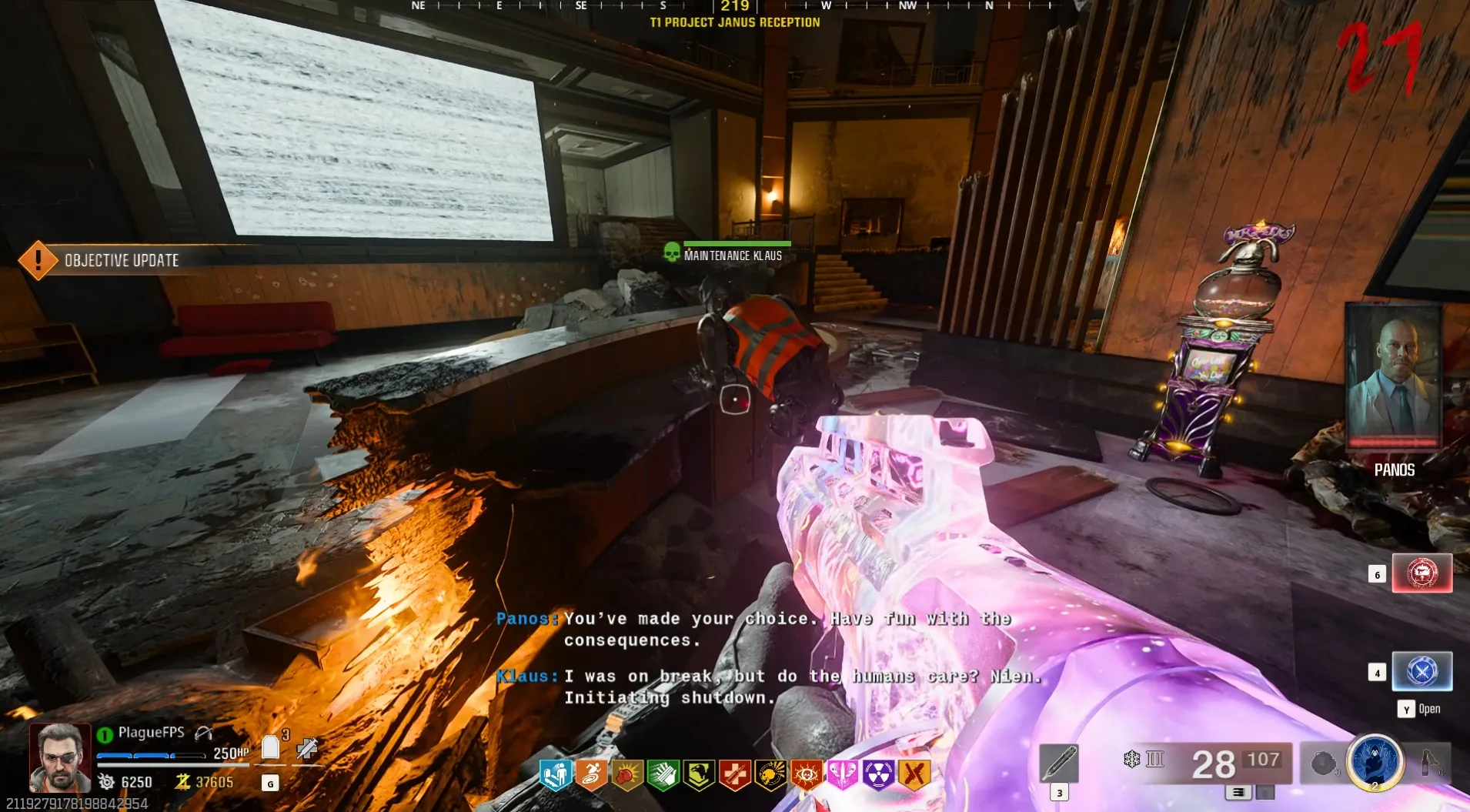Head to the T1 Executive Office and interact with the door to talk with Blanchard, then head to the T1 Project Janus Reception and interact with the red button, turning the room red and starting a lockdown where you must defend the Maintenance Klaus robot, while they shut down one of the elevators.