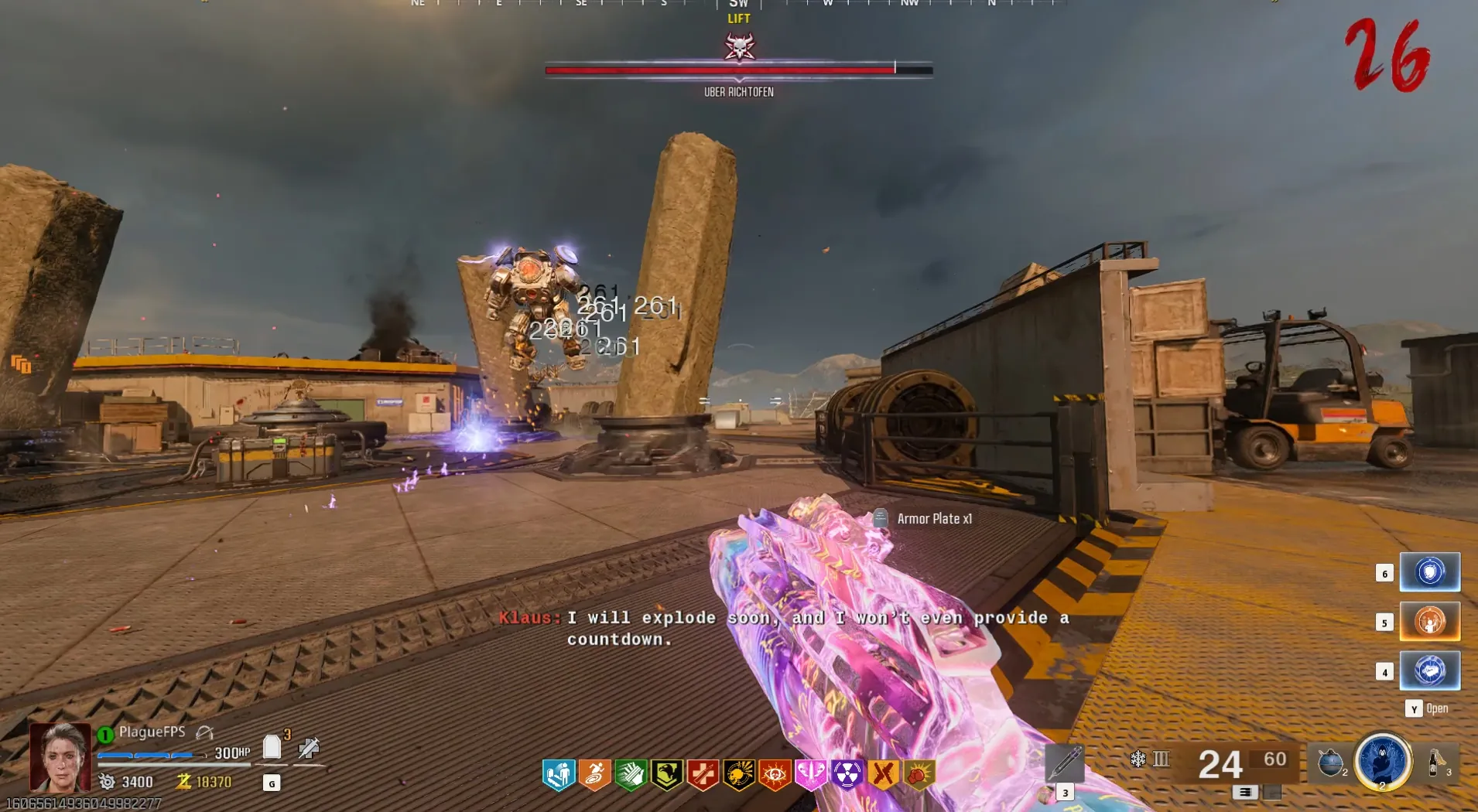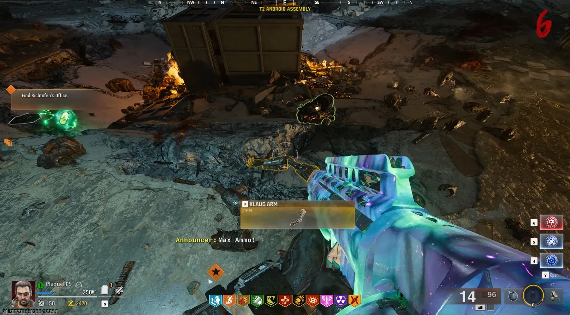 Once enough damage has been dealt to Richtofen, he will fly away and spawn in a bunch of zombies, Kommando Klaus, Uber Klaus, and Uber Klaus Core robots. Try to charge your field upgrade during this transition period if you do not have all charges. Also, do not get as close as I did in the image above 9/10 times you will get two-shotted.