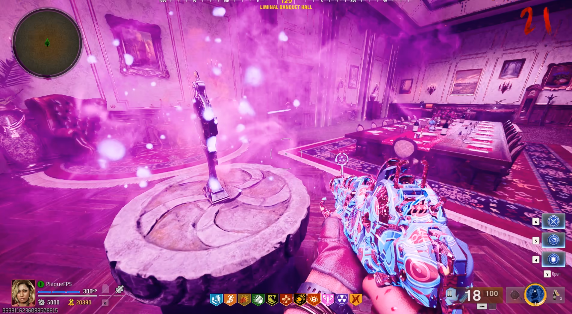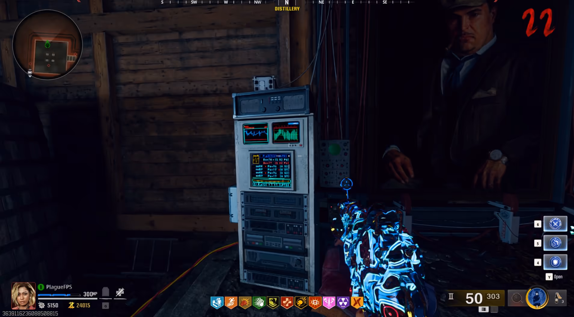 This mini-game has three rounds where the Sconces will flash their lights in the order you must interact with them, the first round being one flash, the second round being two flashes, and the third round being three flashes. Once you have completed the game, the wall will open up a secret passageway to the Distillery. Interact with the computer next to the painting in that room to begin another event where you must charge the Liminal Portal by killing zombies with the Ray Gun MKII-Wraith Fire variant only. Once completed, head inside the portal to spawn in the next item.