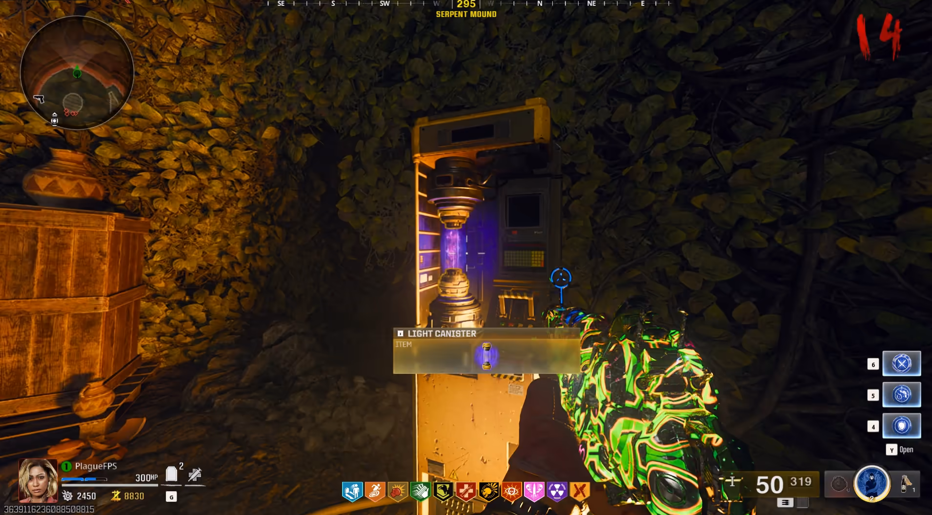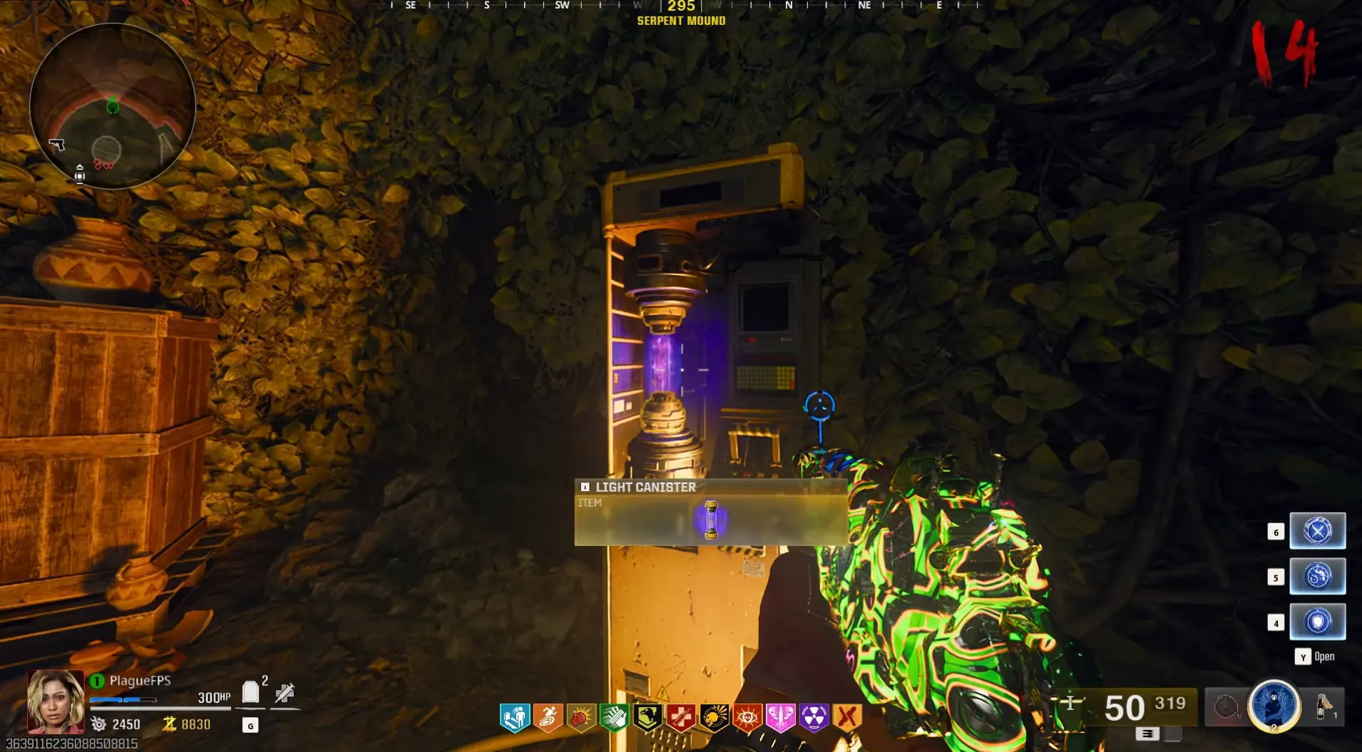 Once you have the required items, head to the Service Tunnel and interact with the broken wall left of the Tier III Armor wall buy to place the Essence Bomb, blowing open a secret passageway to the Serpent Mound. Head inside and place the canister inside the yellow machine near the back of the room to begin the upgrade.