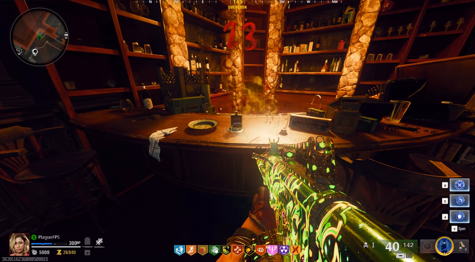 Once you have the Bell, head to the bar in the Overlook and place it down next to the "Please ring the bell for service" sign. You'll then need to obtain Loading... on your weapon and charm a zombie next to this bell and interact with the bell to ring it.