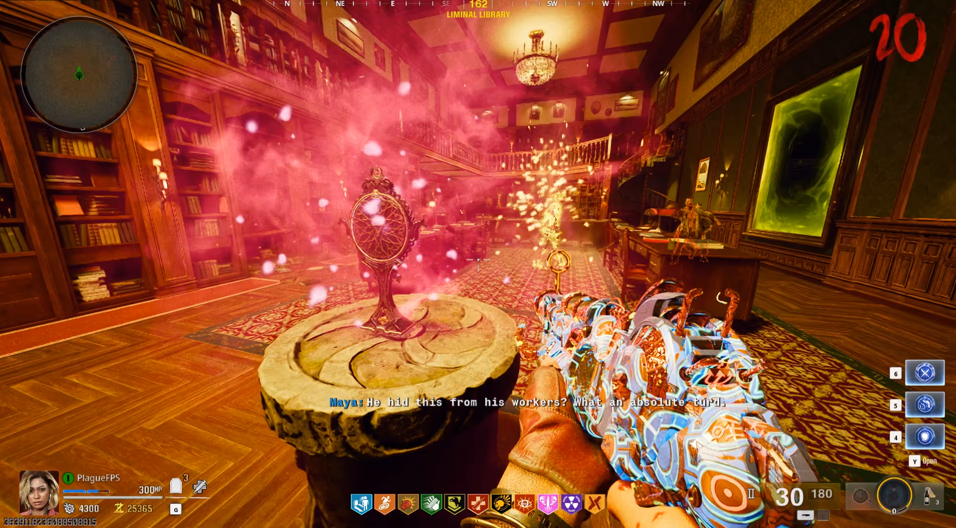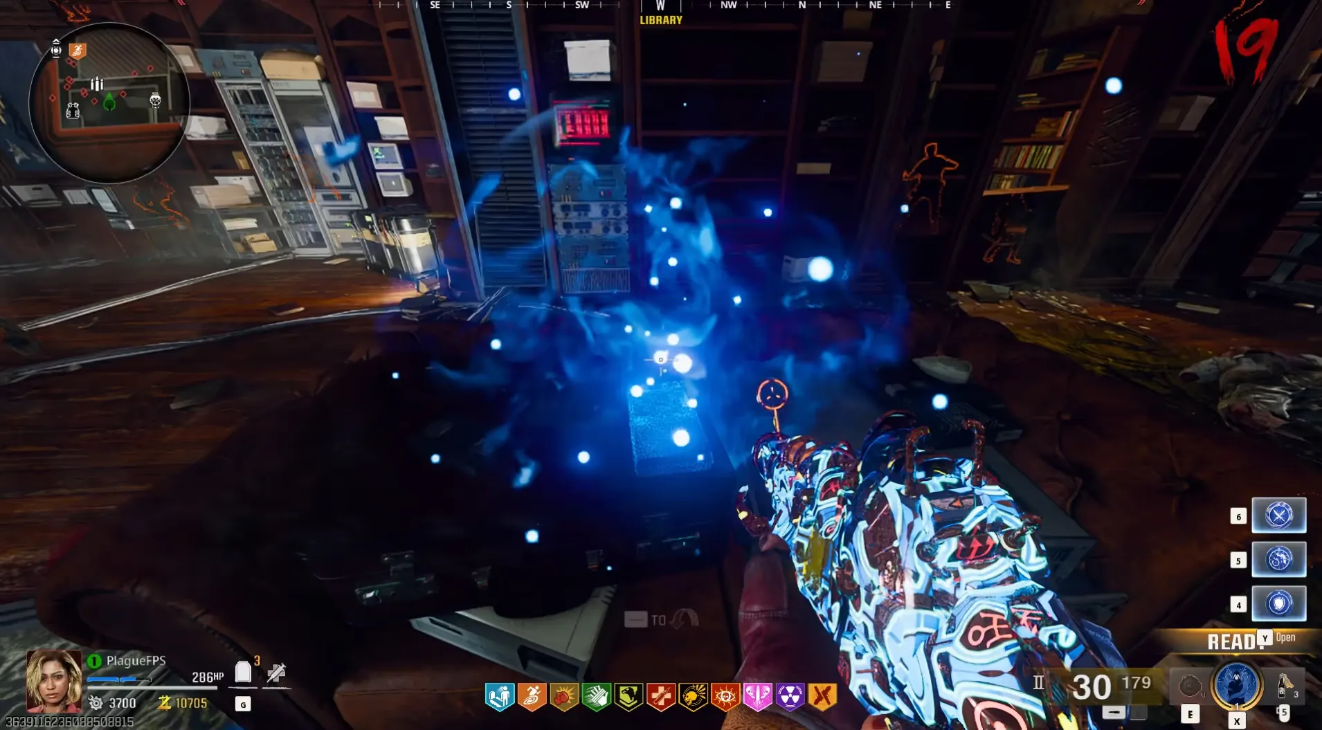 Using the Ray Gun MKII-Rot Blight variant, head to the Library and interact with the computer next to the painting to begin an event where you must kill zombies with the Ray Gun MKII-Rot Blight to charge the Liminal Portal. Once open, head inside the portal to spawn the next couple of items you will need to collect to start the ritual.